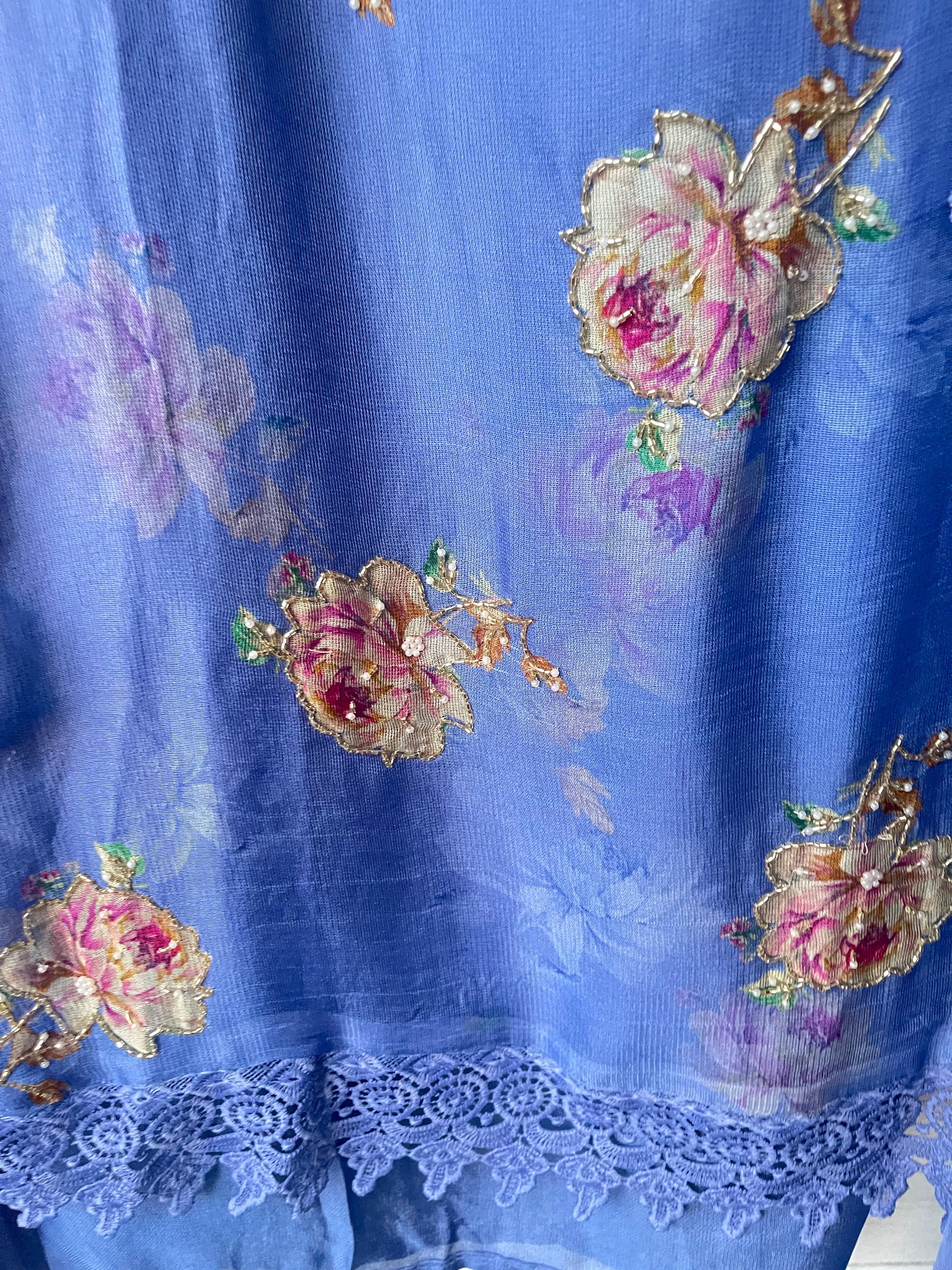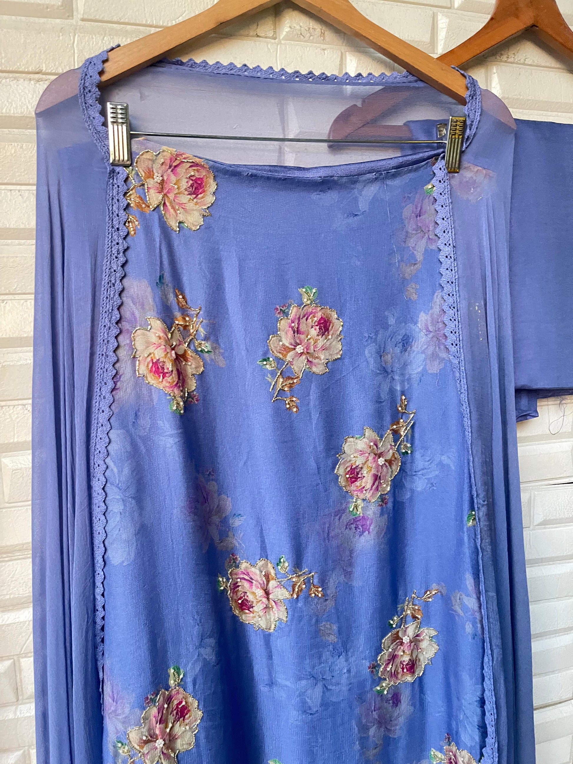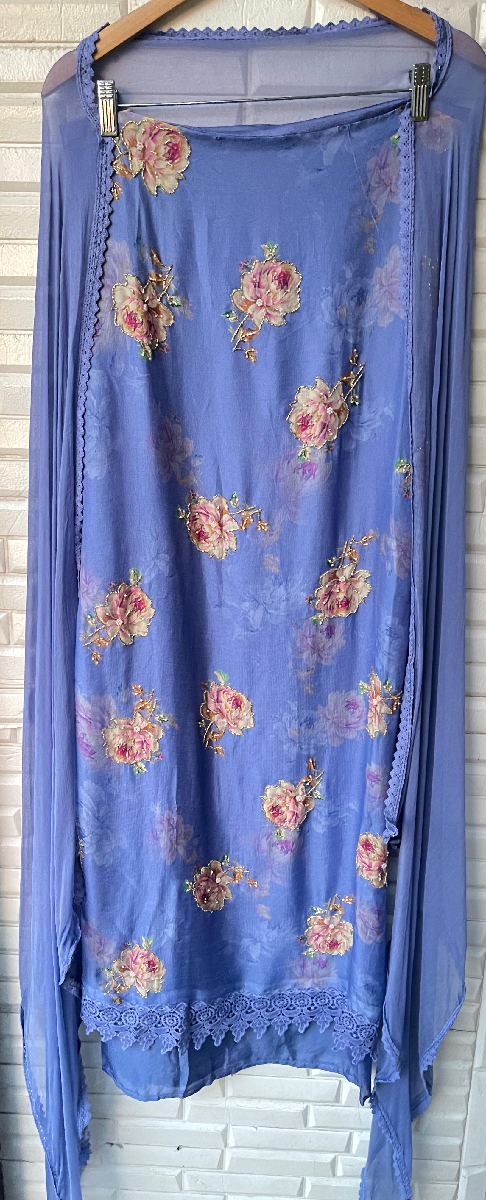 π self organza printed fabric unstitched shirt with pearl kutdanna embroidery