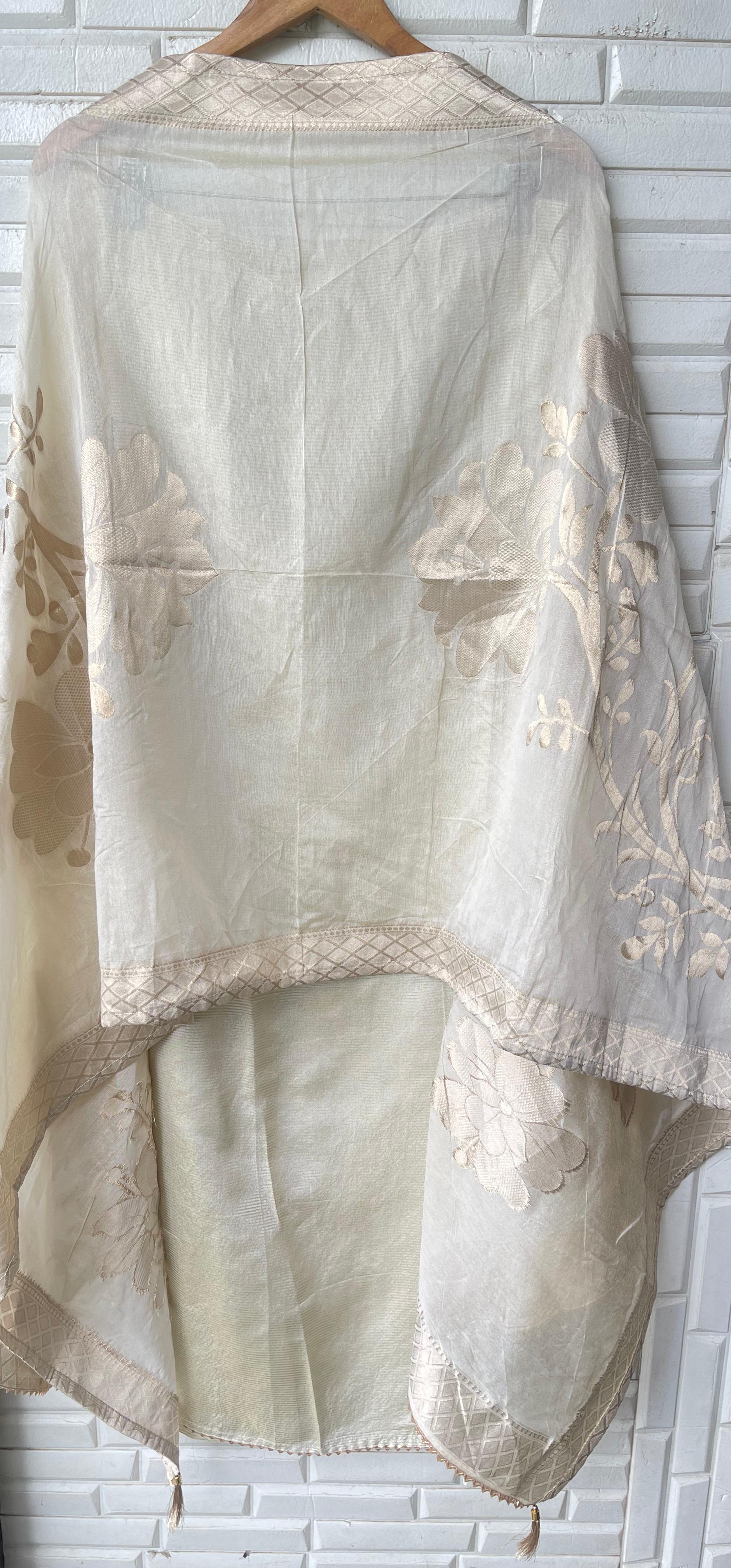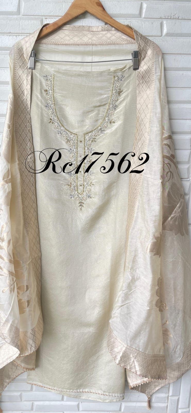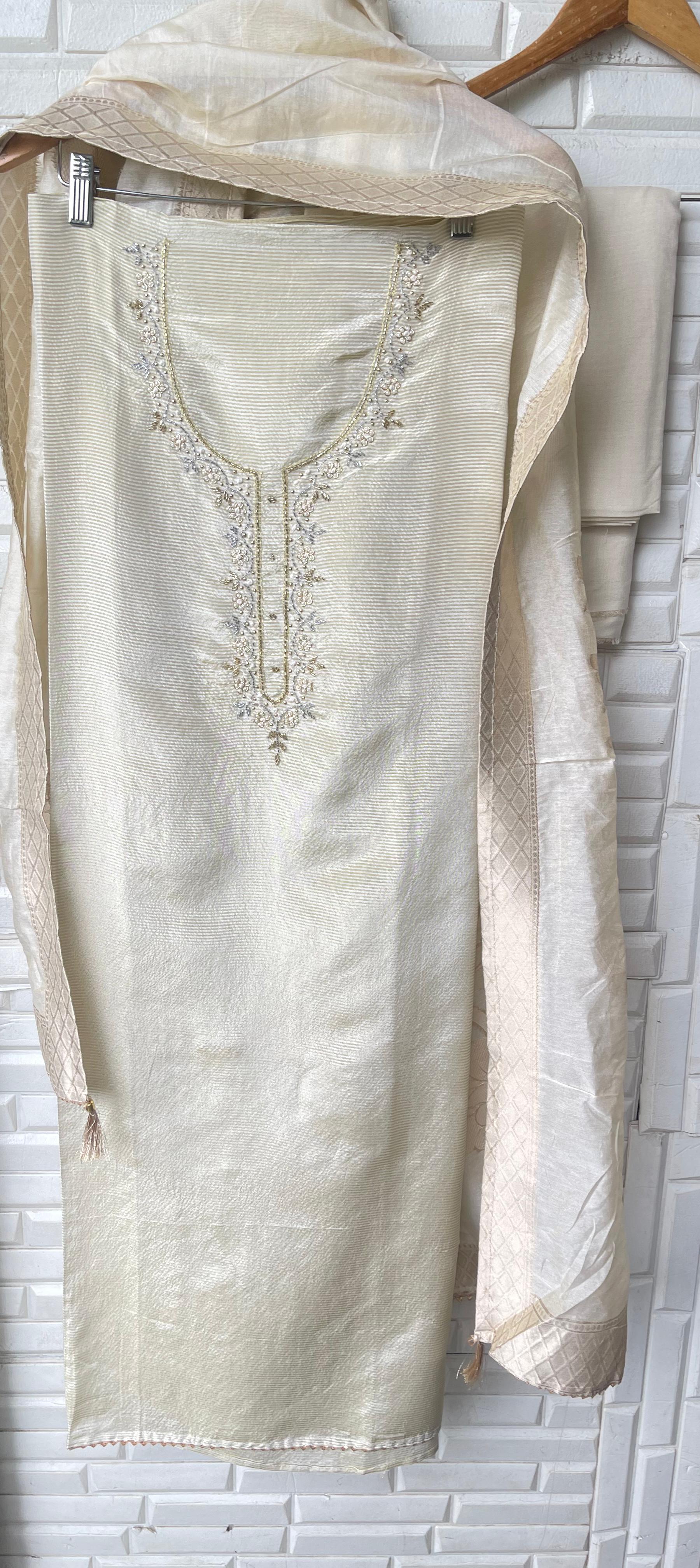 π zari weaving self shimmer silk fabric unstitched shirt with swarowski pearl zari kutdanna embroidery