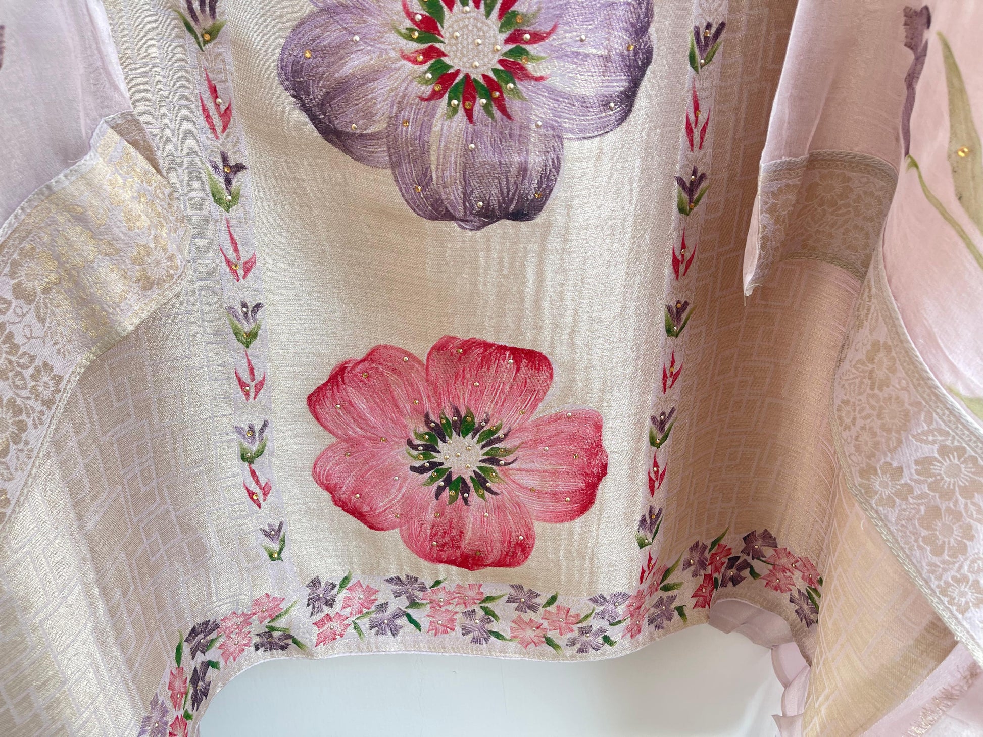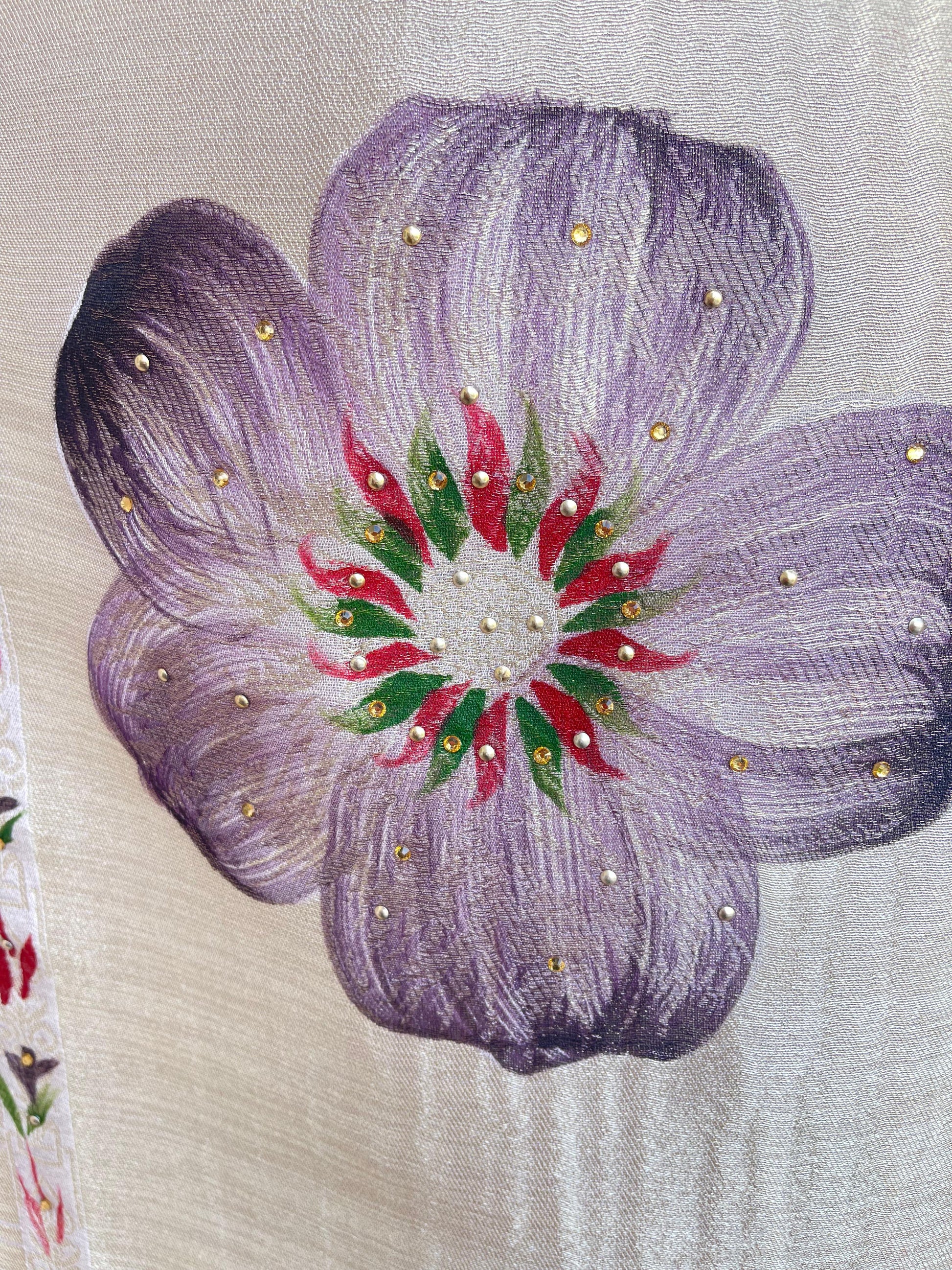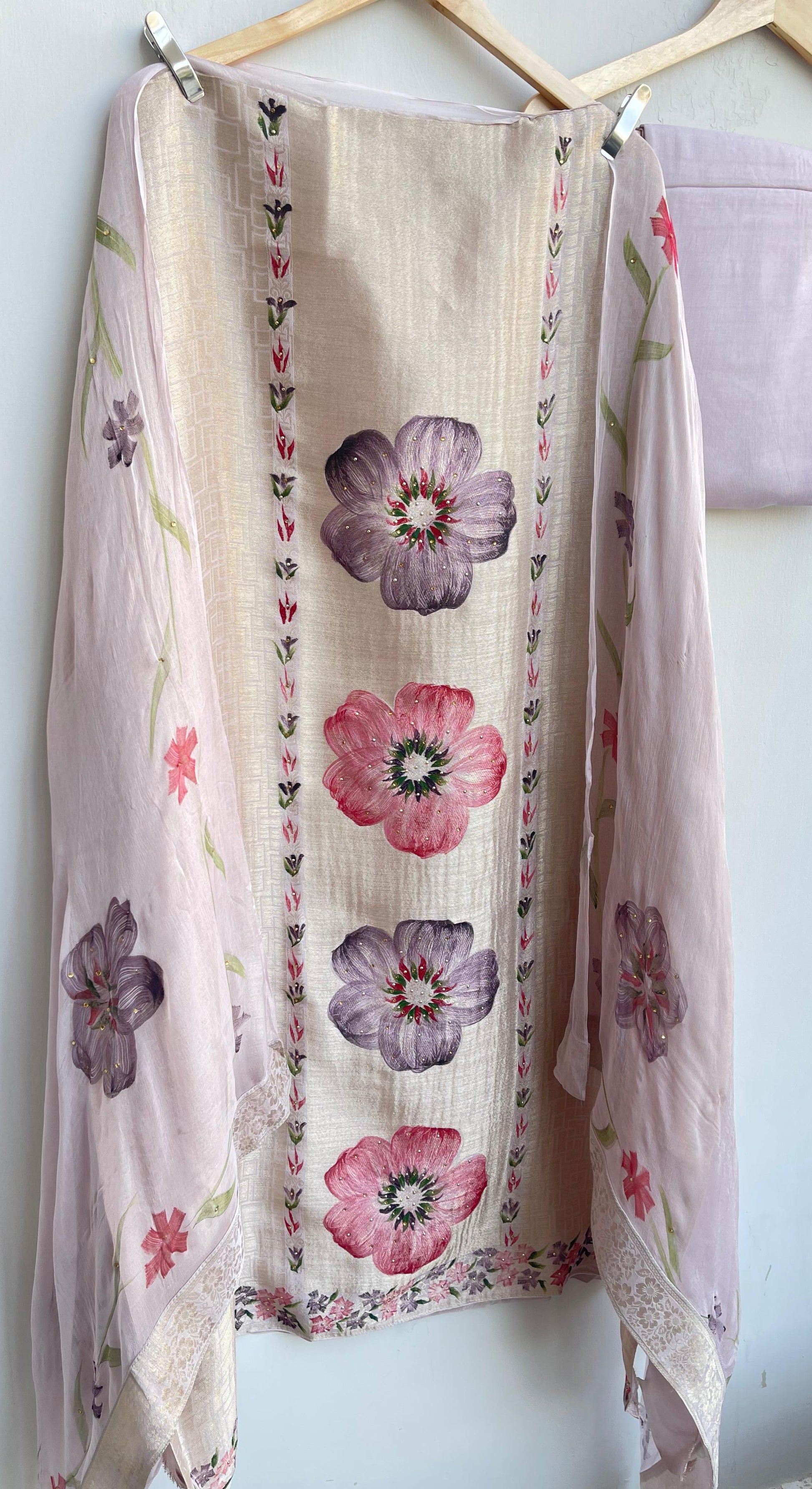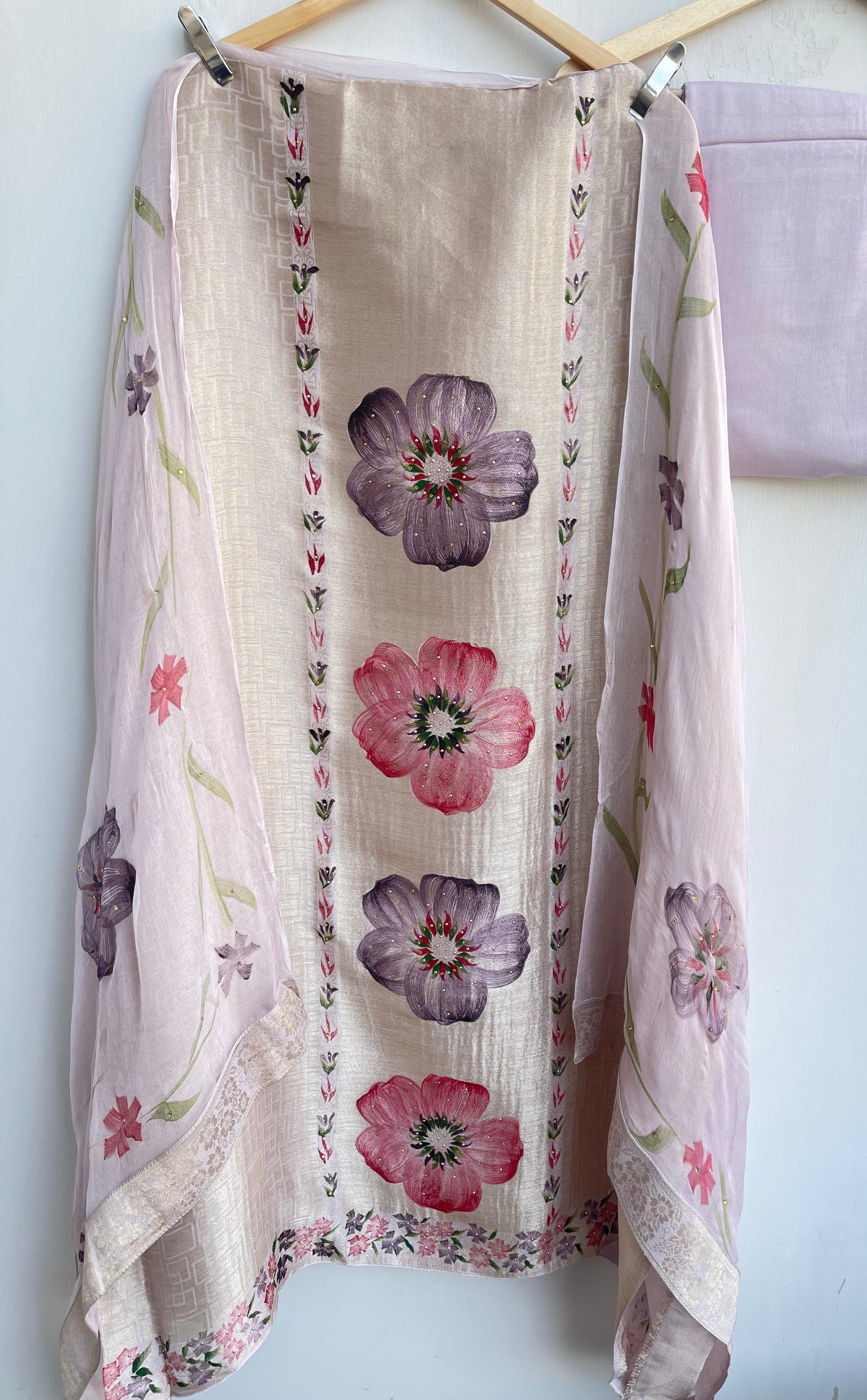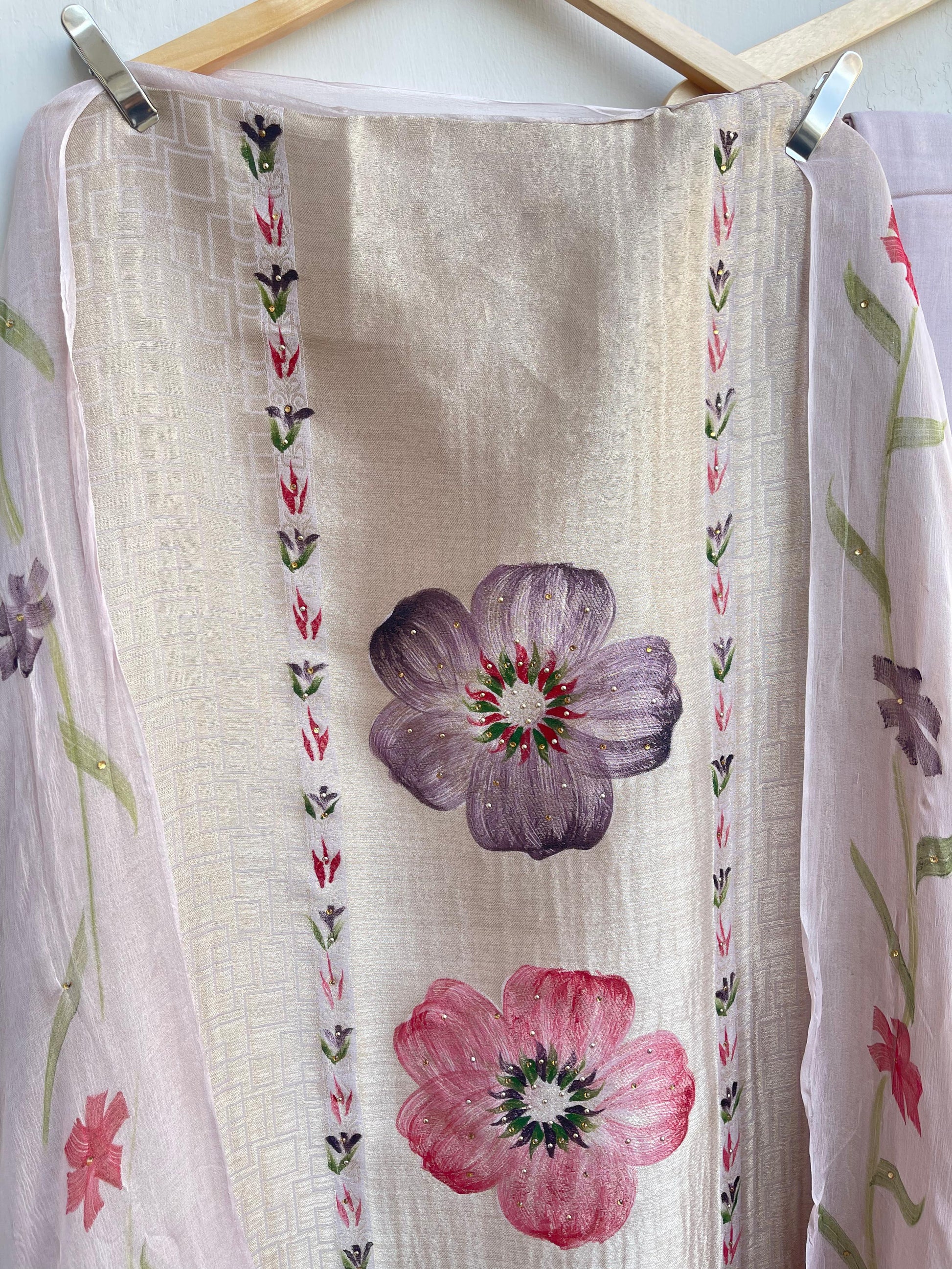 😊 self shimmer tassar silk with brush paint fabric unstitched shirt with pearl highlighting