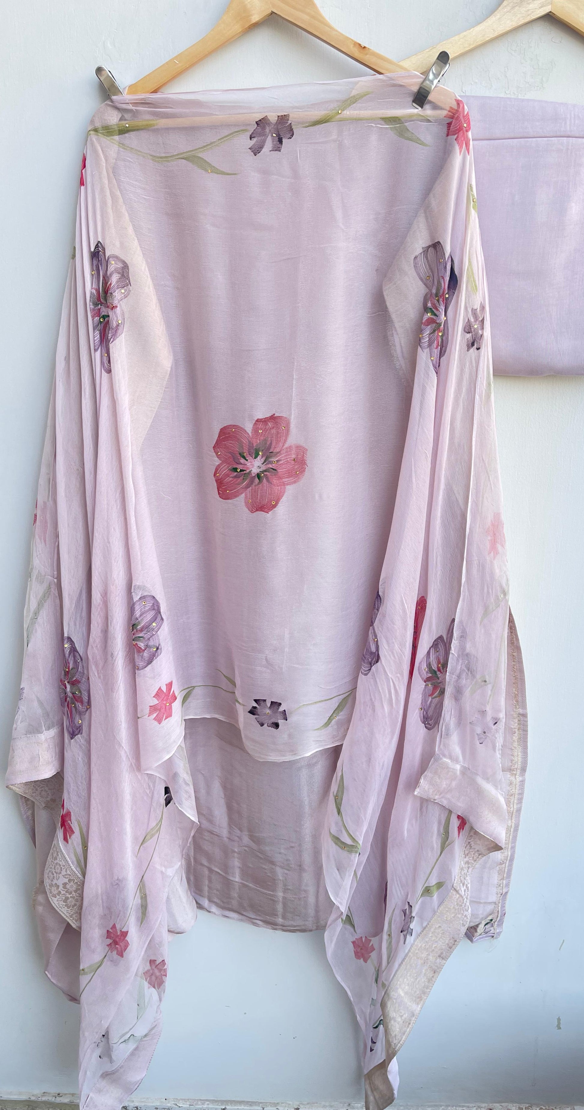 😊 pure chiffon brush pain fabric dupatta with pearl highlighting and brocade Tassar silk borders