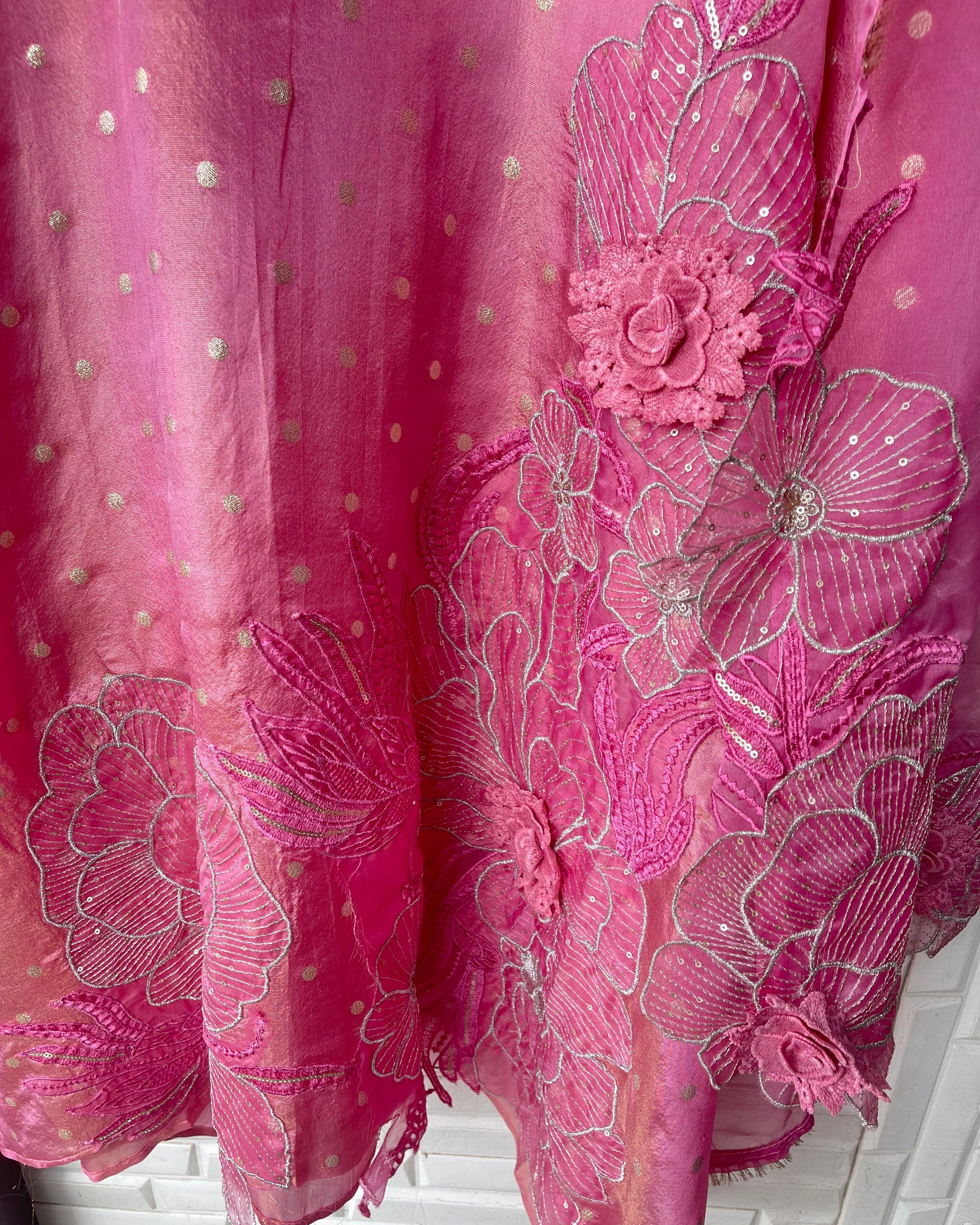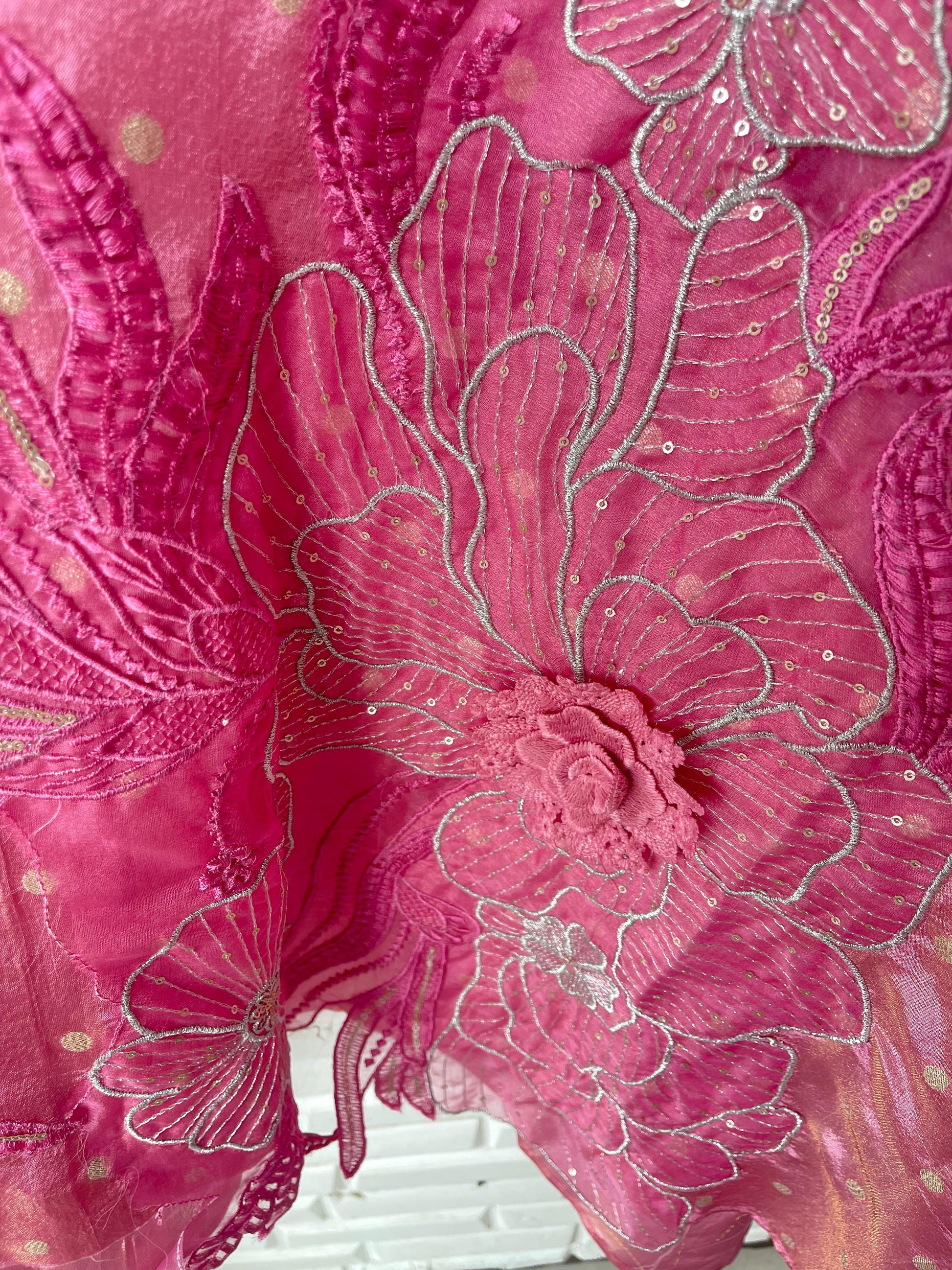 😊organza dupatta with lace and Reham sequins embroidery with 3D flowers