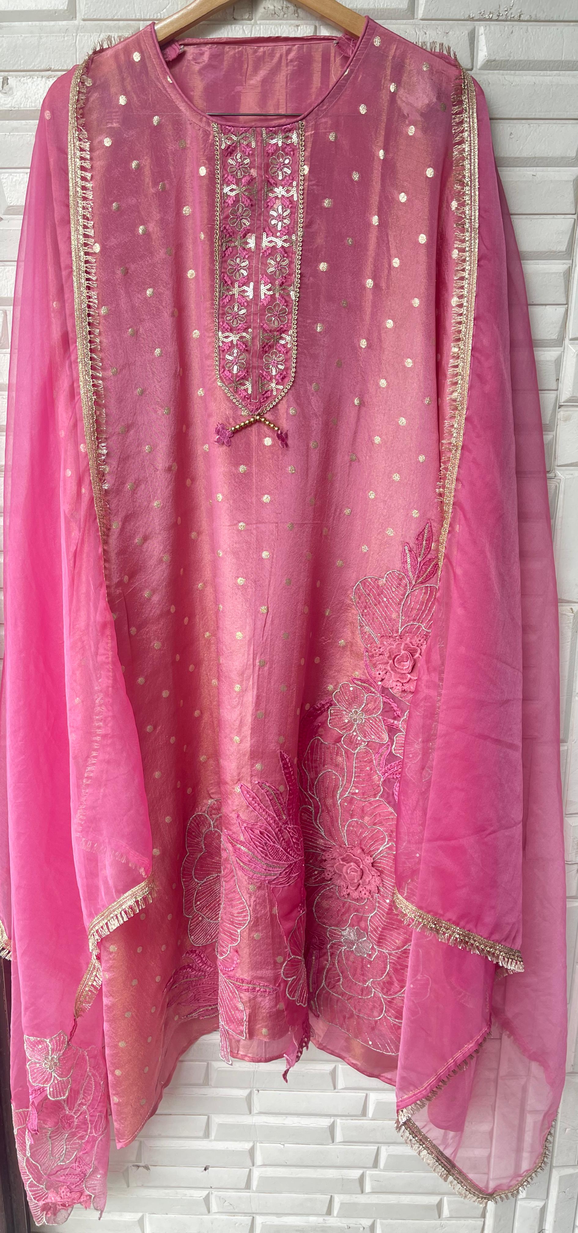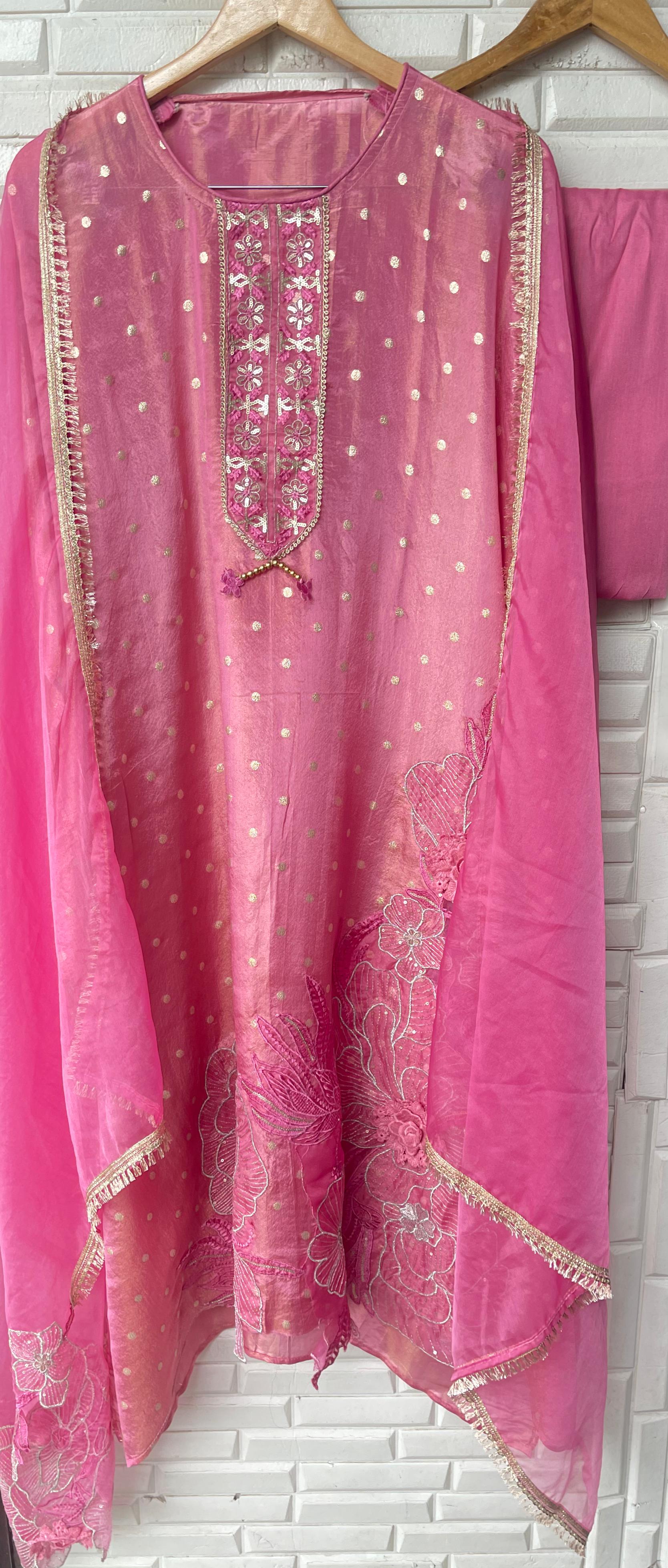 😊shimmer Banarasi semi stitched shirt with sequins Resham