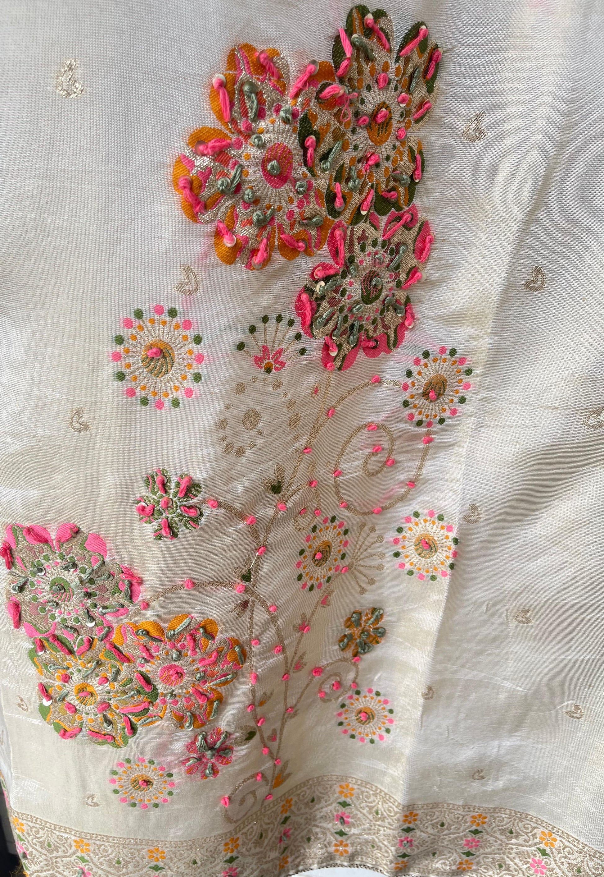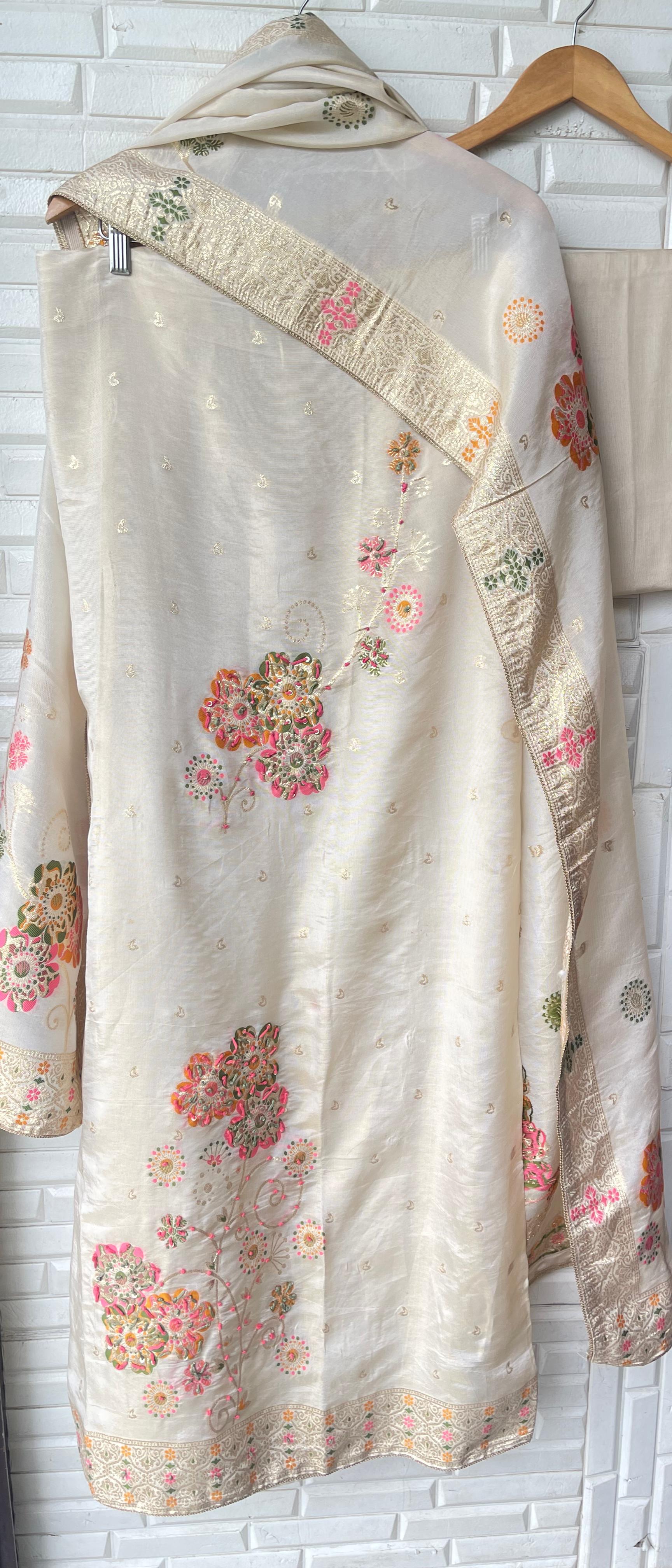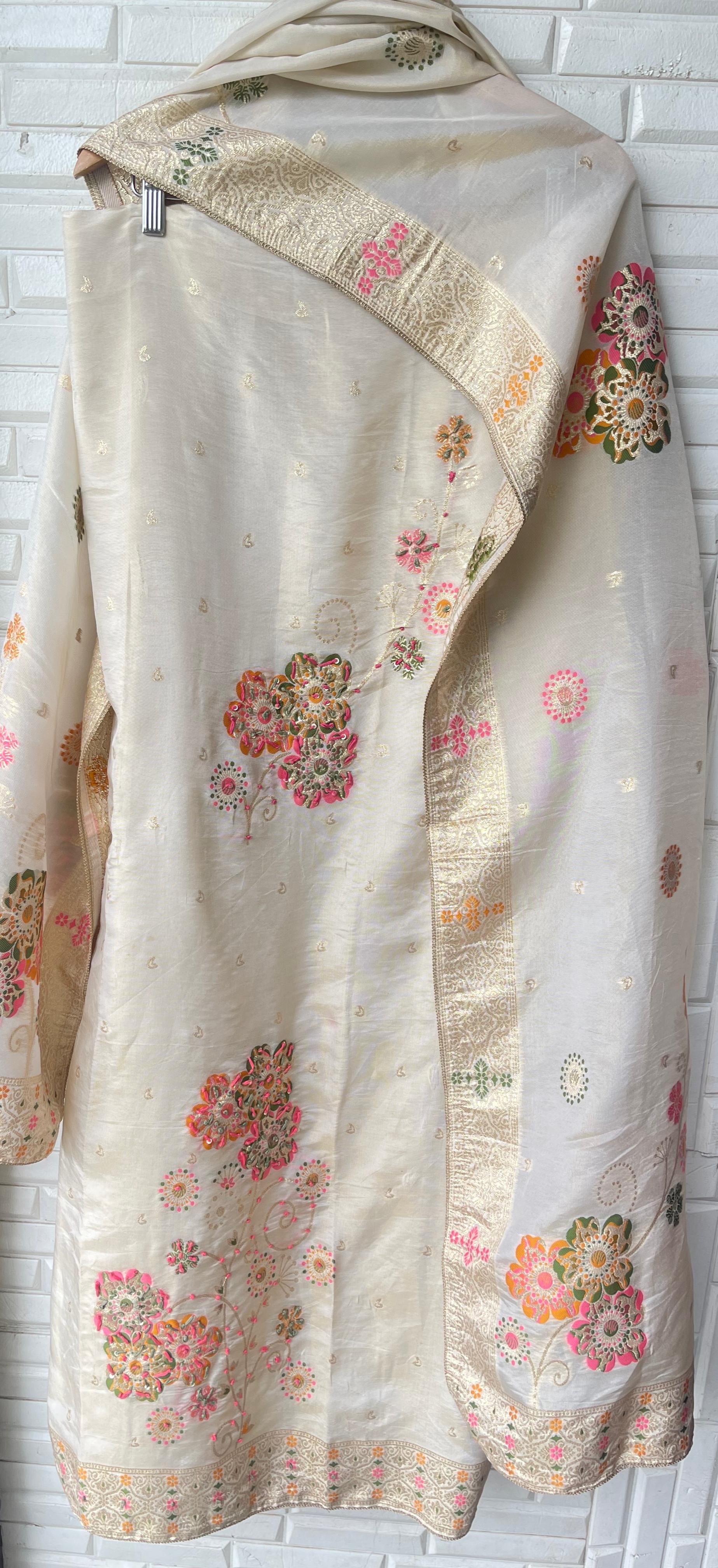 😊shimmer Banarasi shirt unstitched with knots and sequins embroidery highlight on the weaving