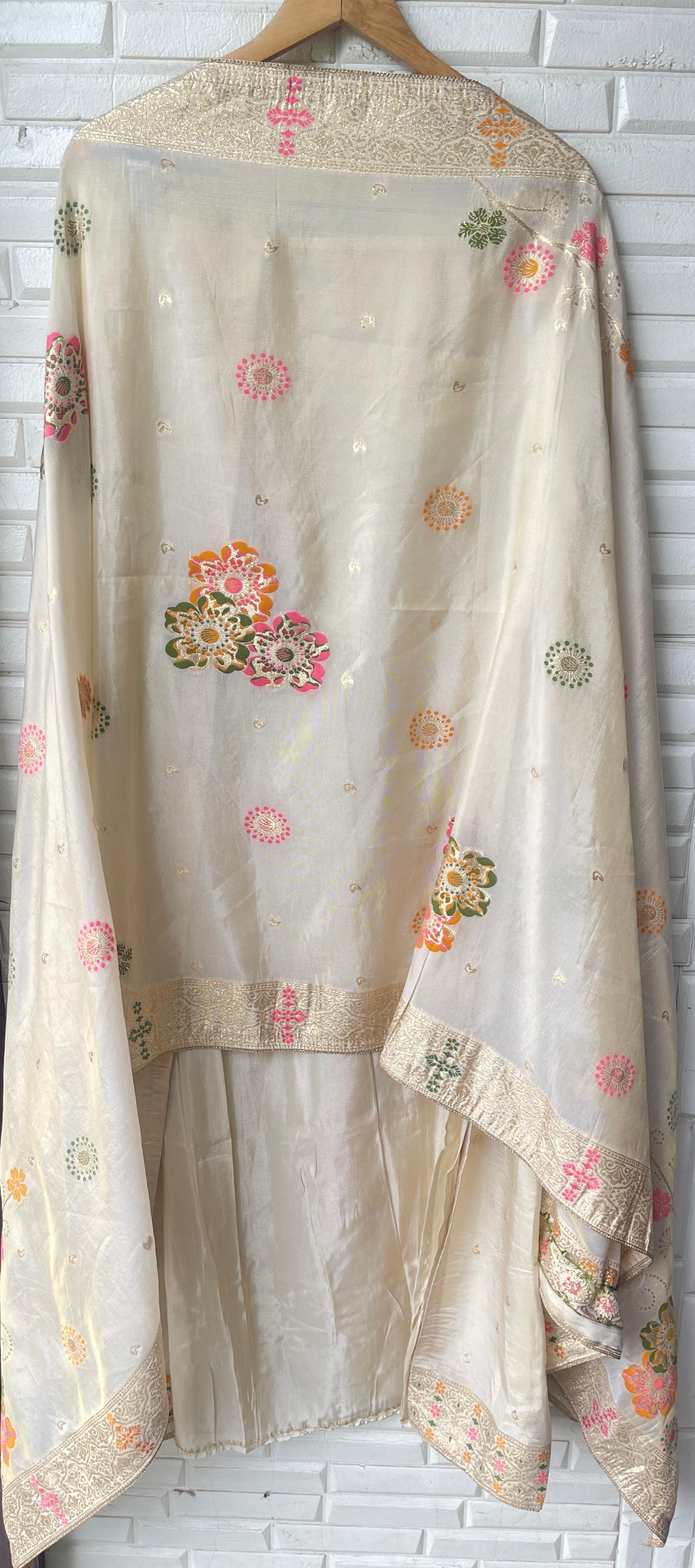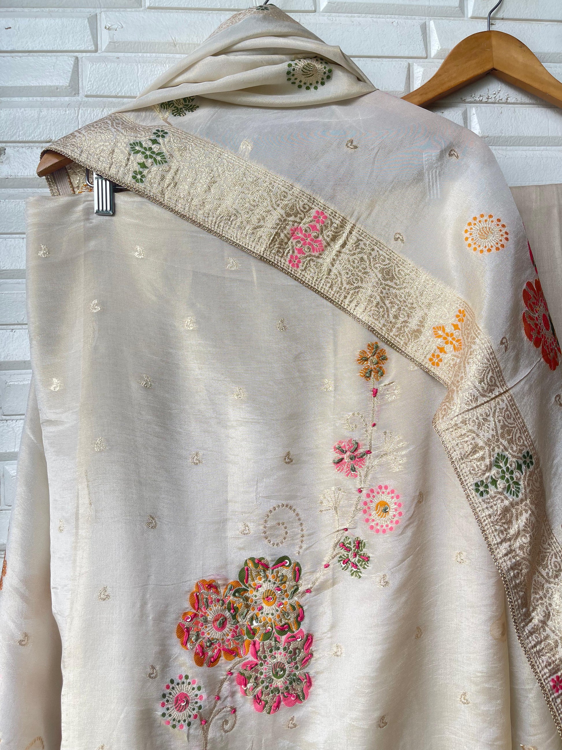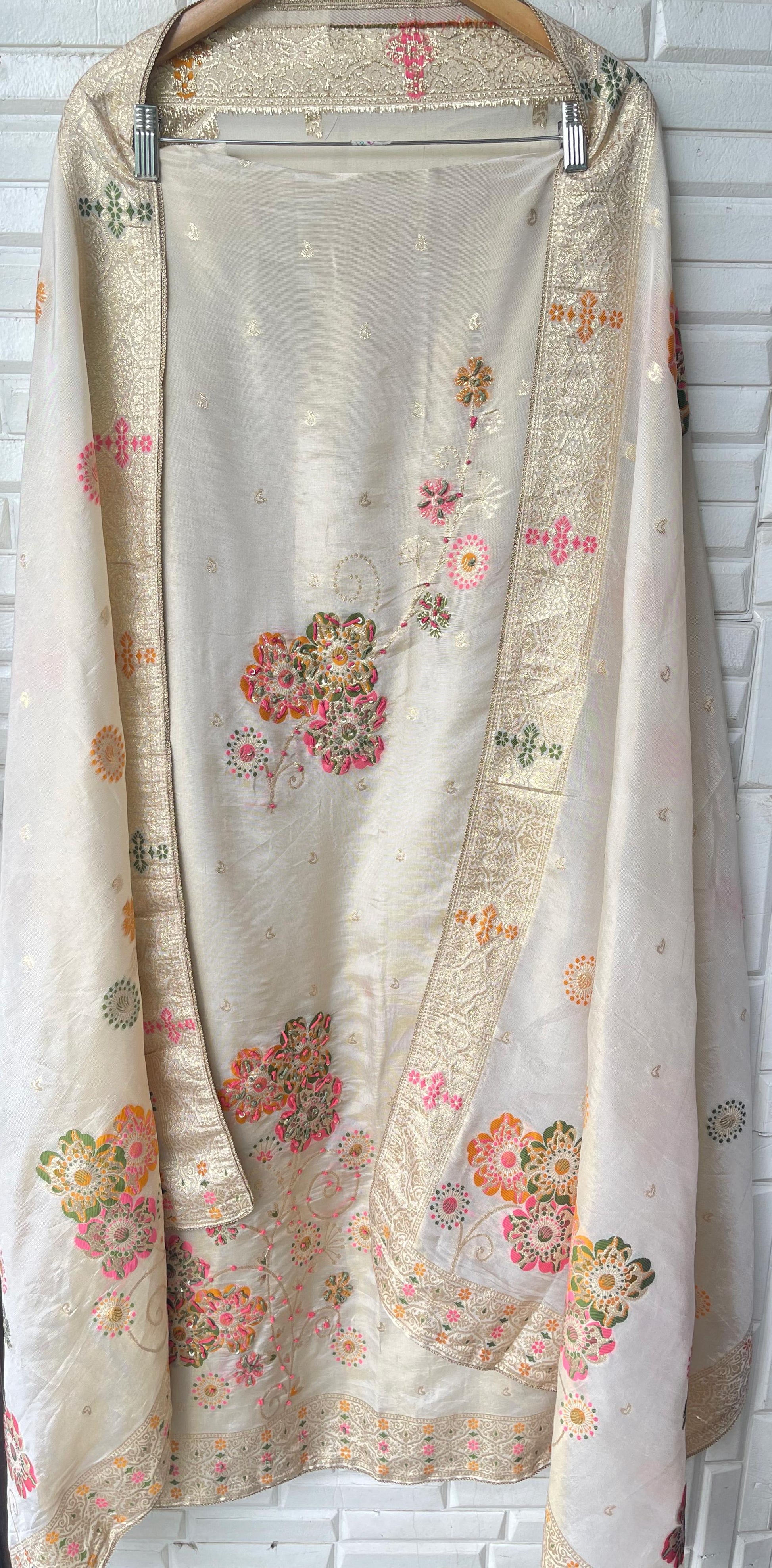 😊shimmer Banarasi shirt unstitched with knots and sequins embroidery highlight on the weaving