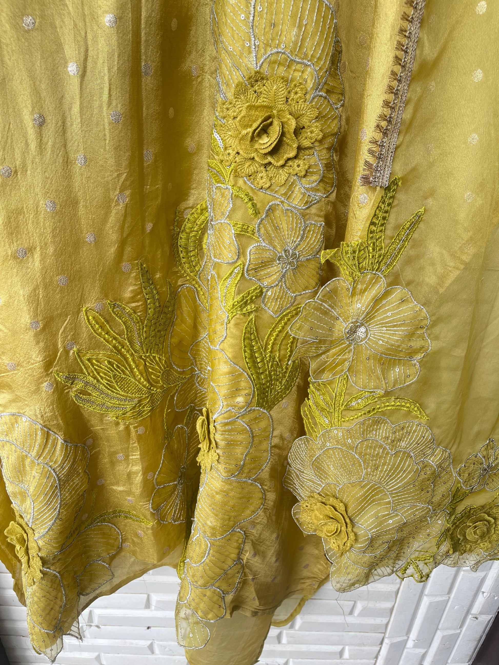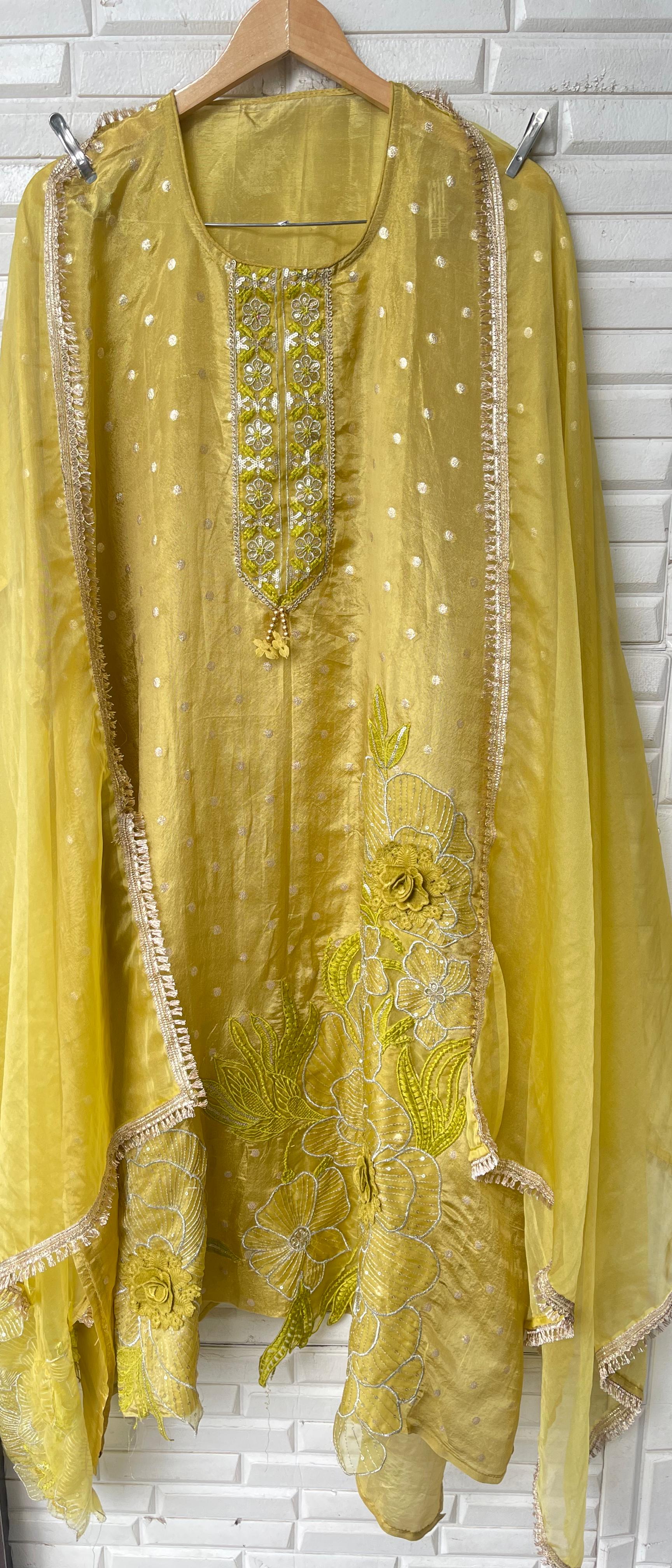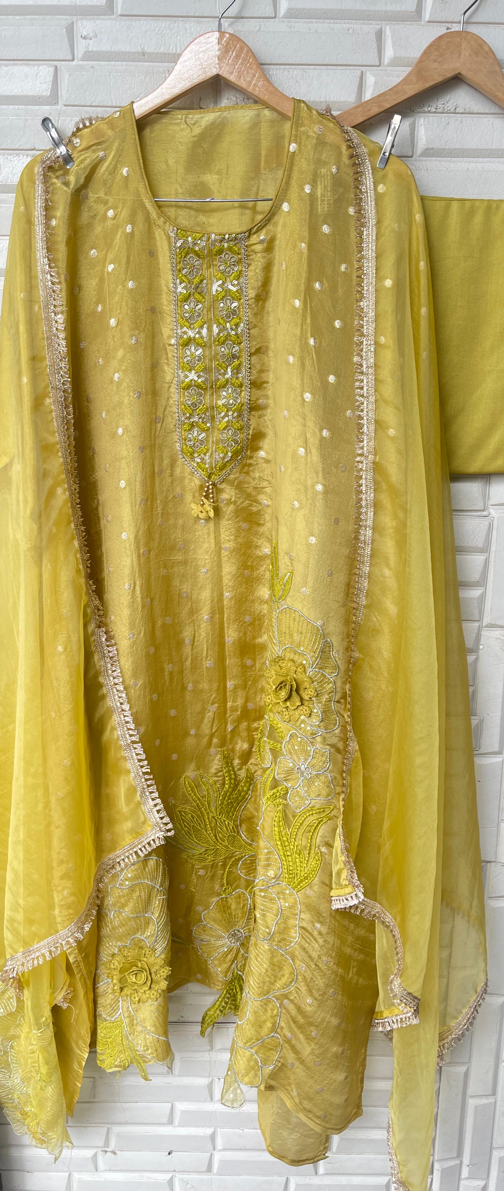 😊shimmer Banarasi semi stitched shirt with sequins Resham