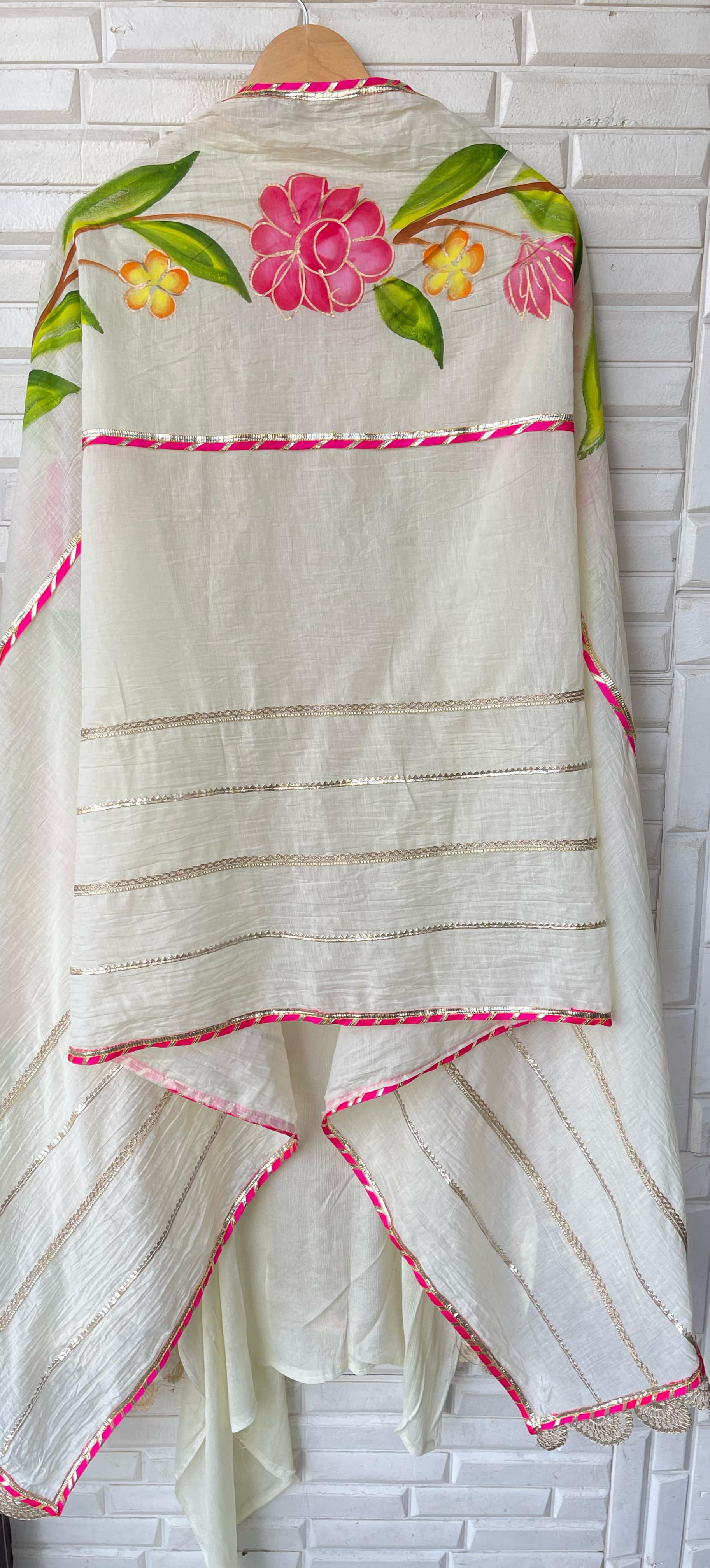 š Soft mal cotton brush painted fabric dupatta with gotta laceĀ