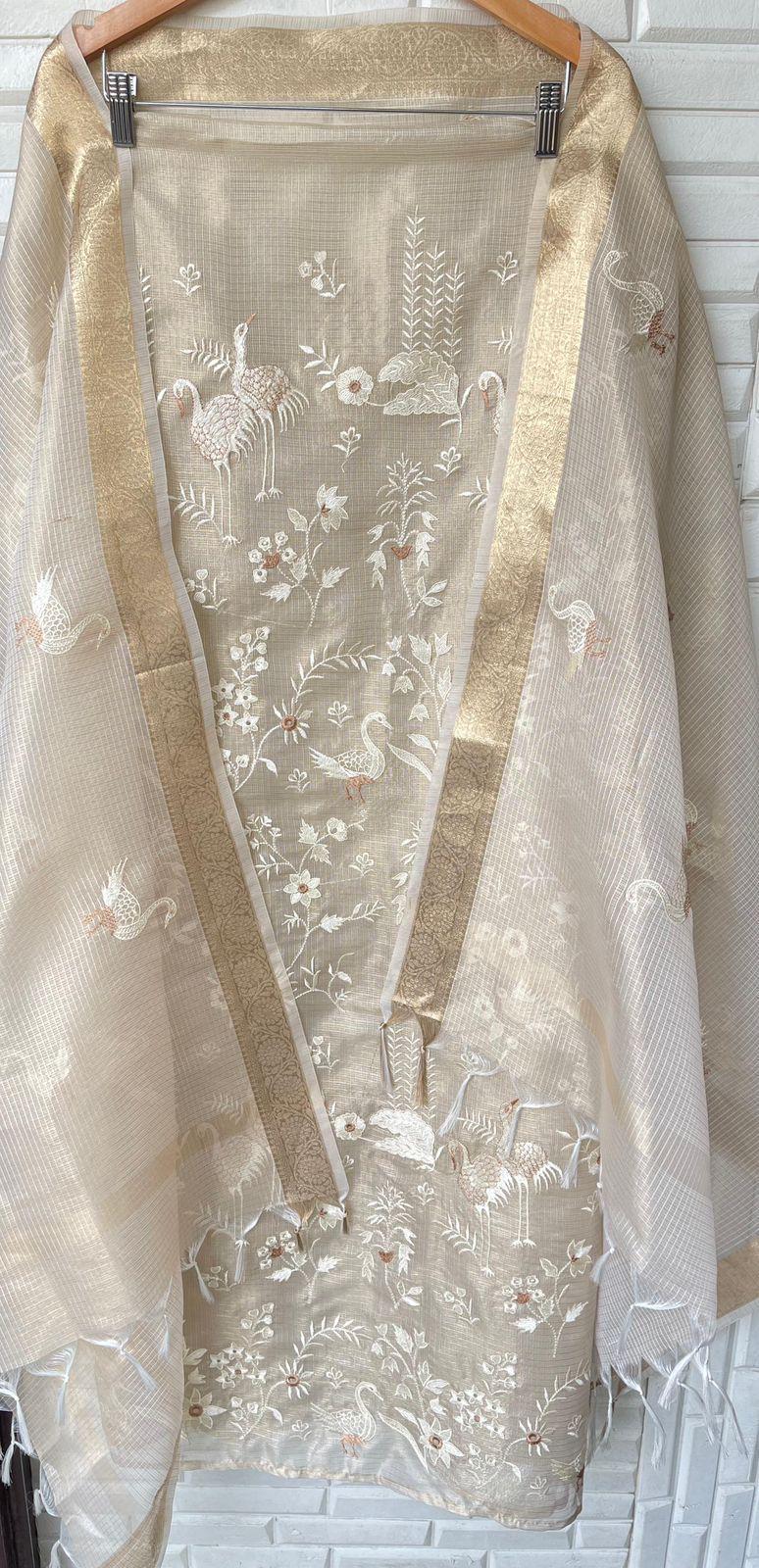😊 shimmer kora silk fabric unstitched shirt with sequence zari embroidery