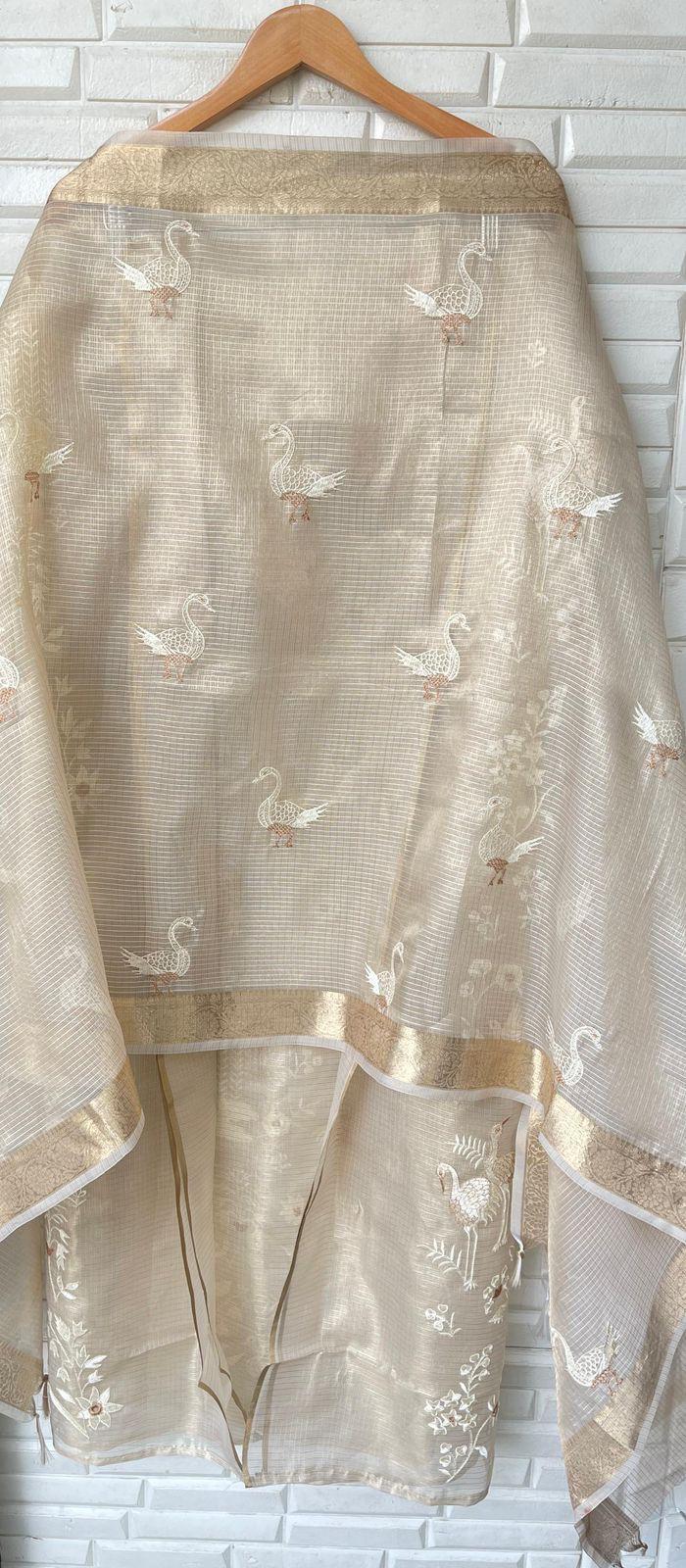☺️ shimmer kora silk fabric dupatta with zari sequence embroidery