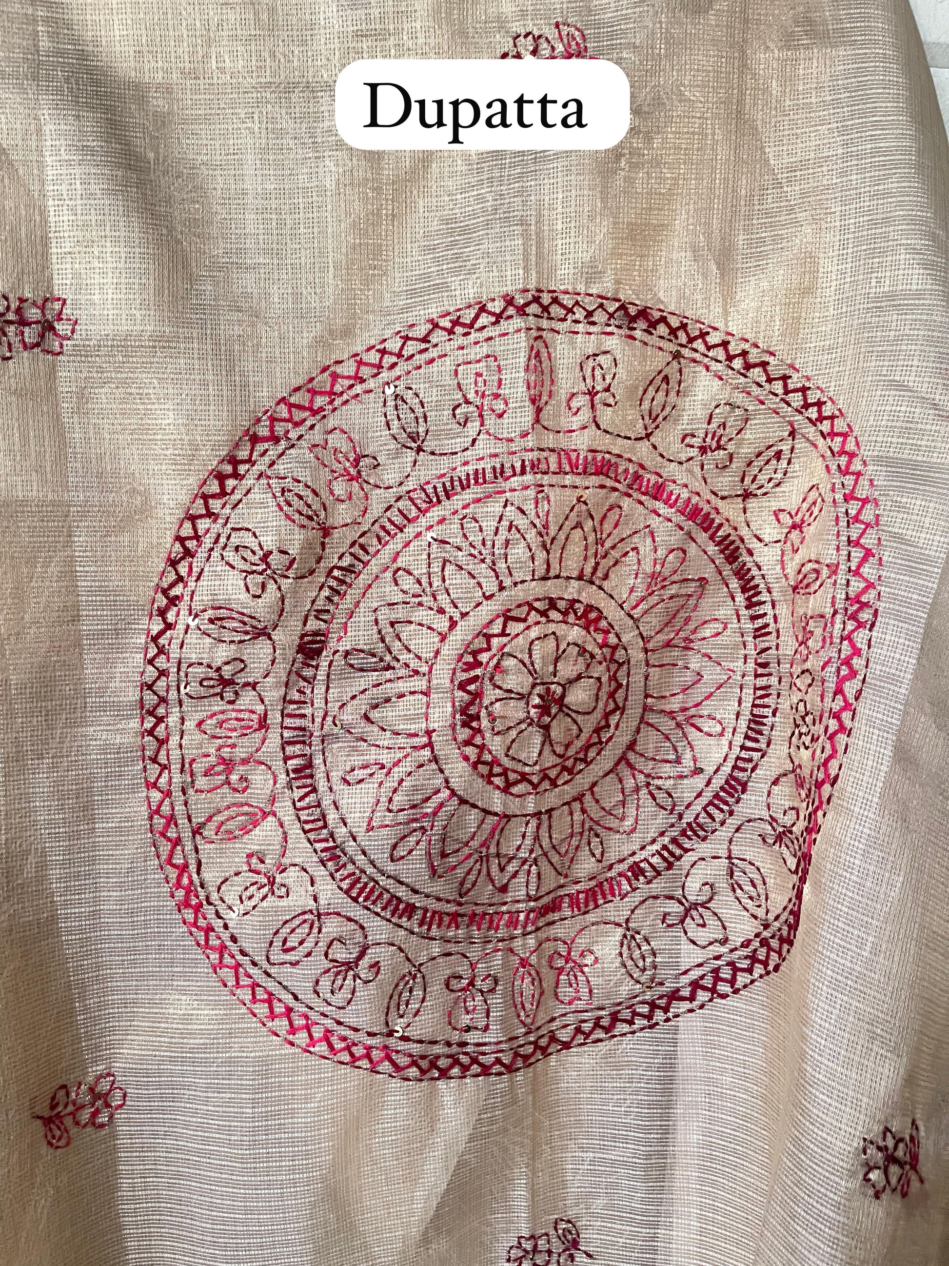 π shimmer kota doriya fabric unstitched shirt with resham knots sequence kutdanna embroidery all over the front