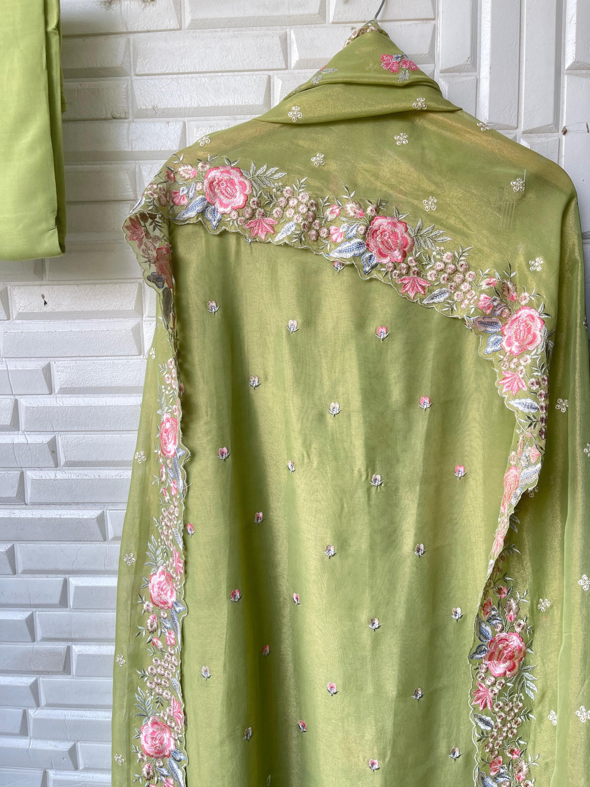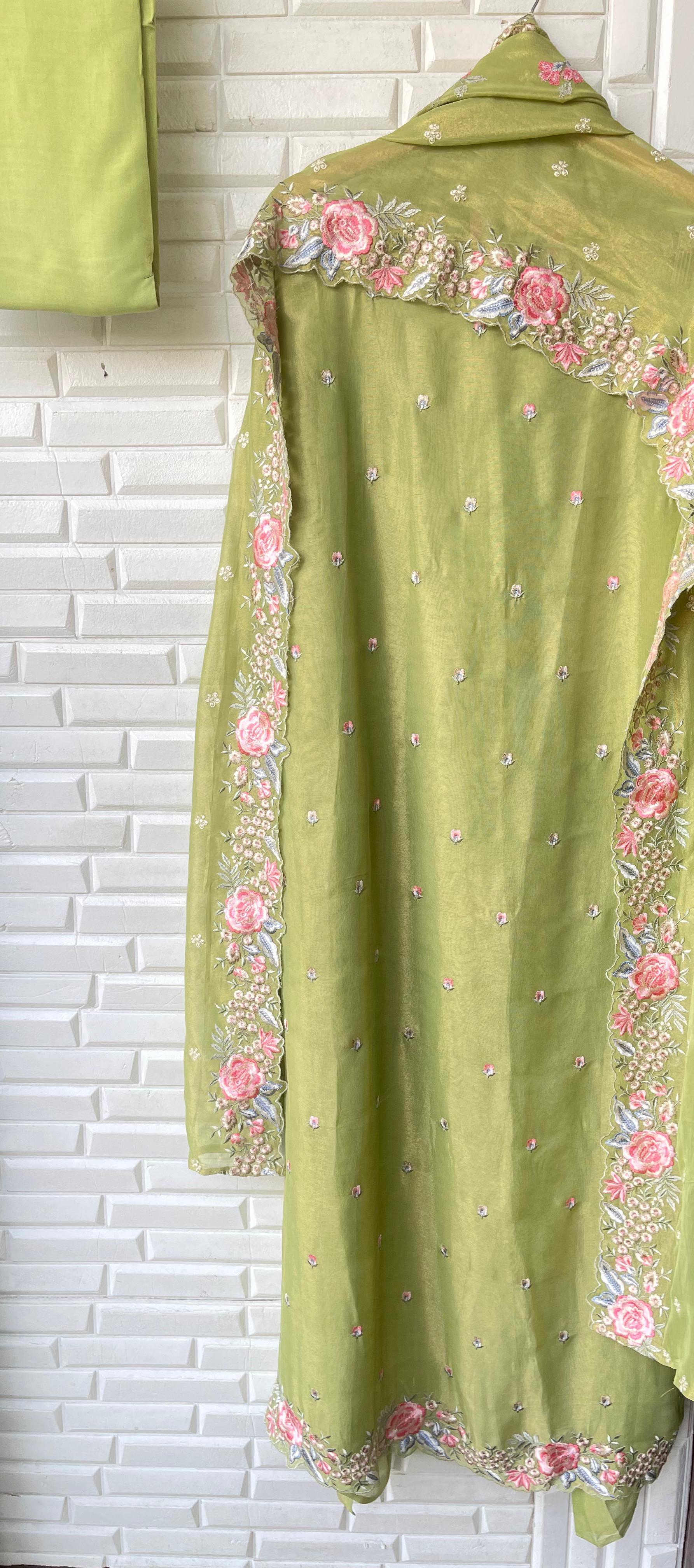 😊pure shimmer soft organza unstitched shirt with stunning Resham embroidery