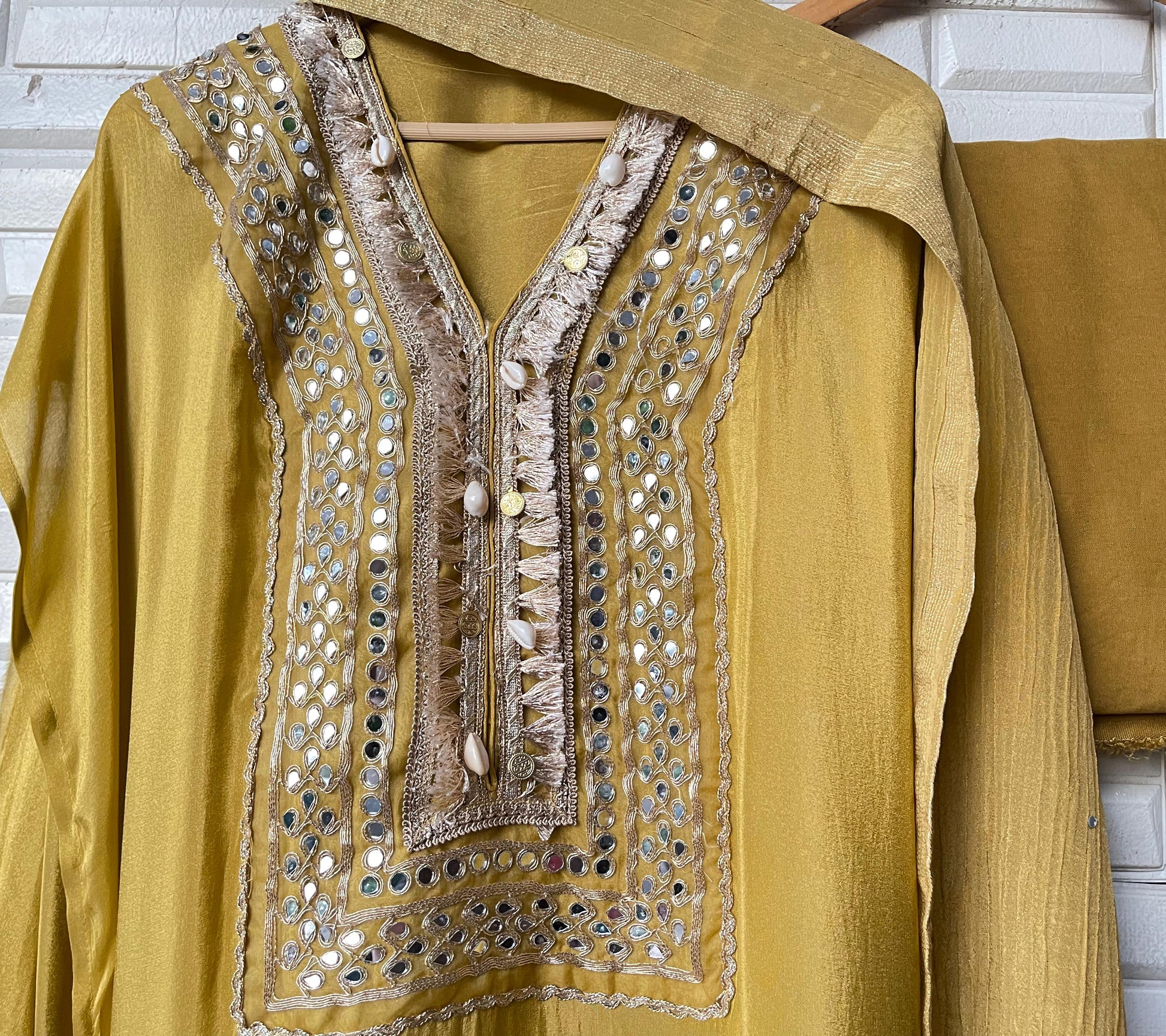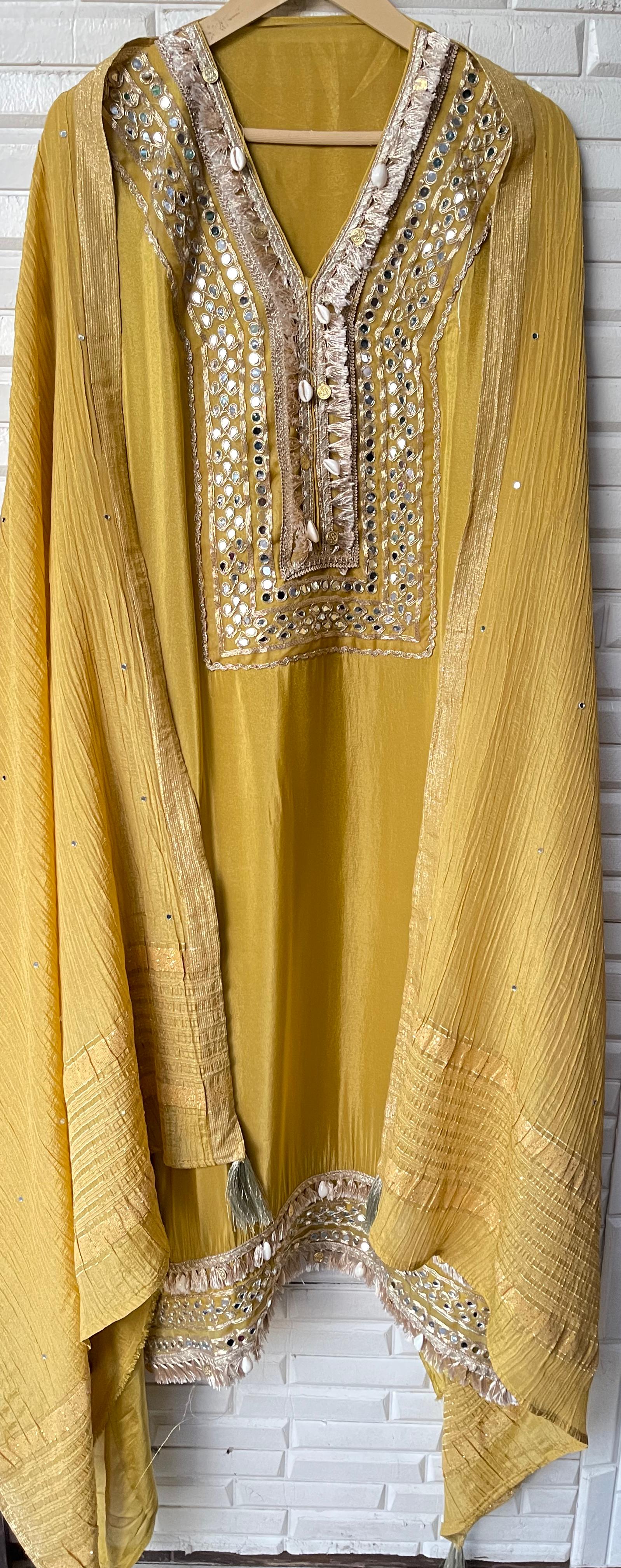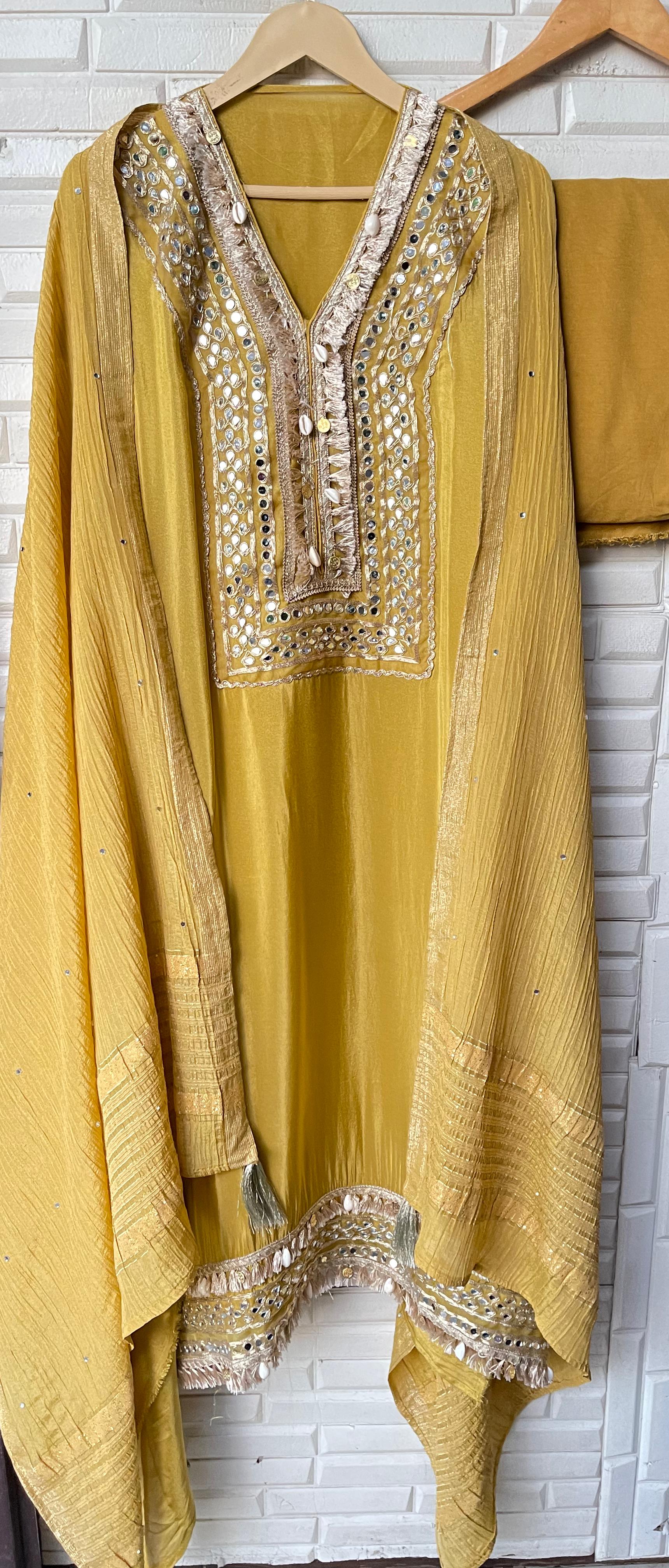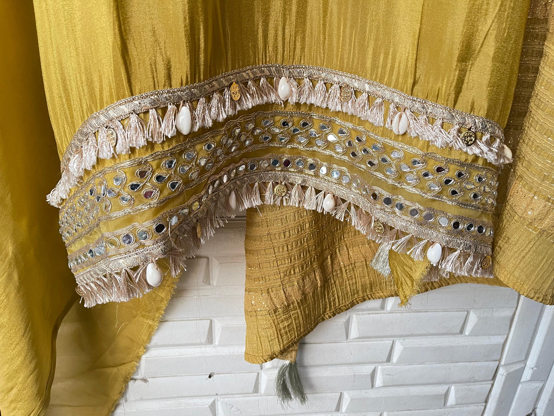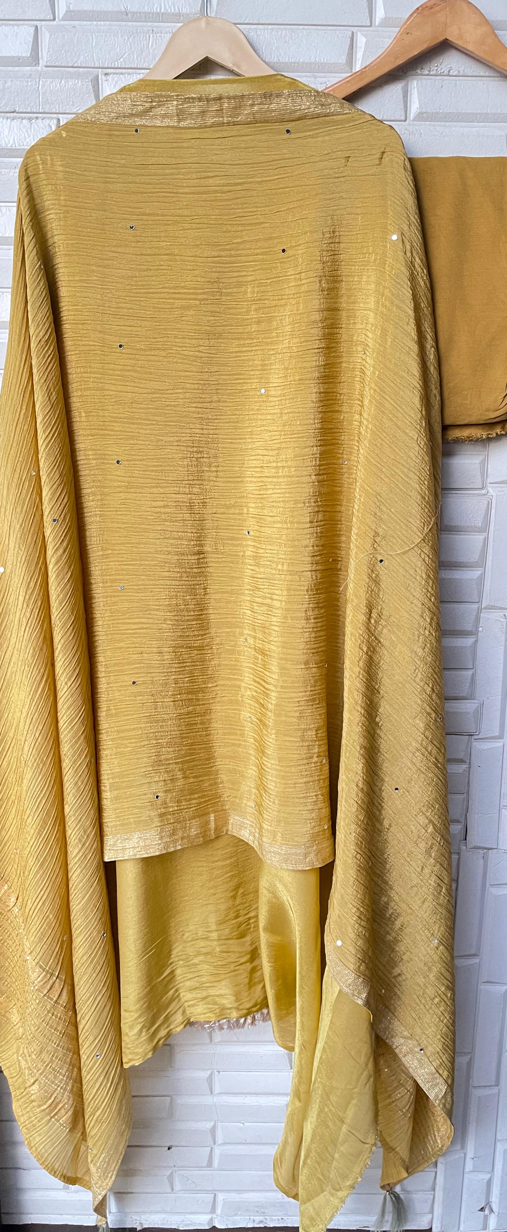 π shimmer crushed tissue fabric dupatta with latkans and mirror work highlighting
