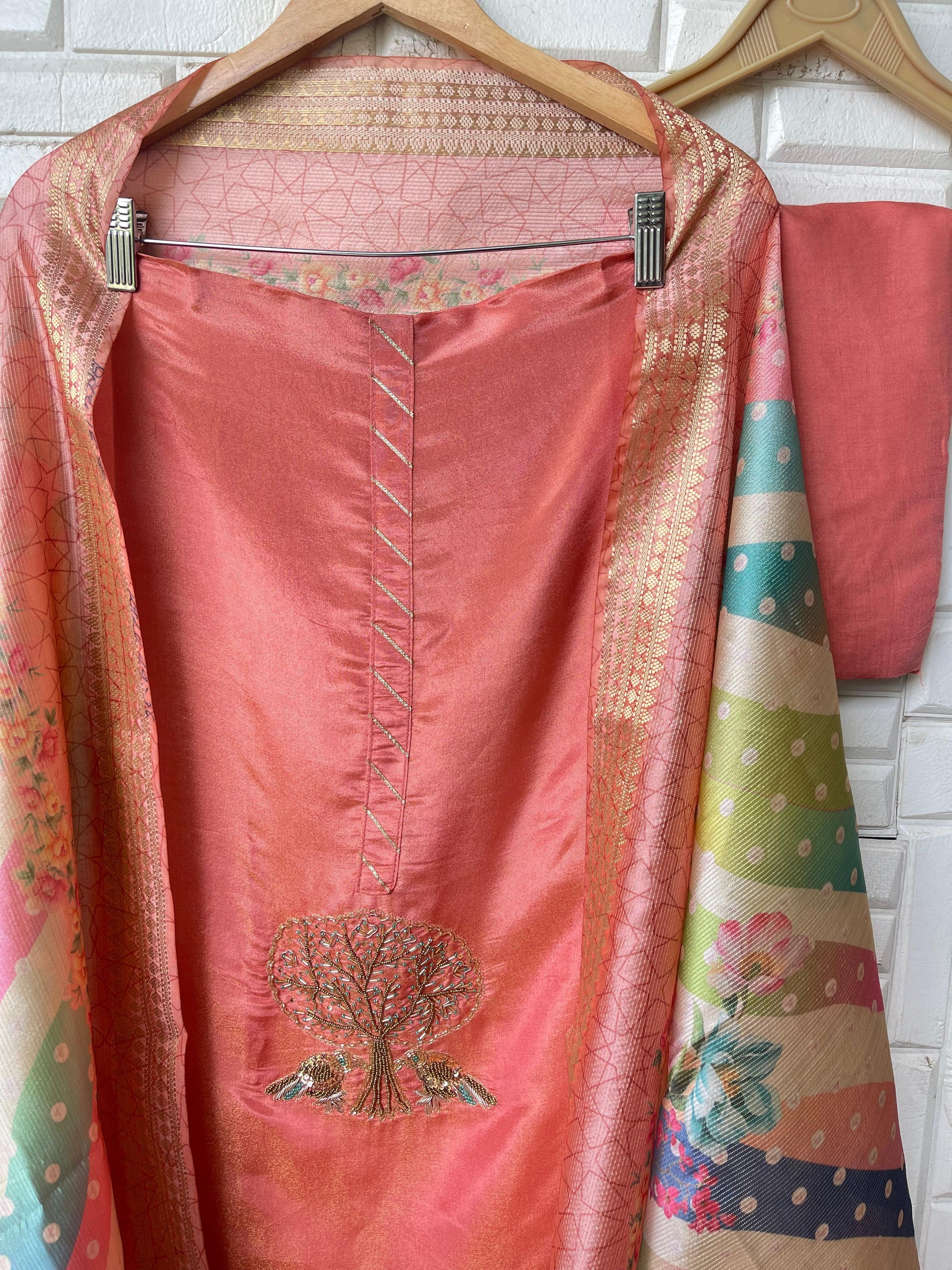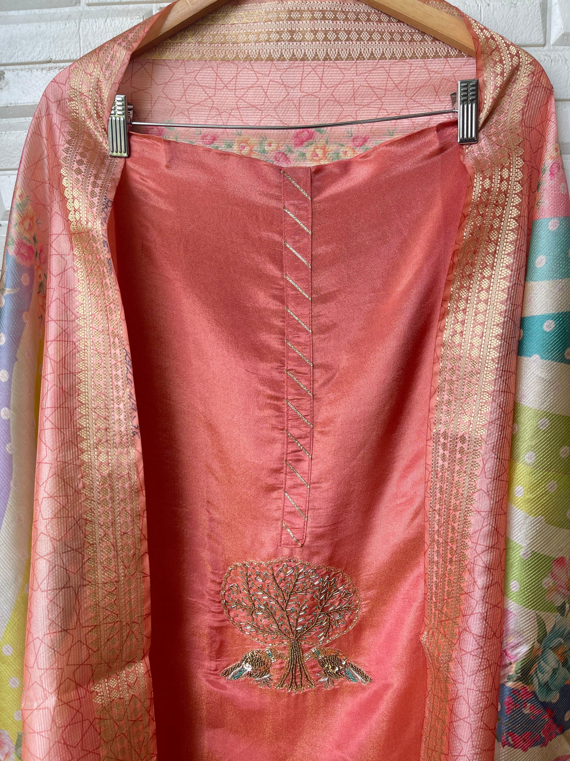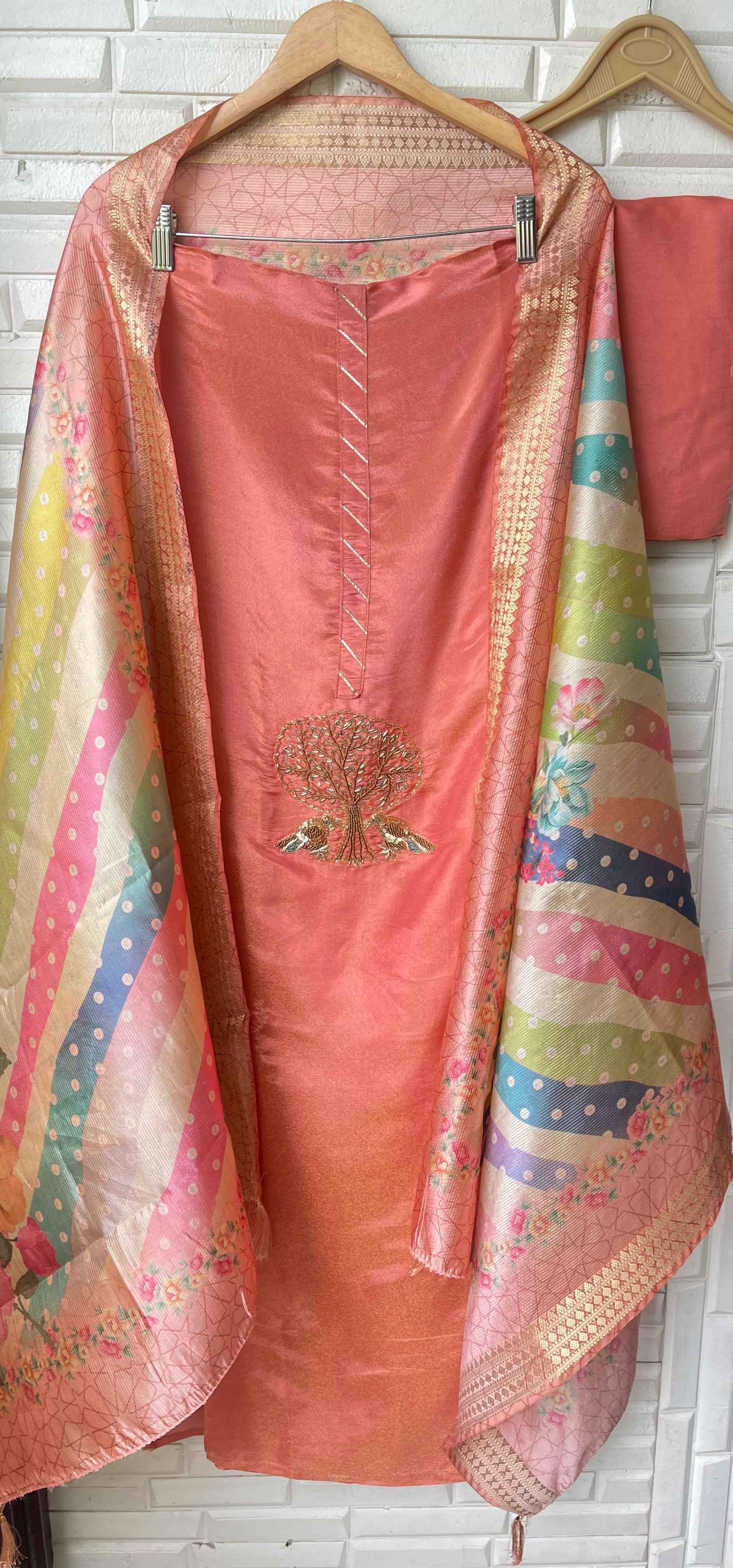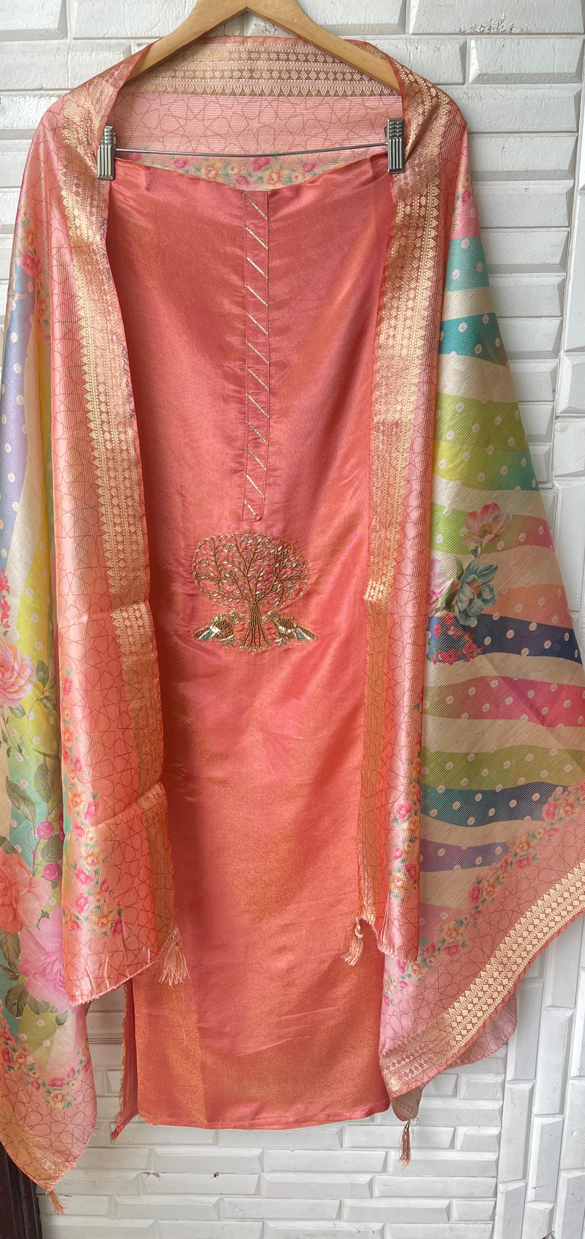 😊 soft shimmer silk fabric unstitched shirt with resham sequence kutdanna beads pearls embroidery