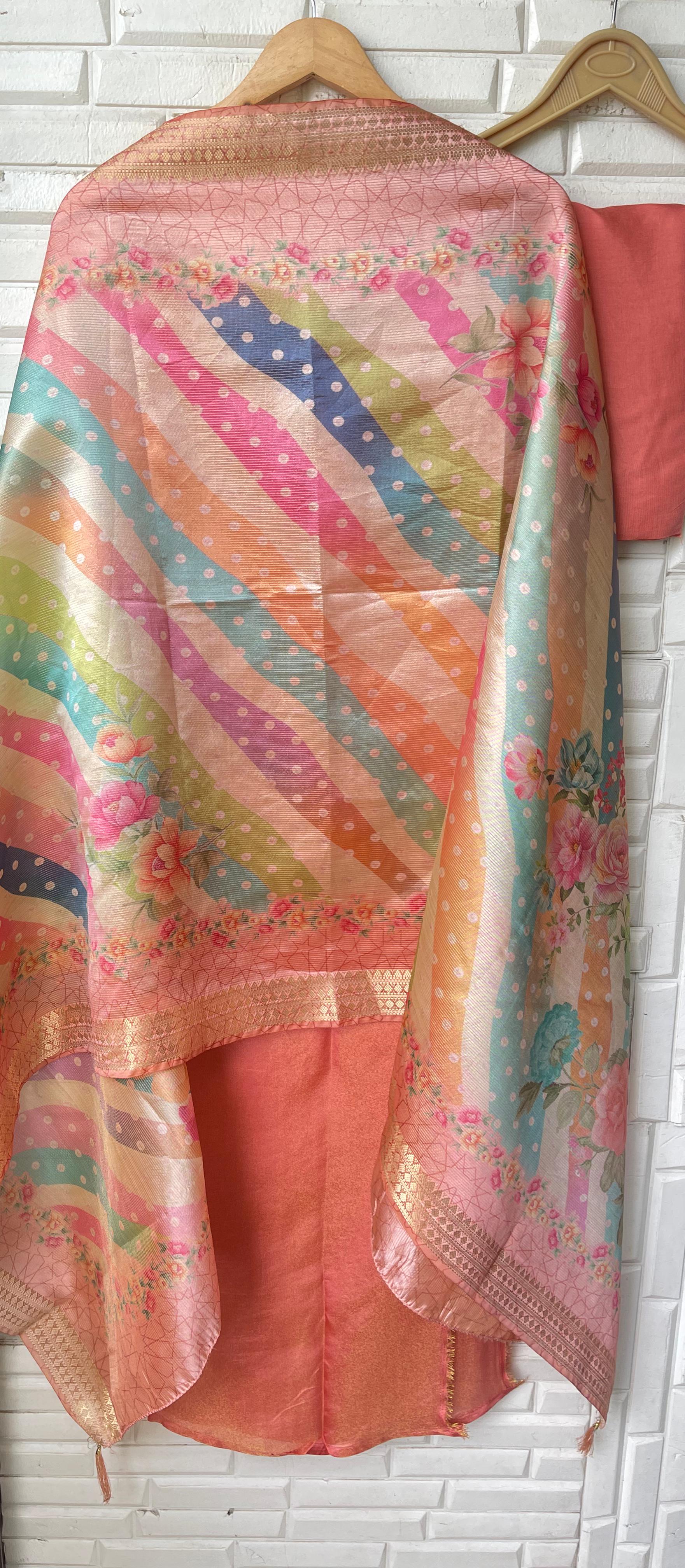 😊 pure shimmer silk Printed fabric dupatta with latkans