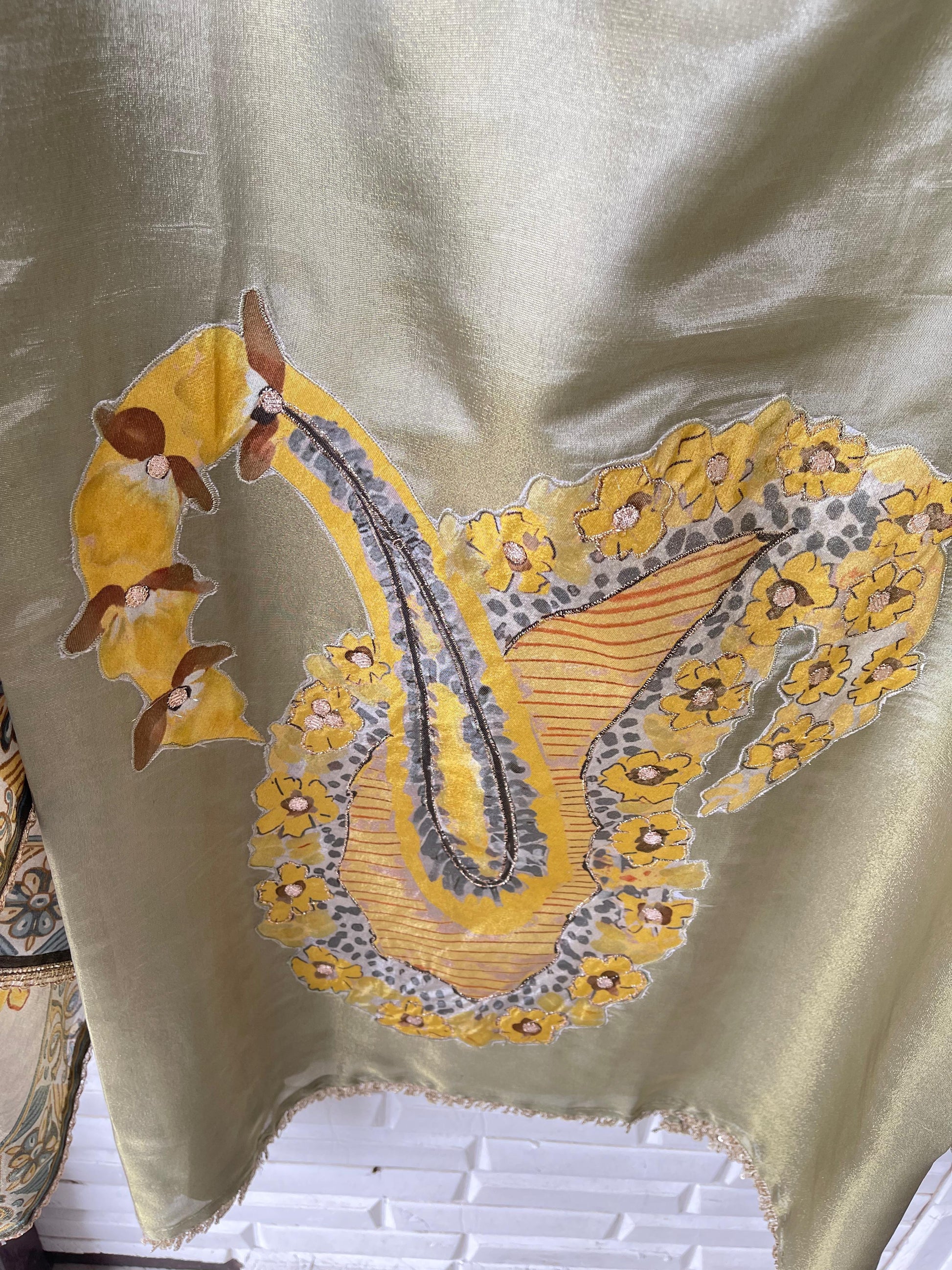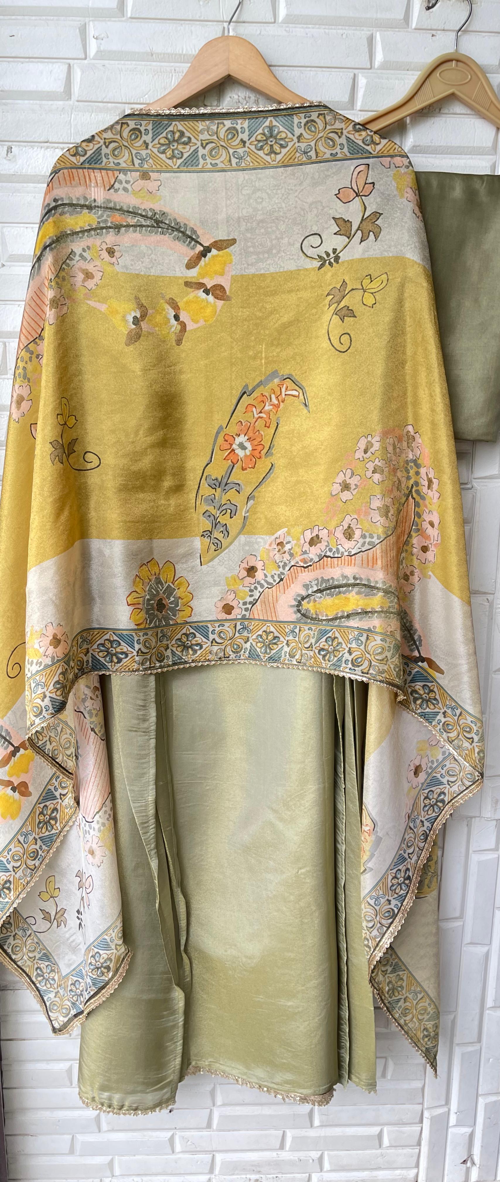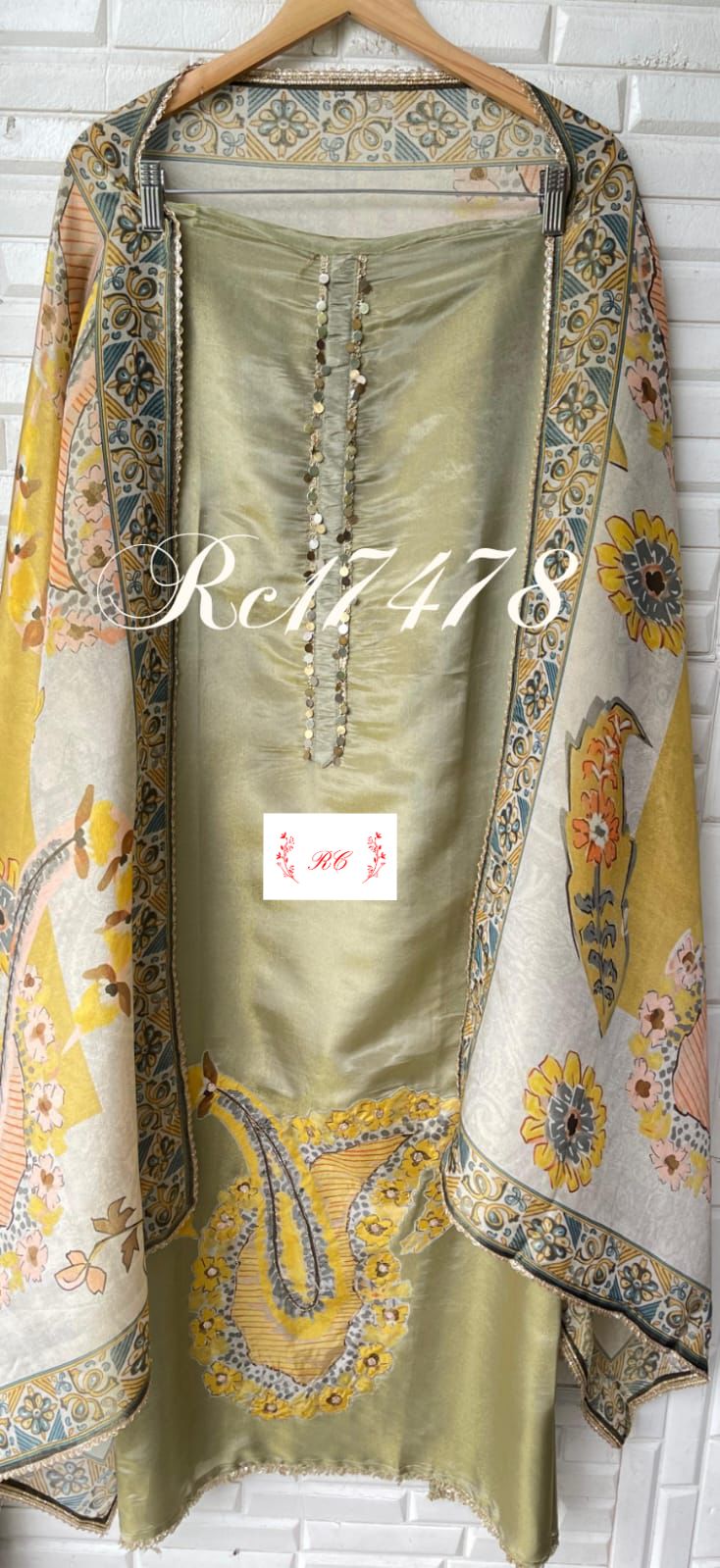 😊 shimmer silk printed fabric unstitched shirt with gotta work zari embroidery