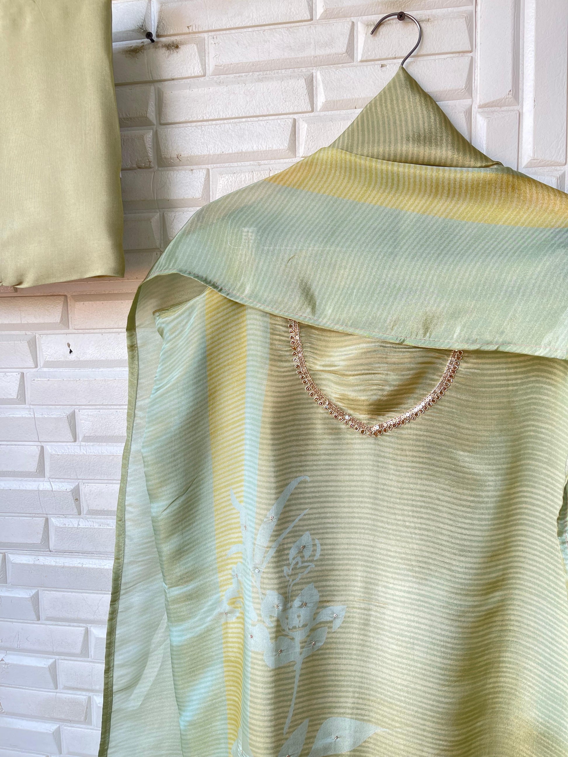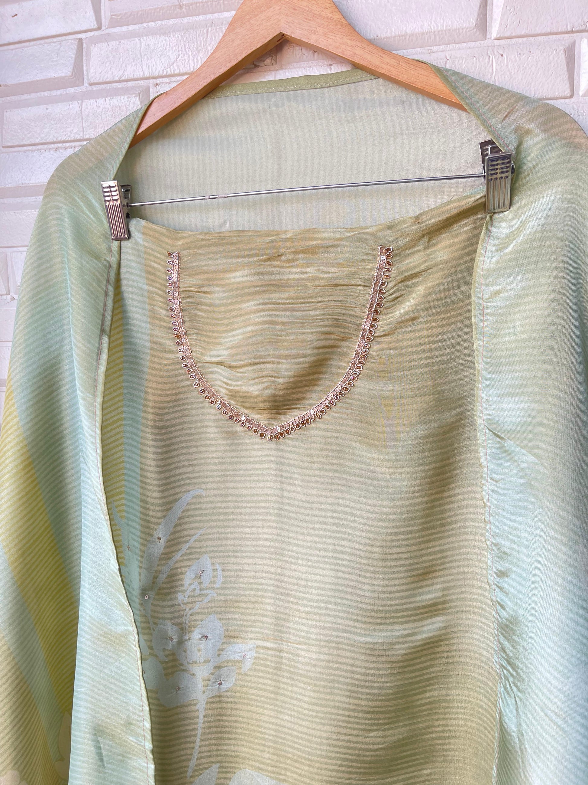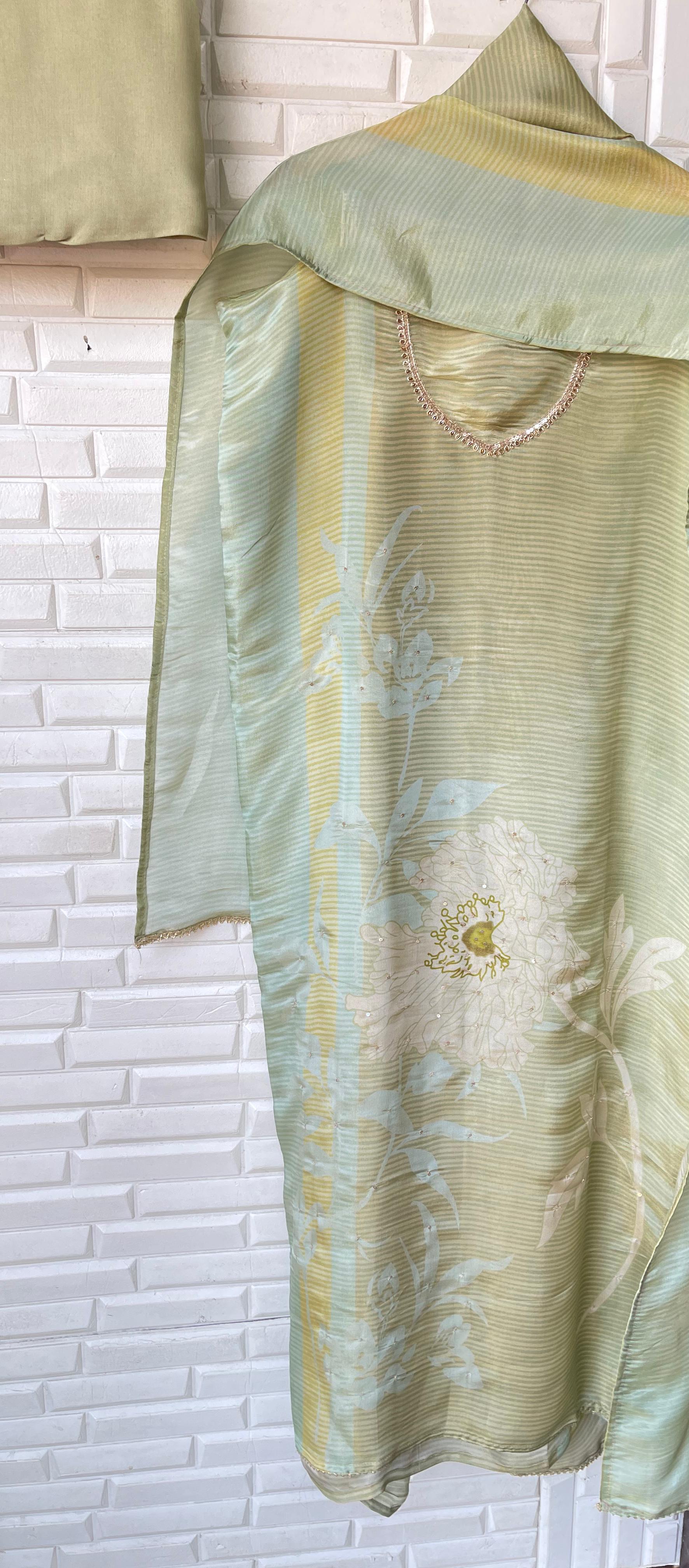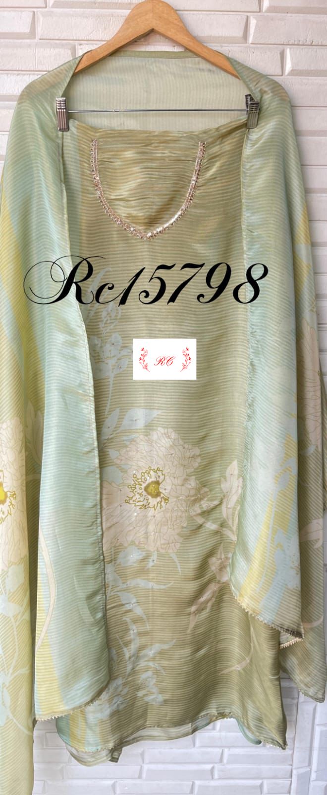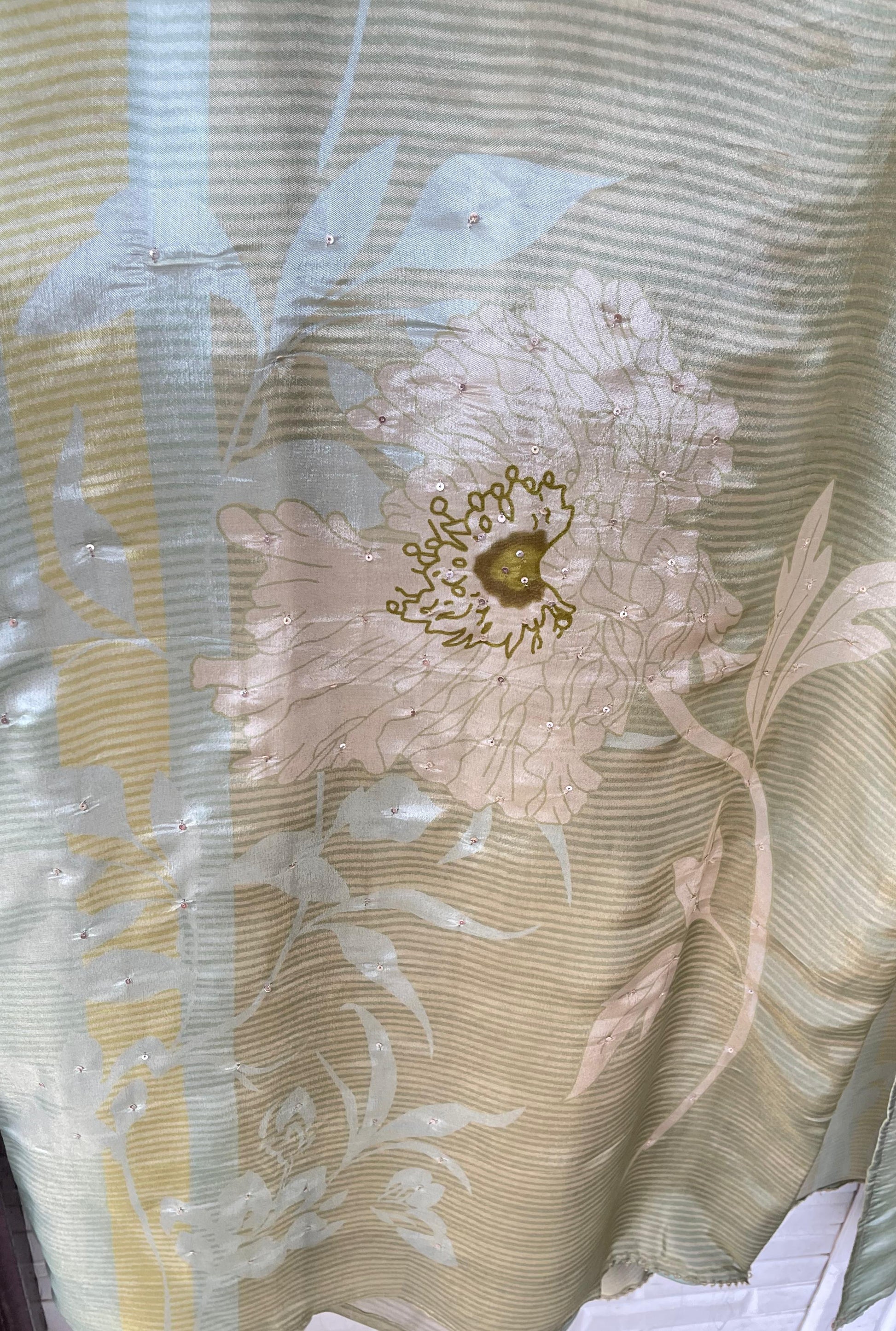 😊 pure shimmer silk printed fabric unstitched shirt with sequence pearl dabka embroidery