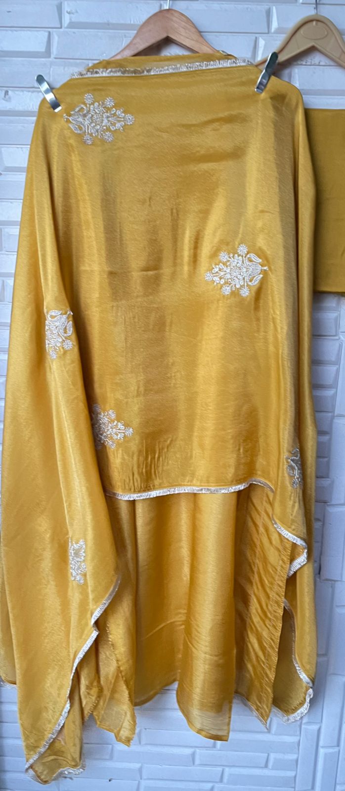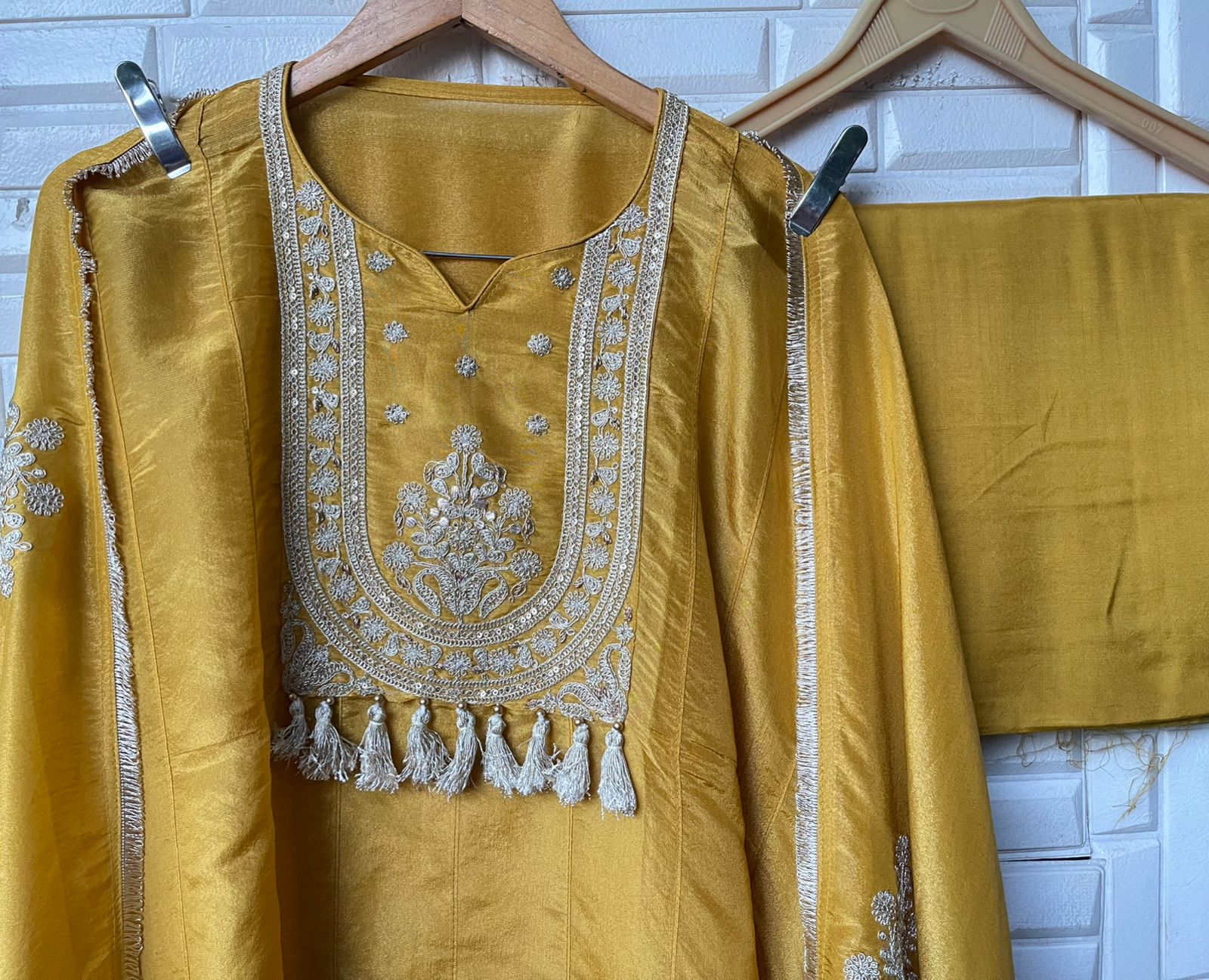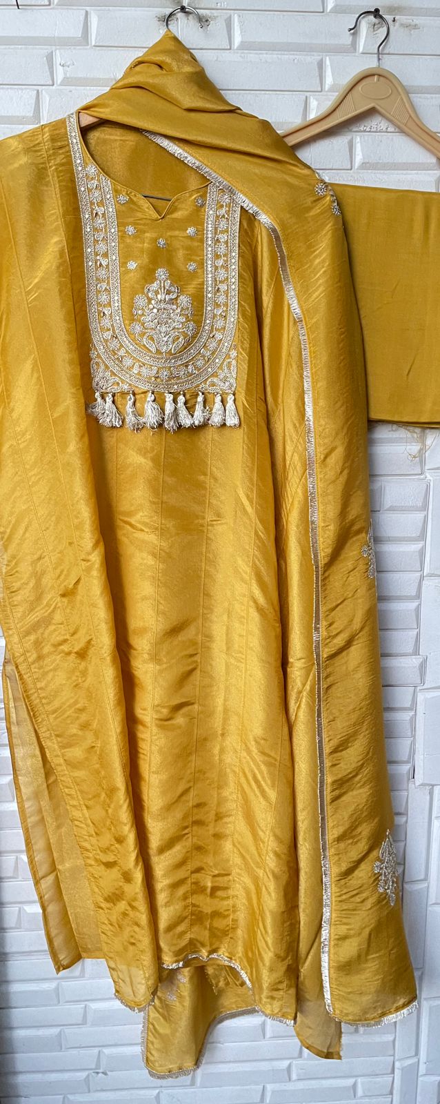 π shimmer silk fabric dupatta with zari embroidery and tassel border lace