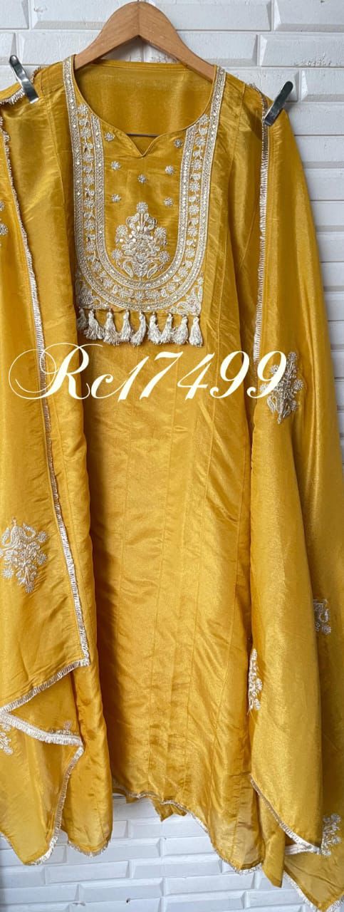 π shimmer silk fabric unstitched shirt with sequence zari dabka embroidery and tassel lace