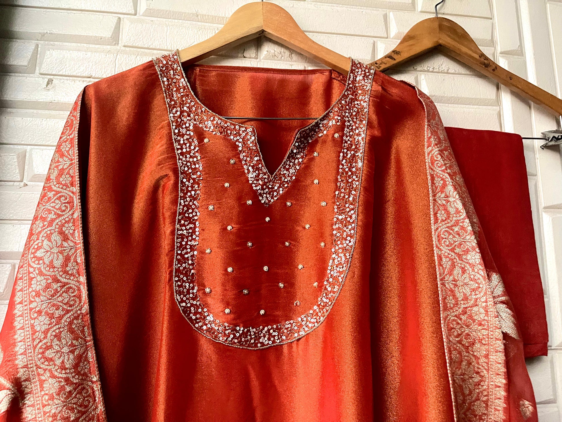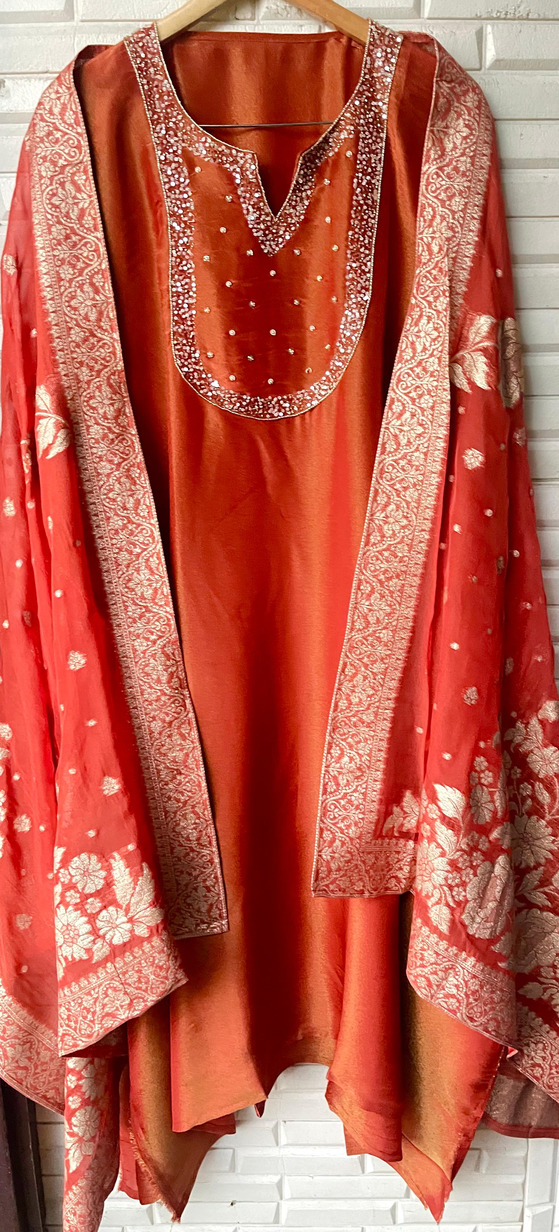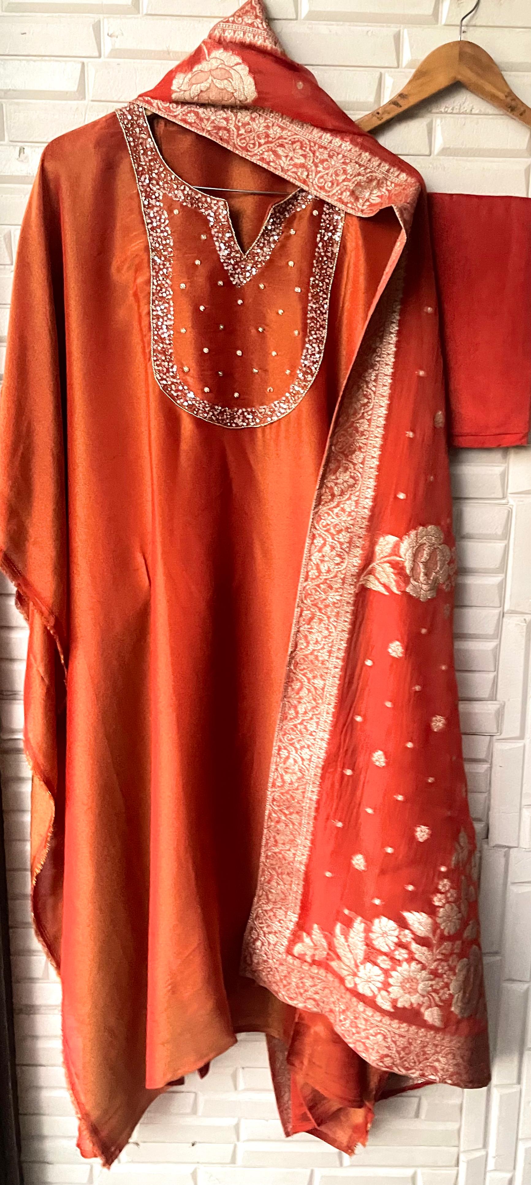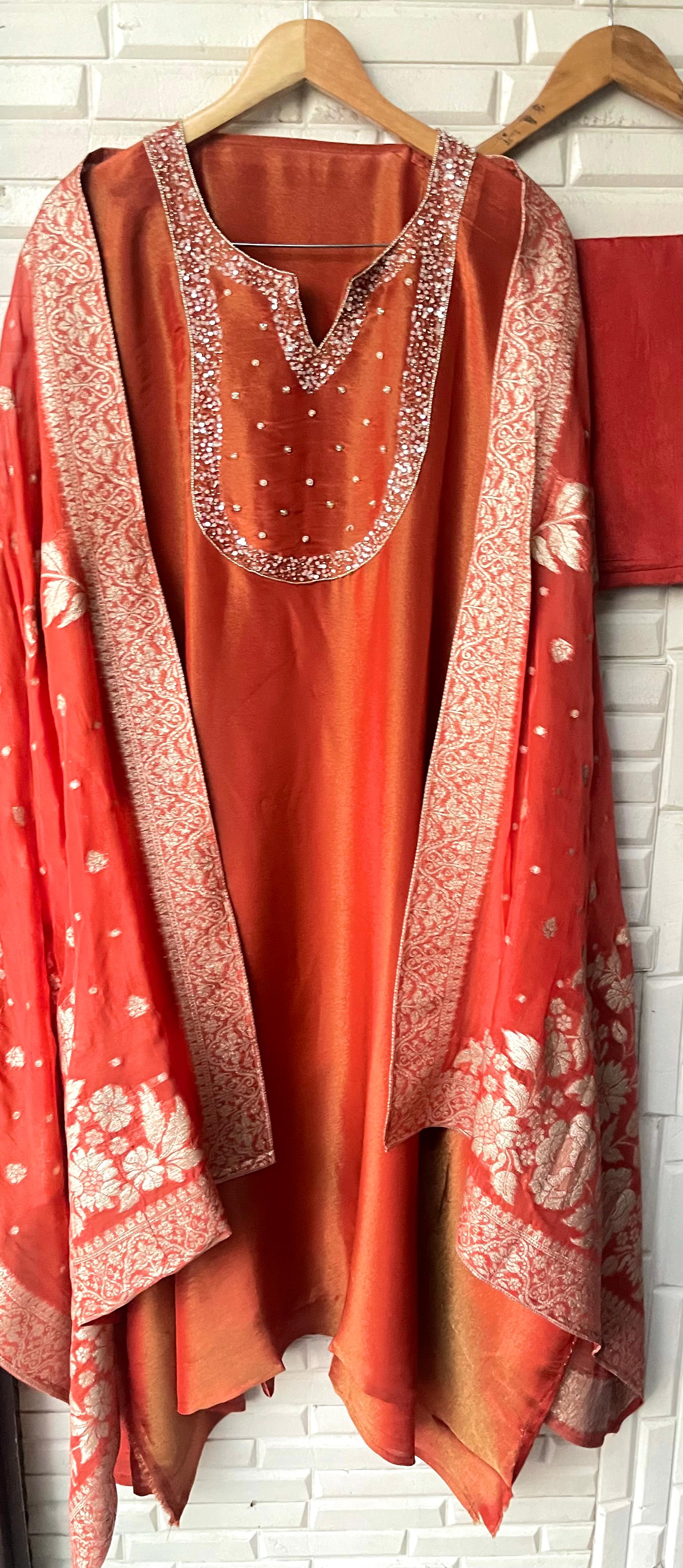 😊 soft shimmer silk fabric unstitched shirt with sequence kutdanna zari pearls embroidery