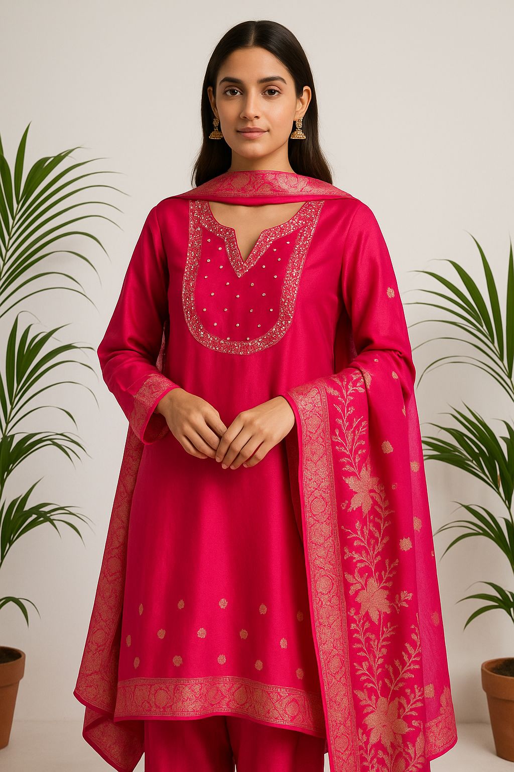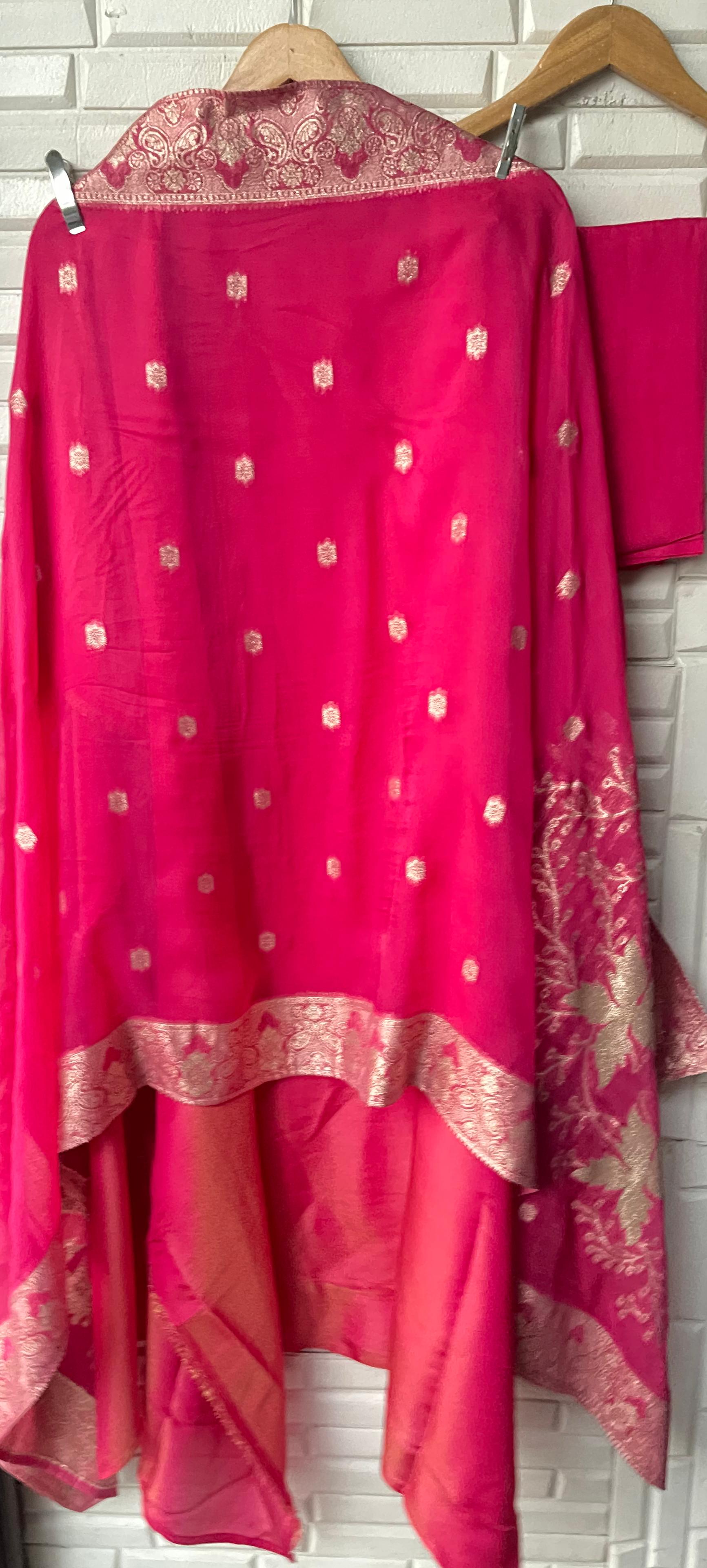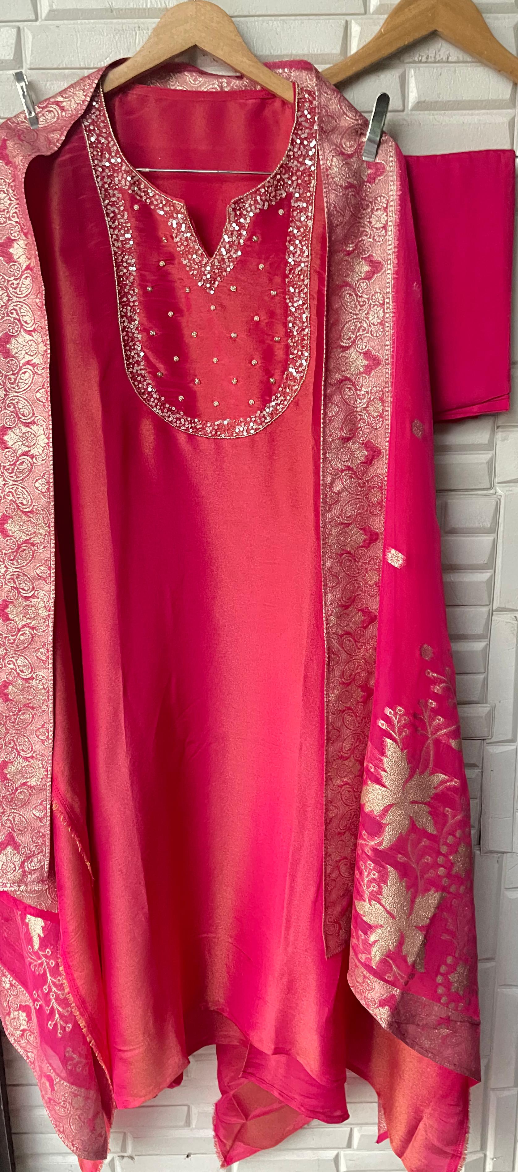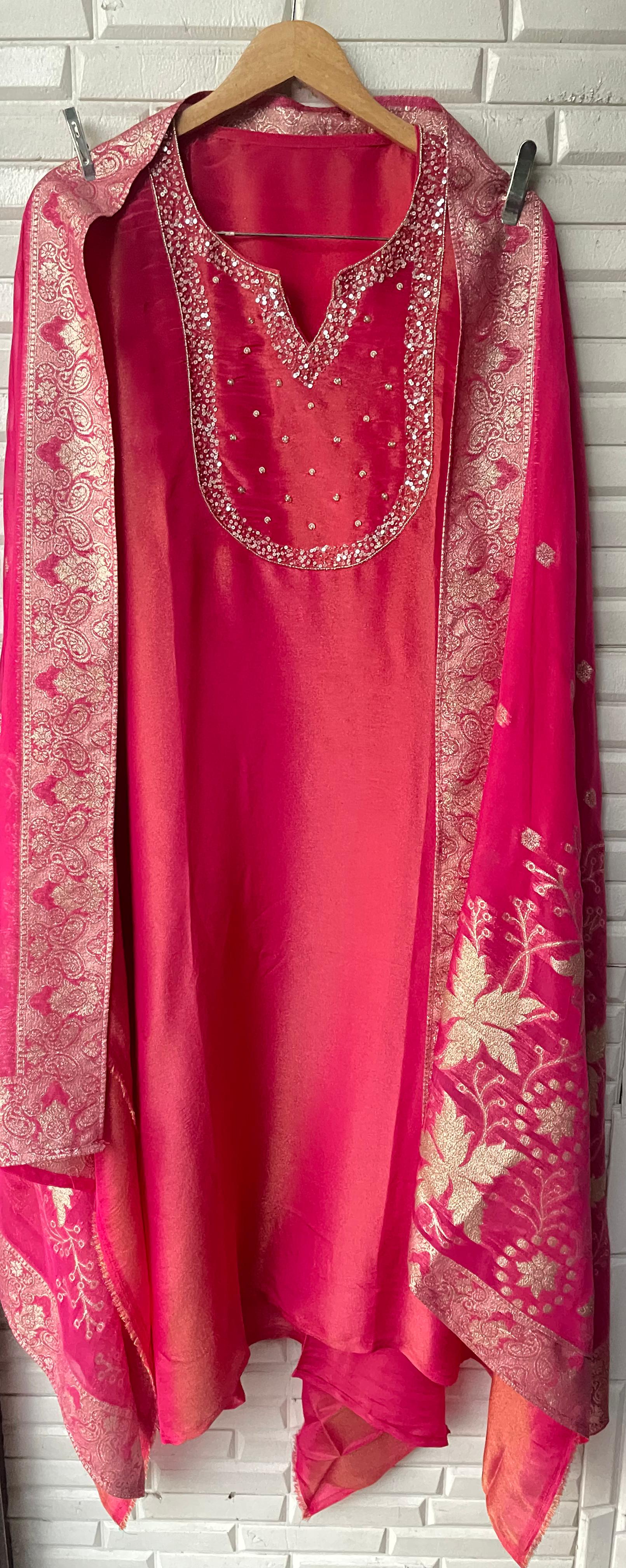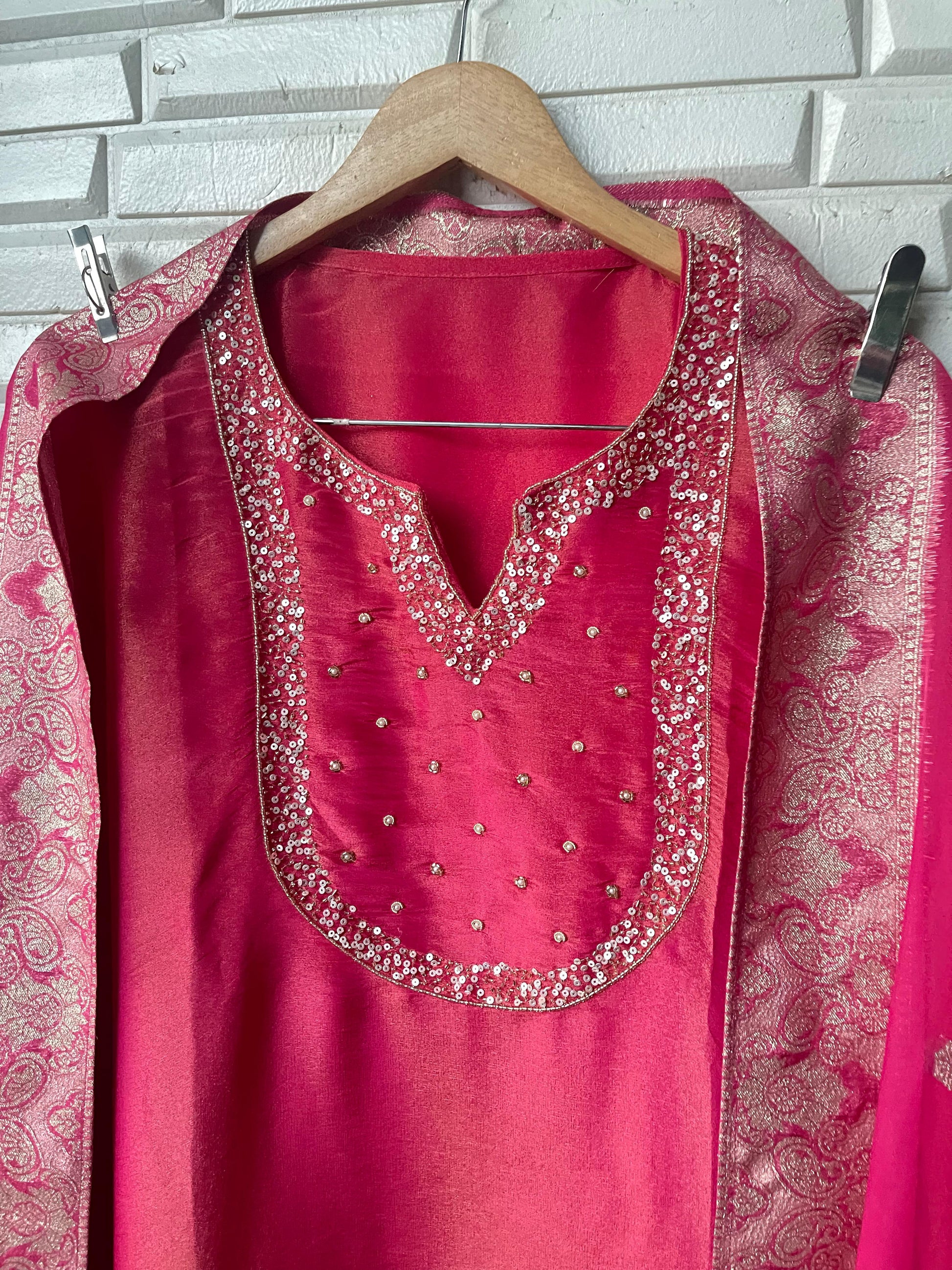 😊 soft shimmer silk fabric unstitched shirt with sequence kutdanna zari pearls embroidery