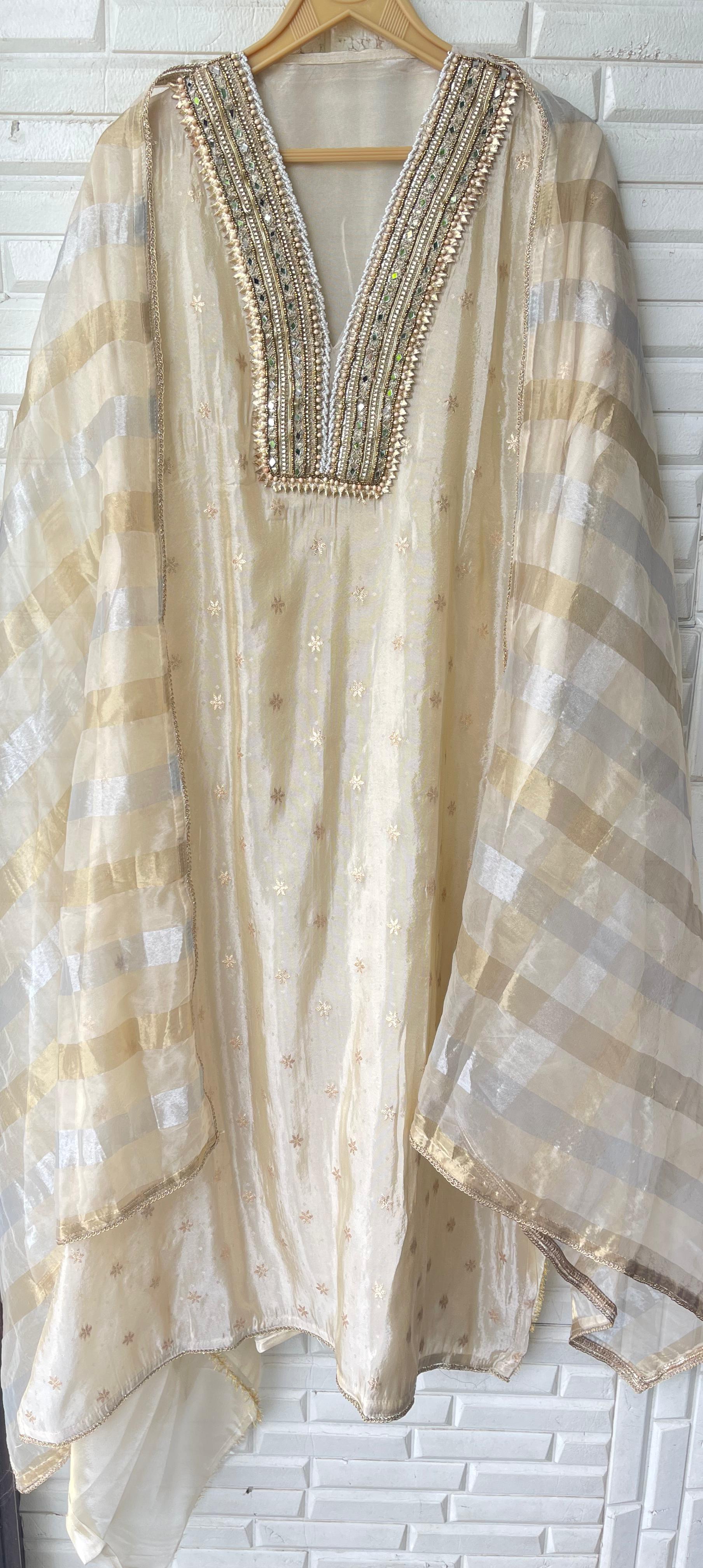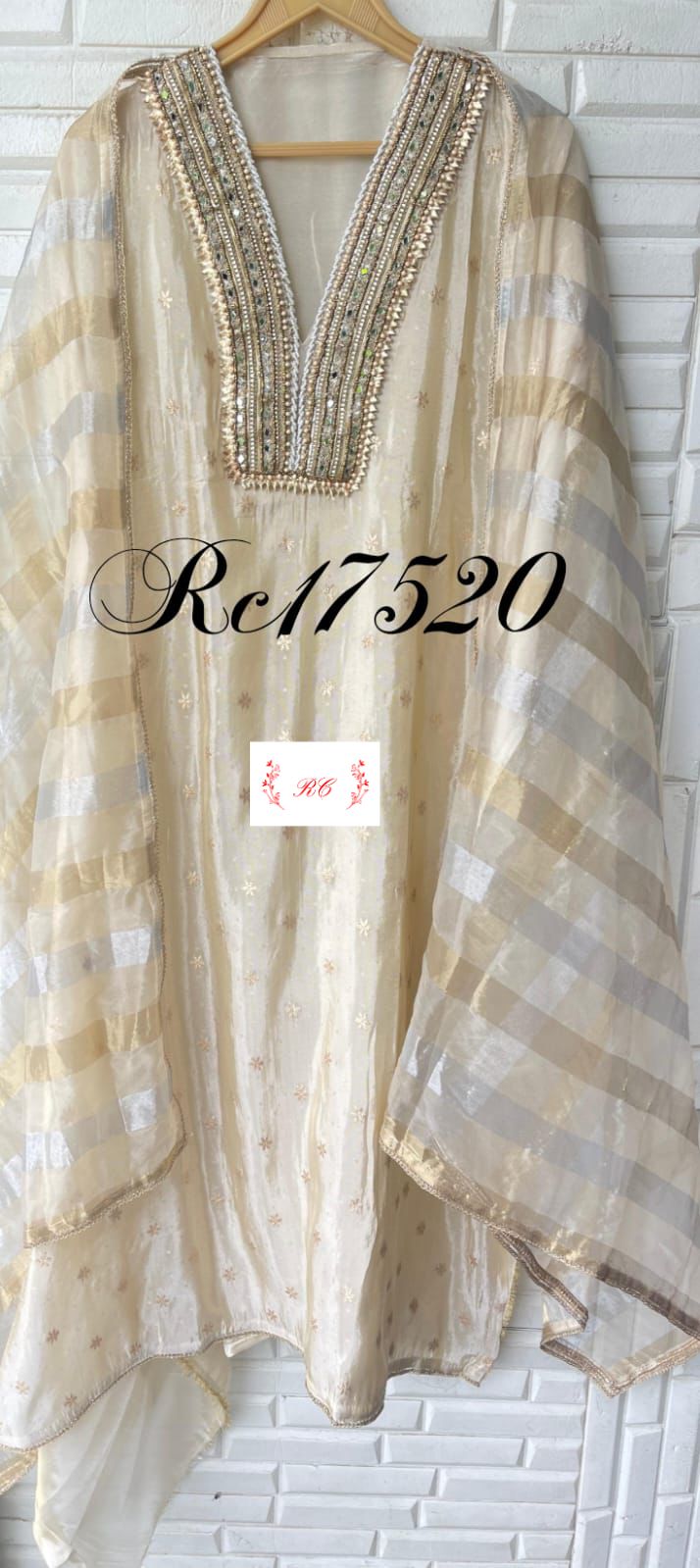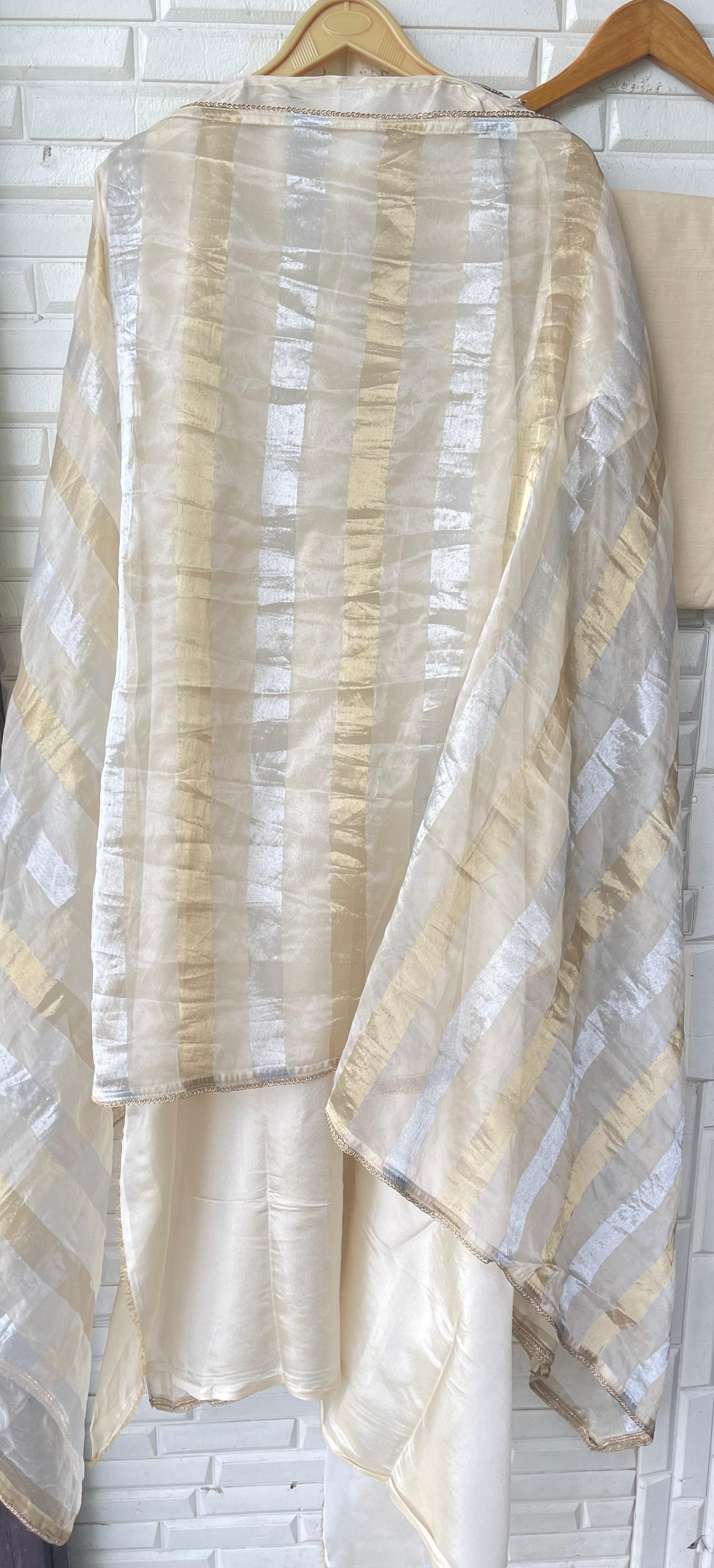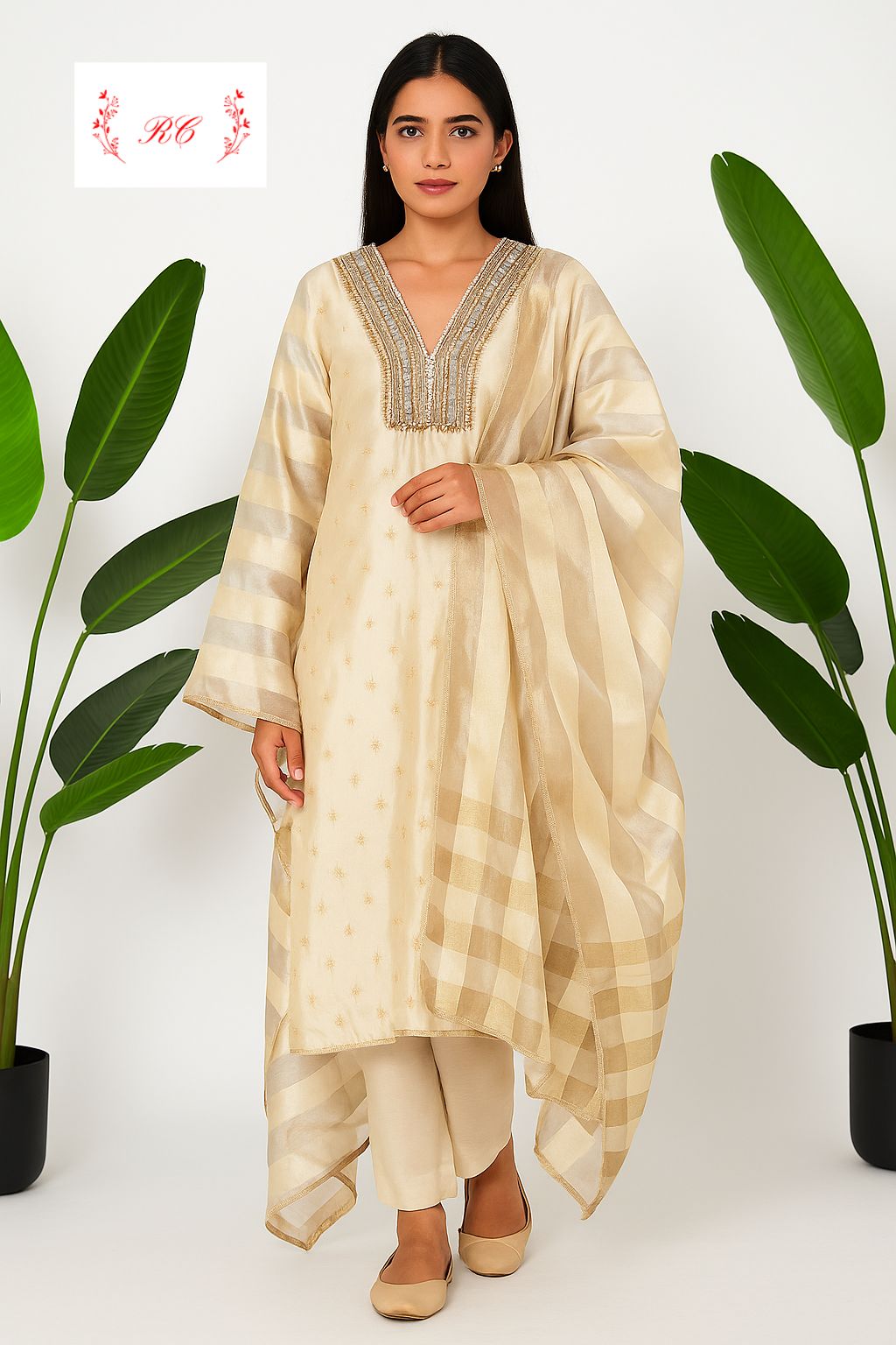 π banarasi shimmer silk fabric unstitched shirt with mirror sequence pearl zari neck lace