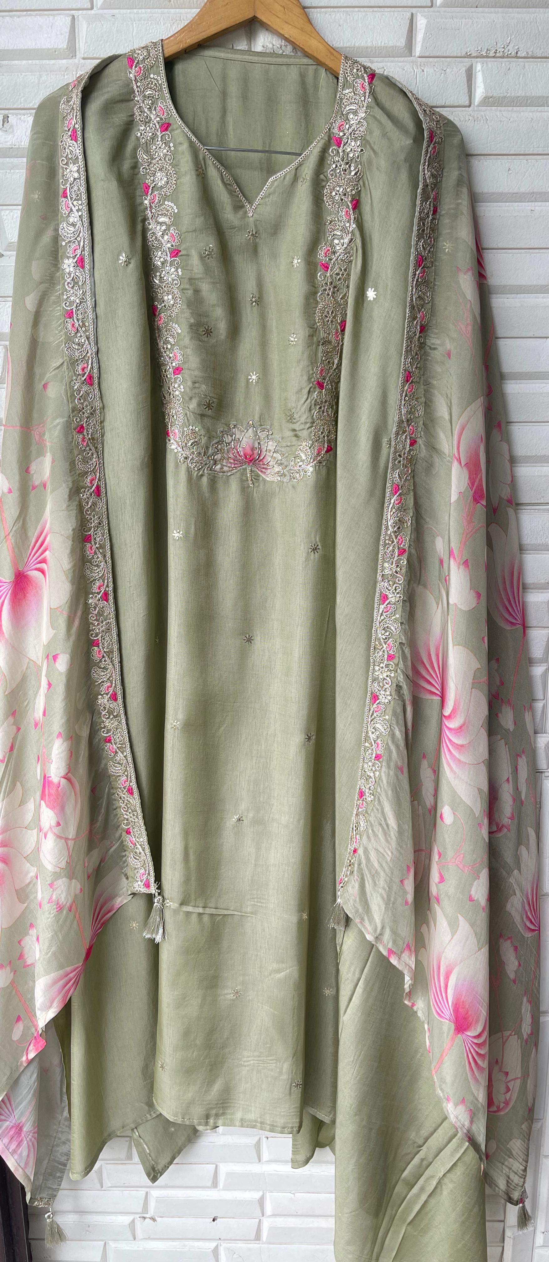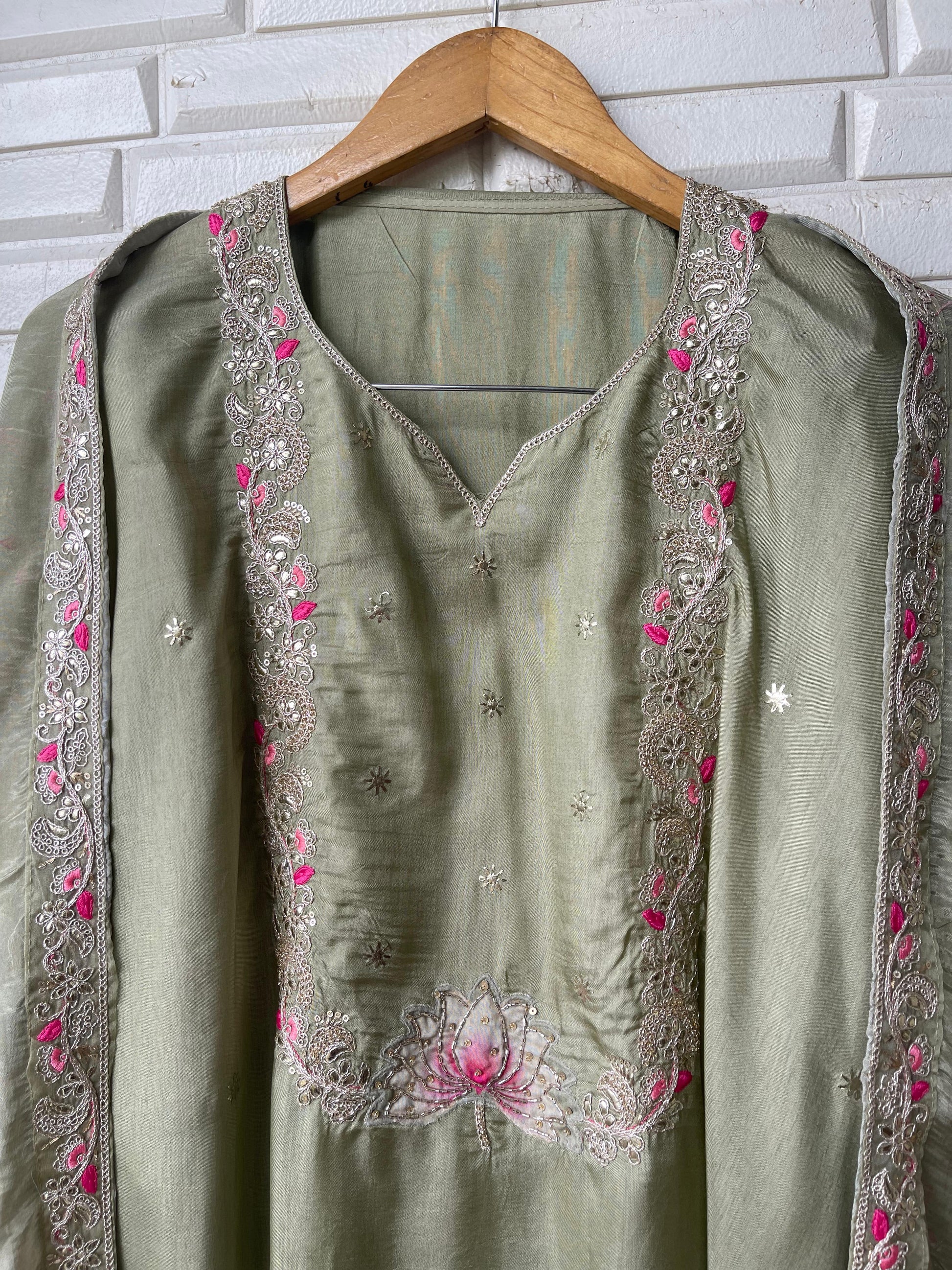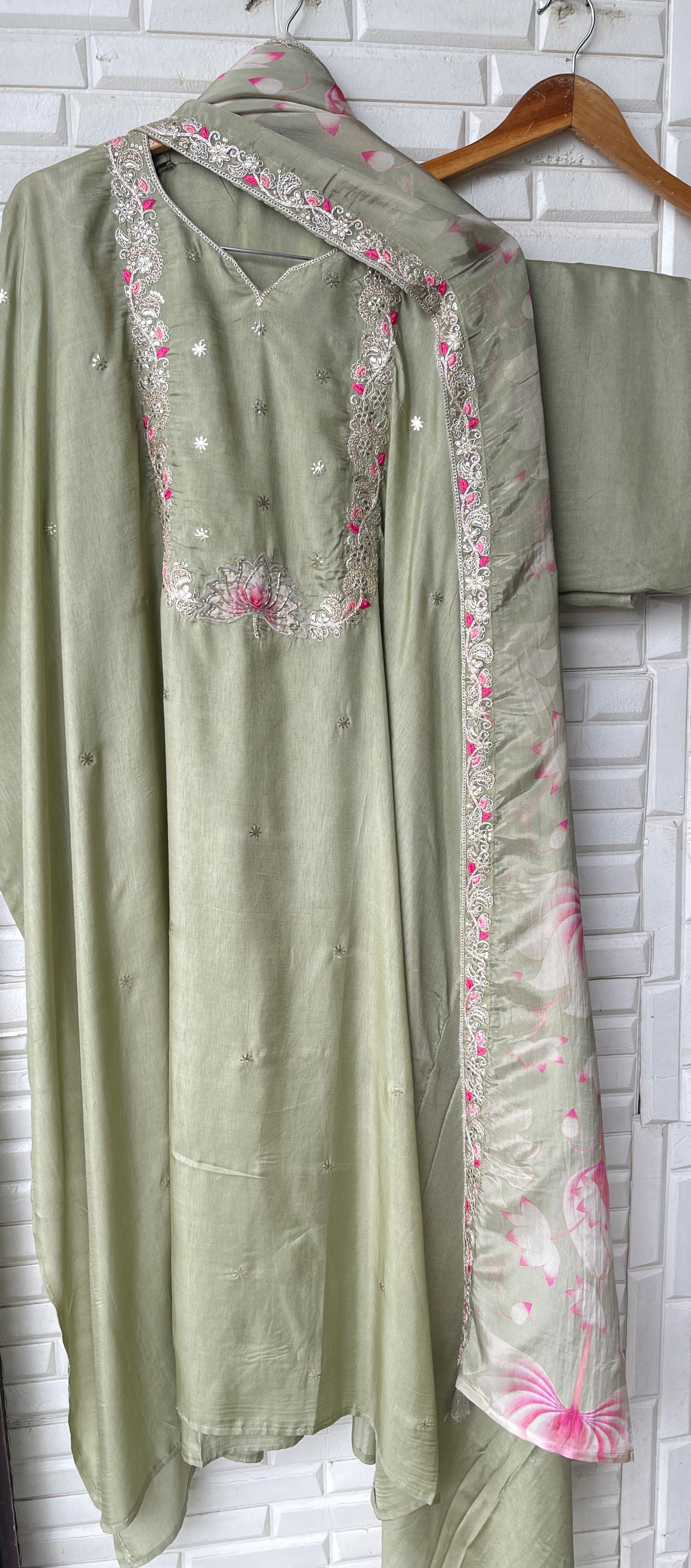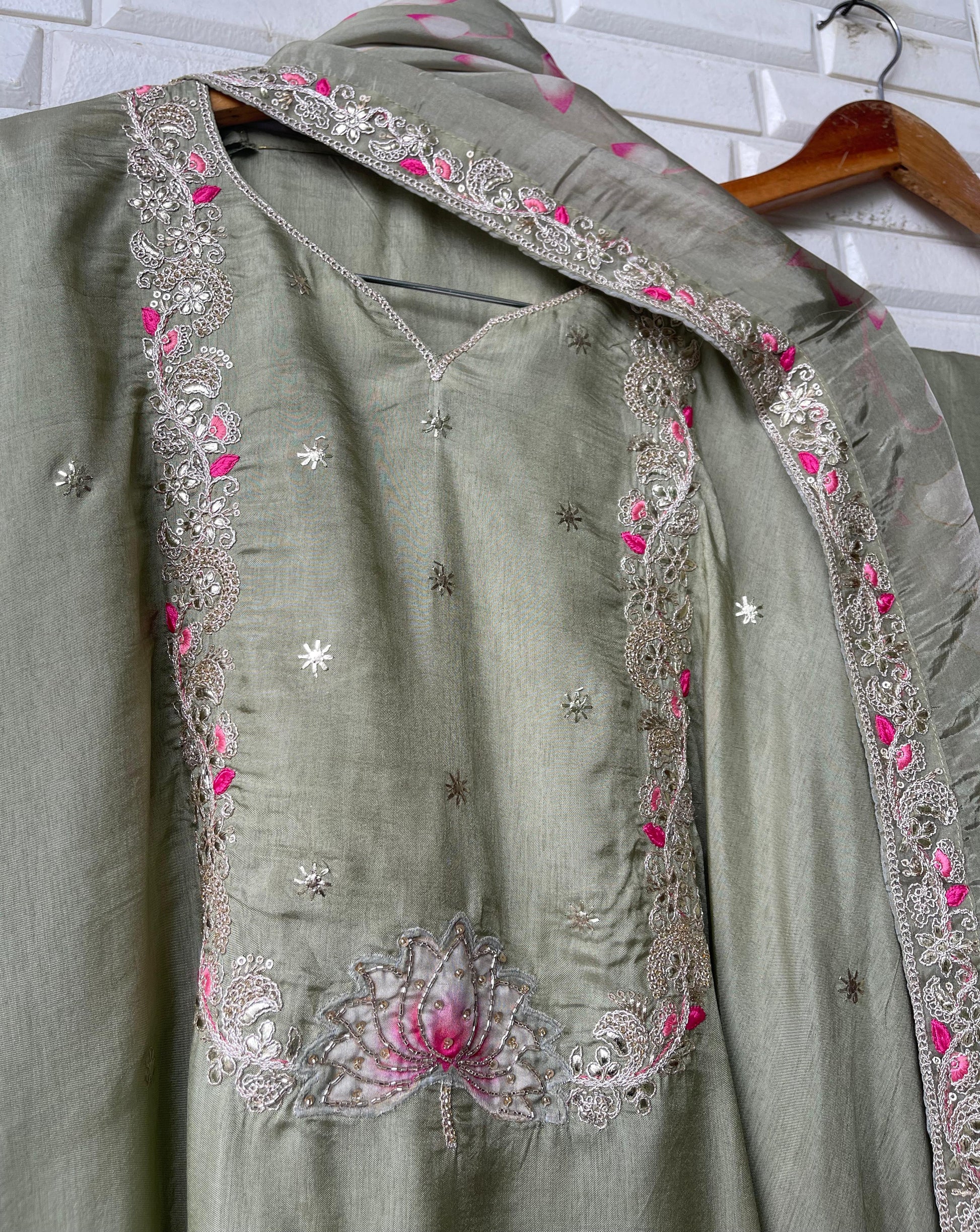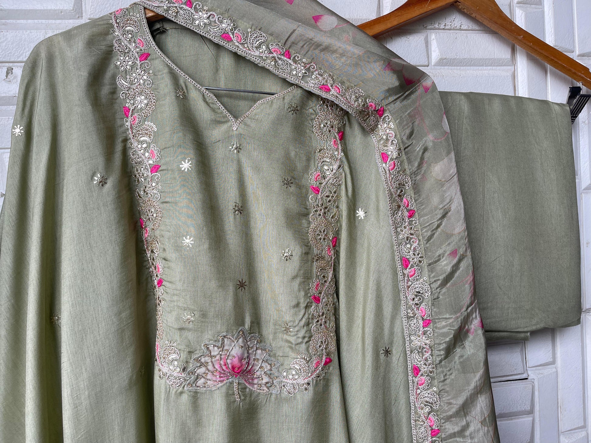 π pure shimmer silk fabric unstitched shirt with zari resham kutdanna sequence embroidery