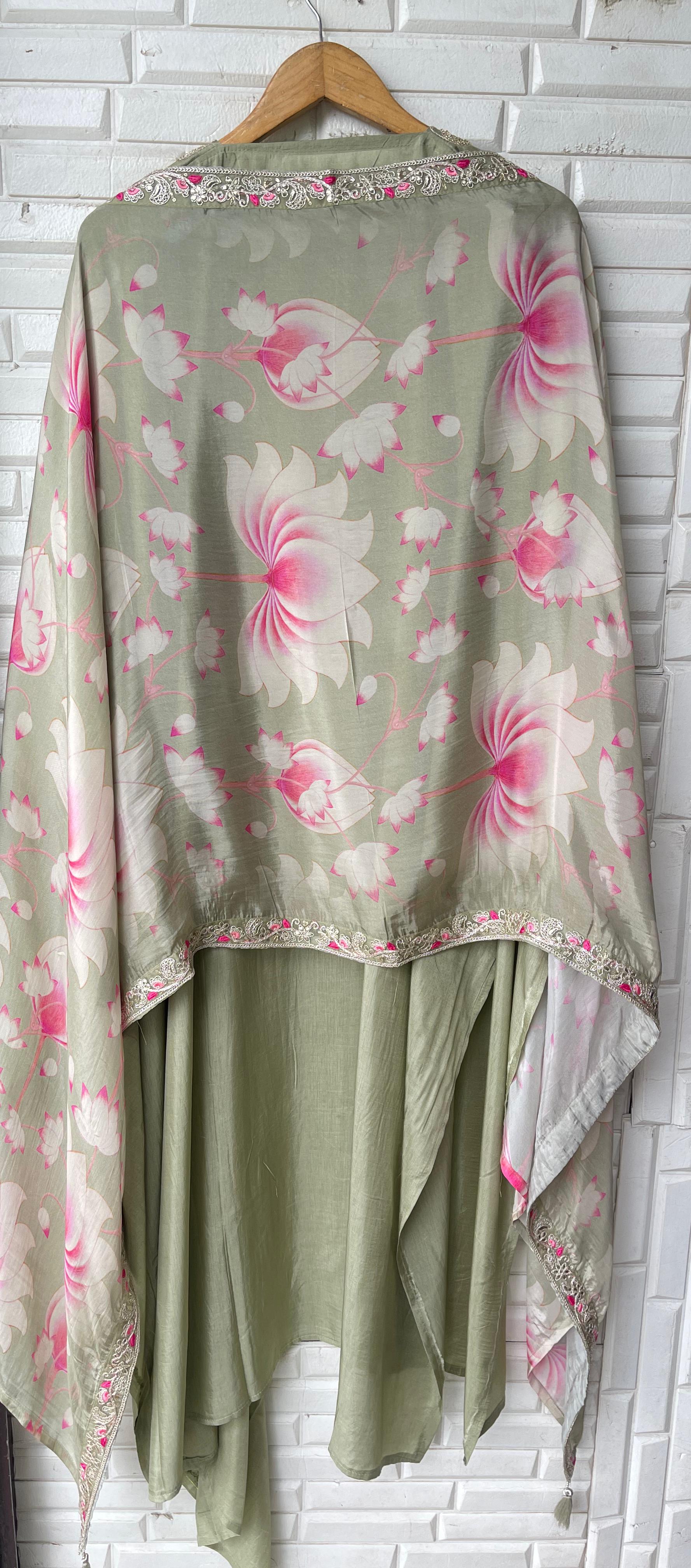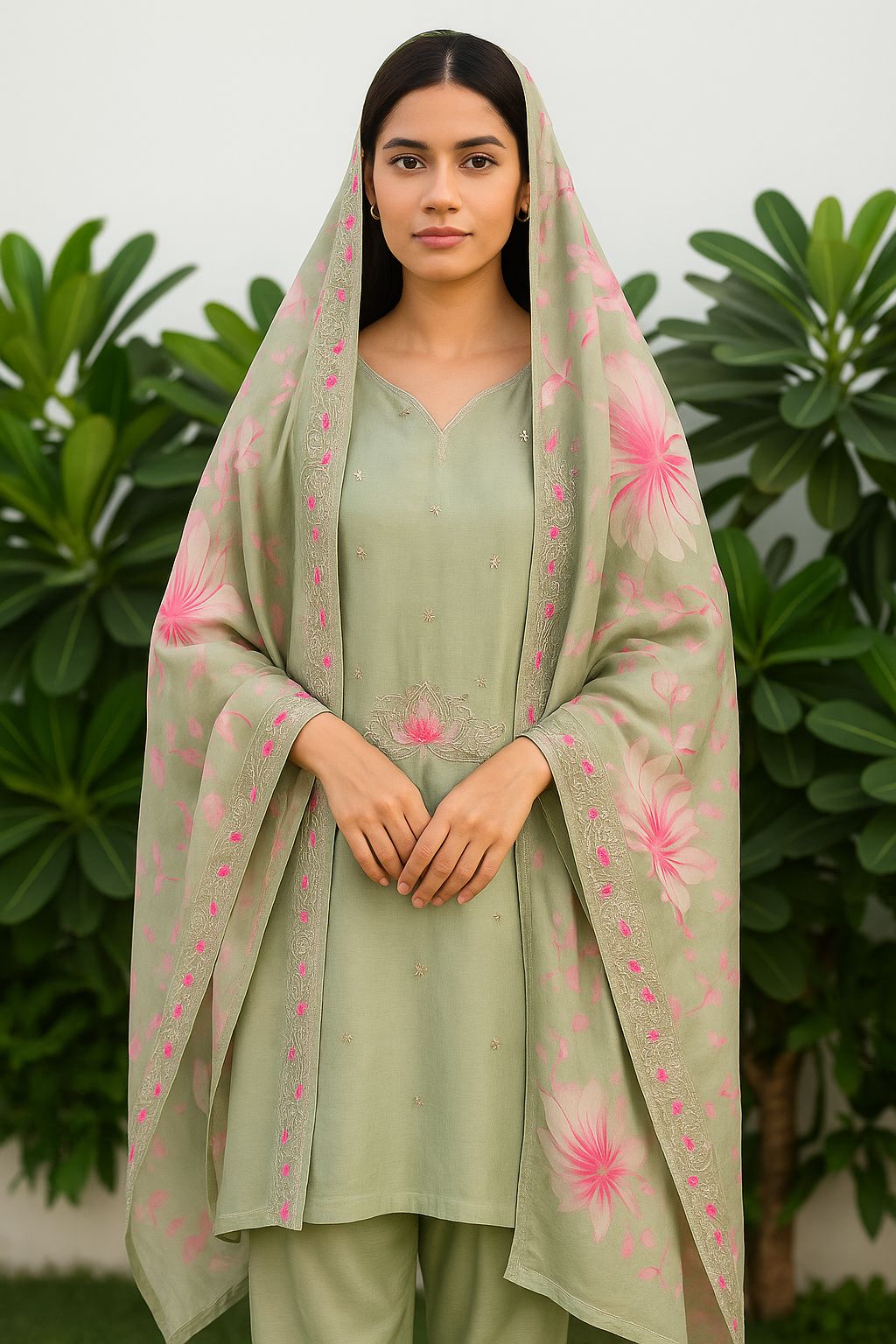 π pure satin silk fabric dupatta with zari sequence resham embroidery and latkans