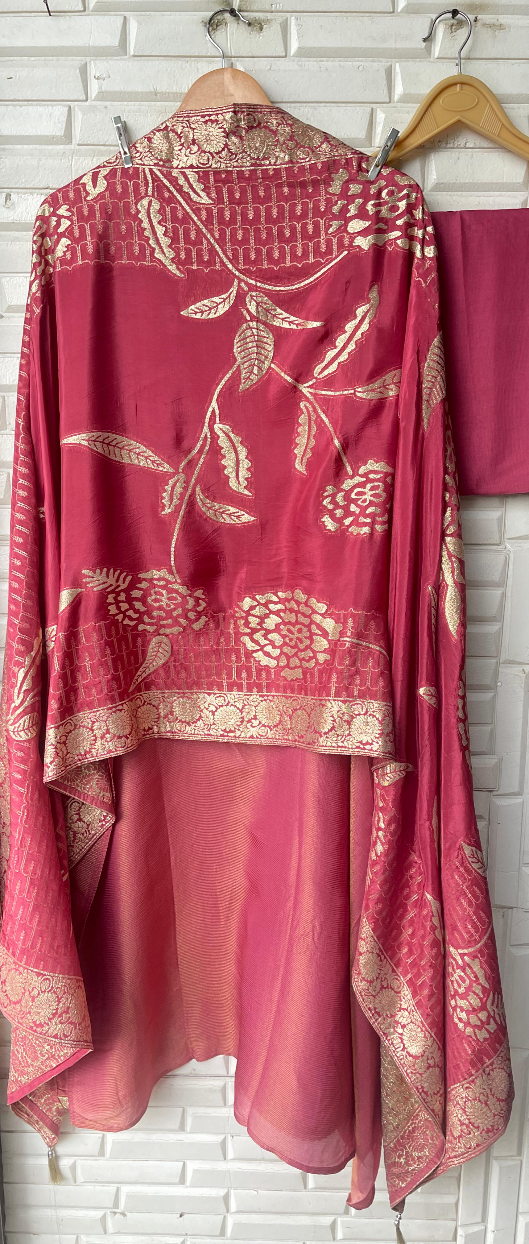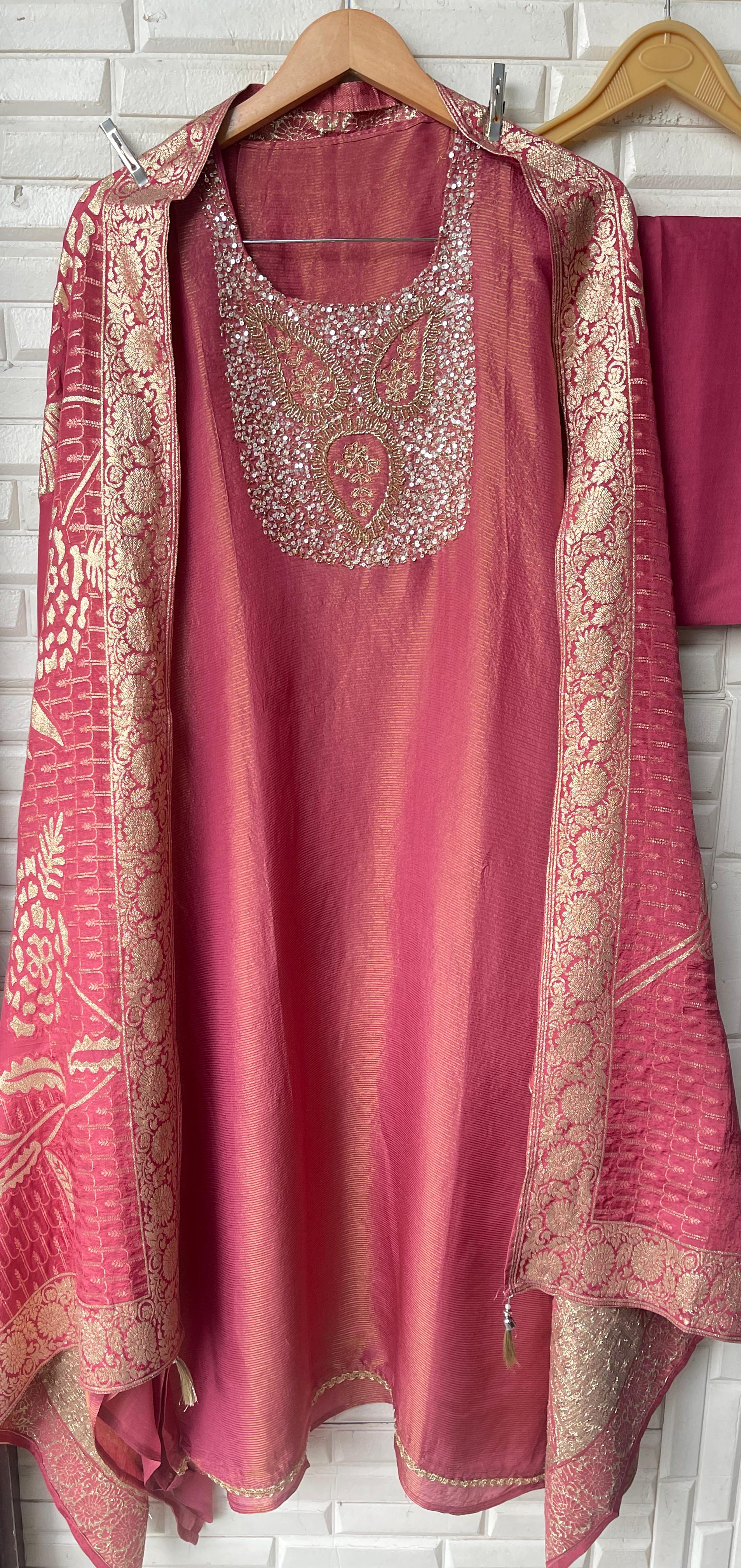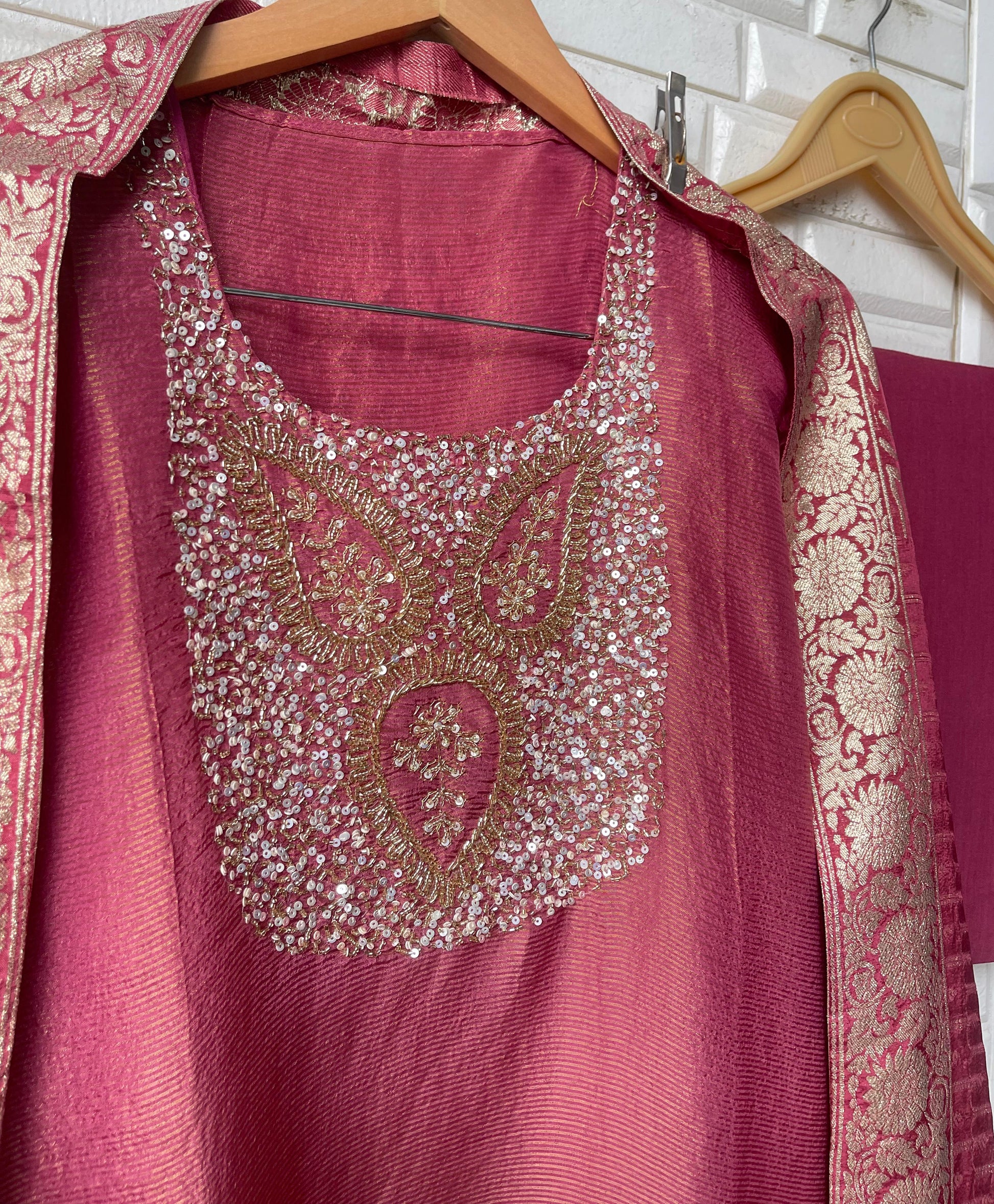 😊 shimmer silk fabric unstitched shirt with pearl resham sequence zari embroidery