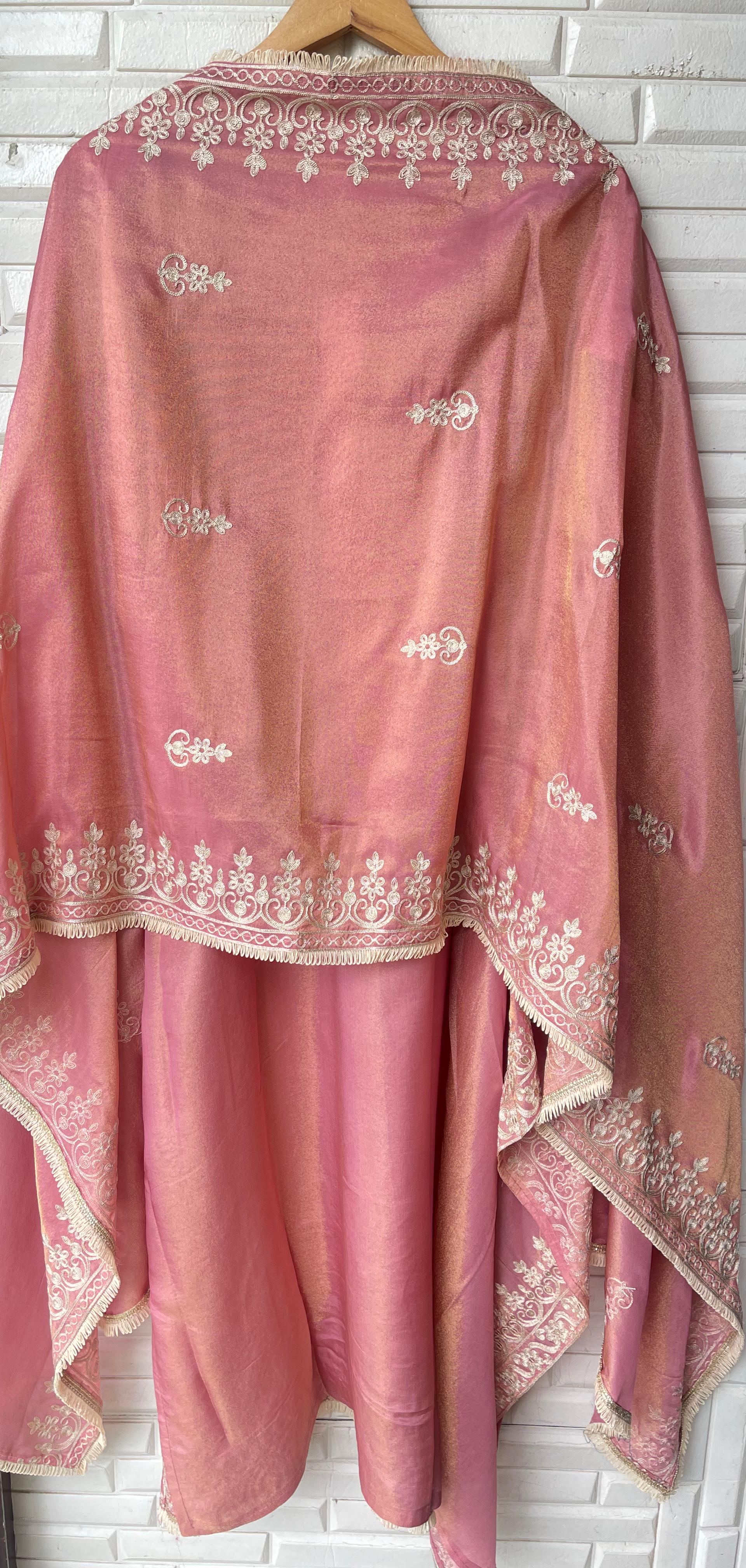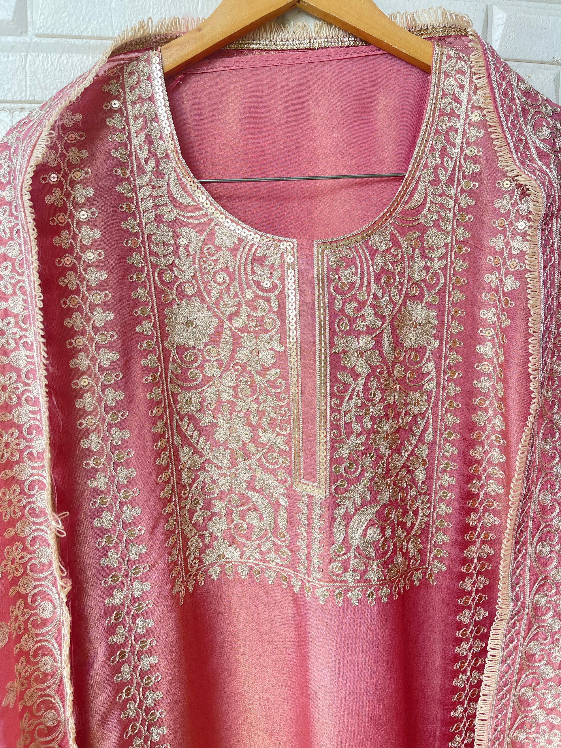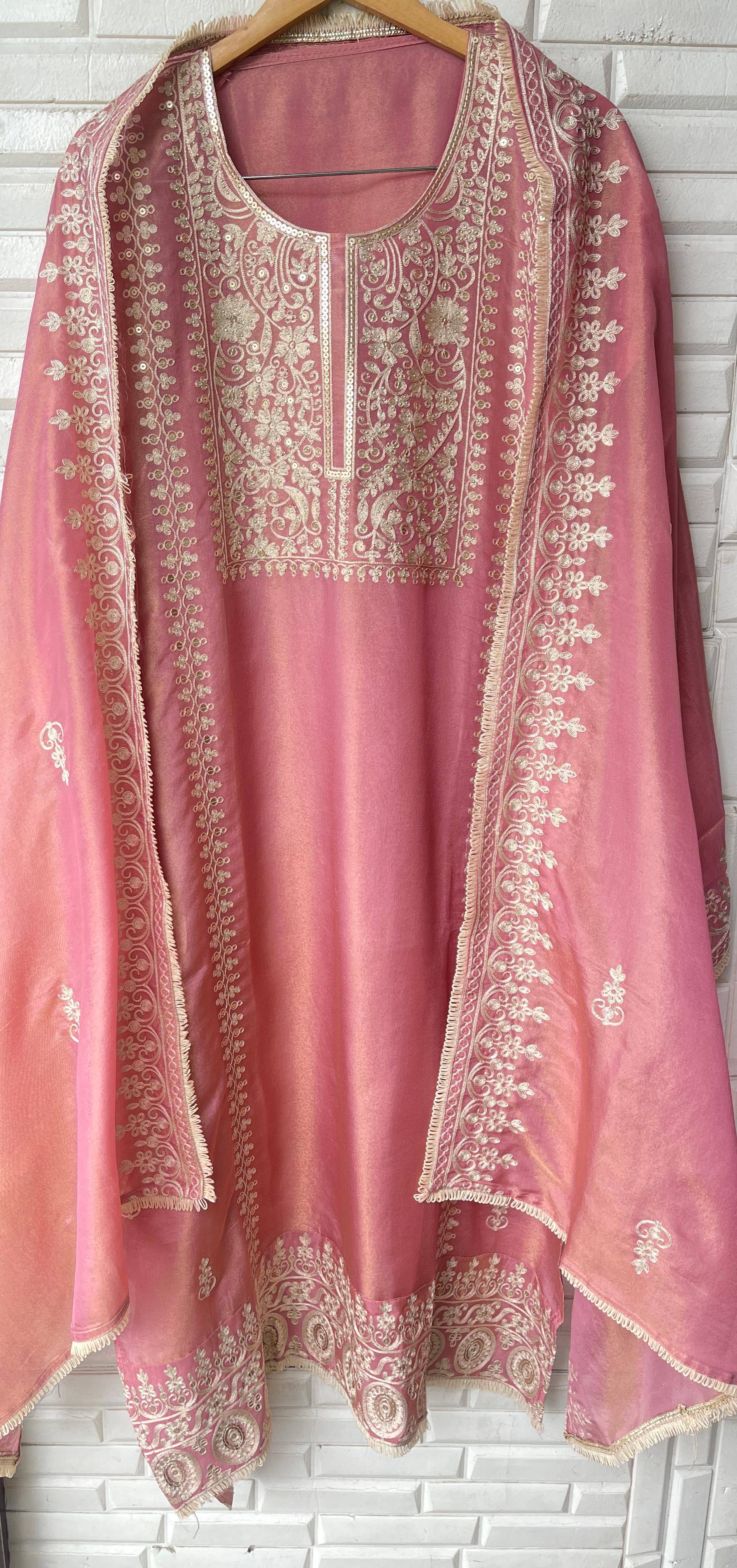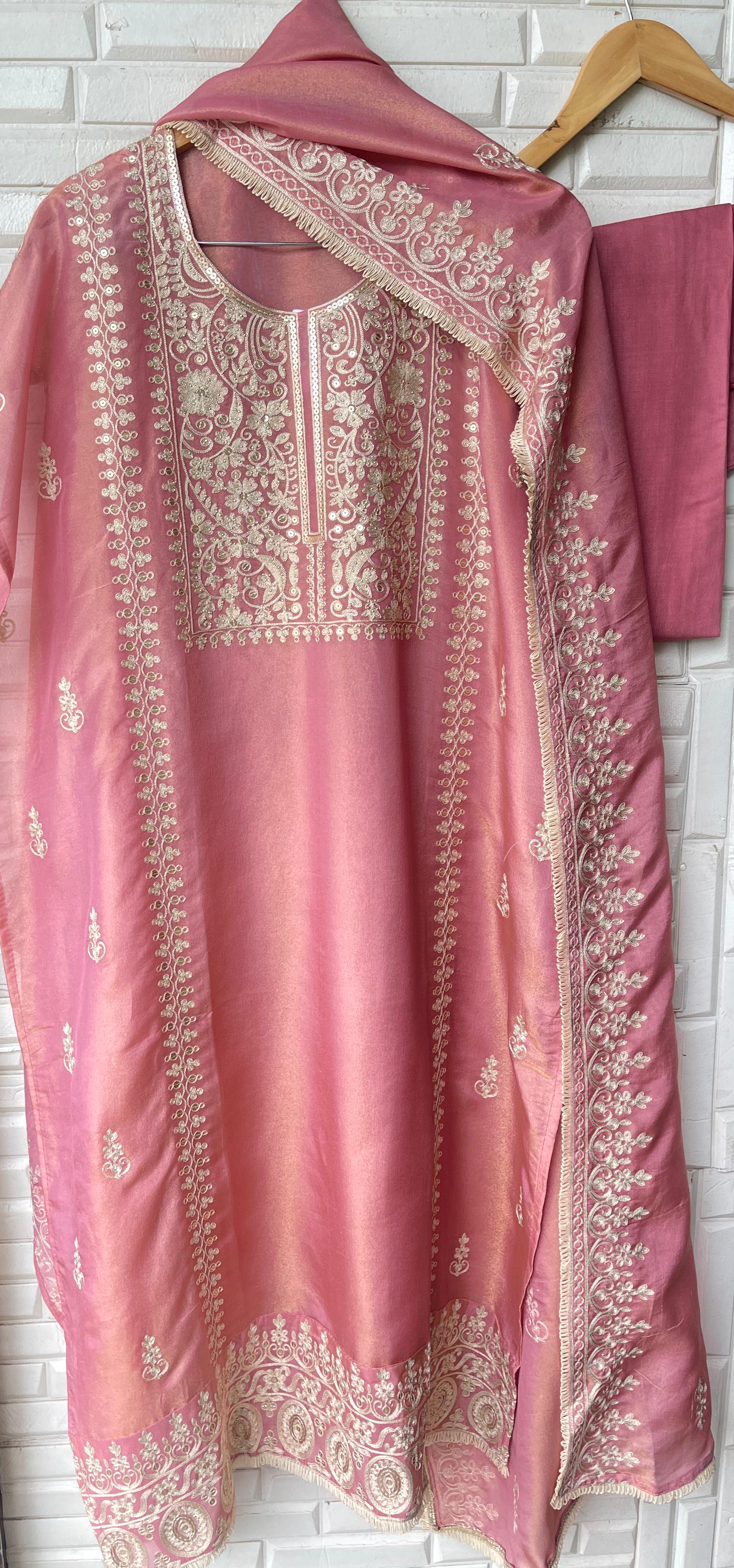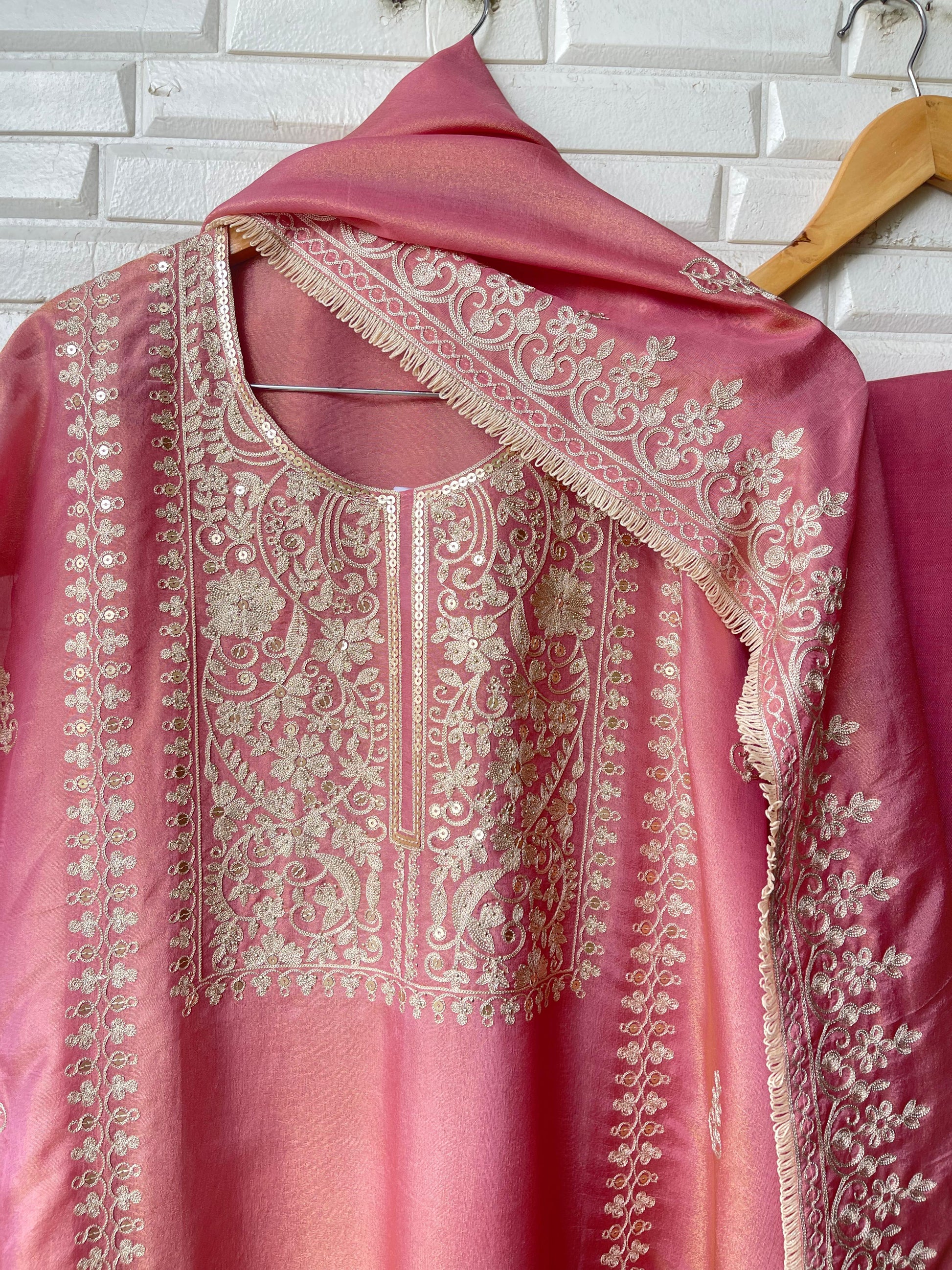 😊 shimmer silk fabric unstitched shirt with pearl sequence zari embroidery