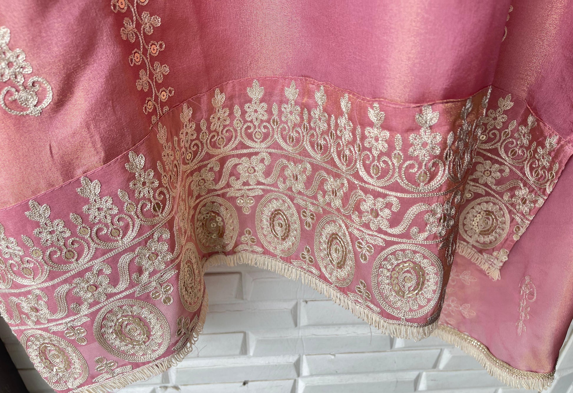😊 shimmer silk fabric dupatta with zari embroidery and tassel border lace