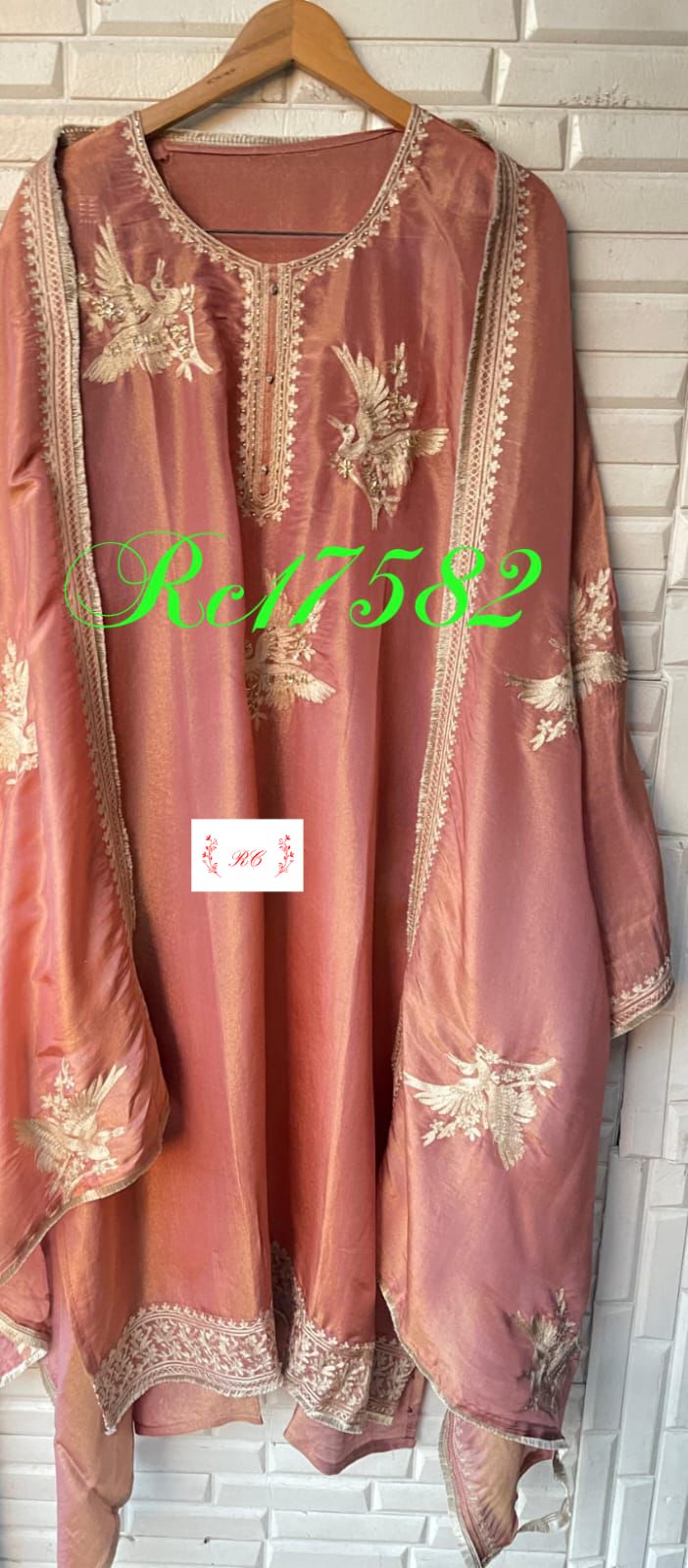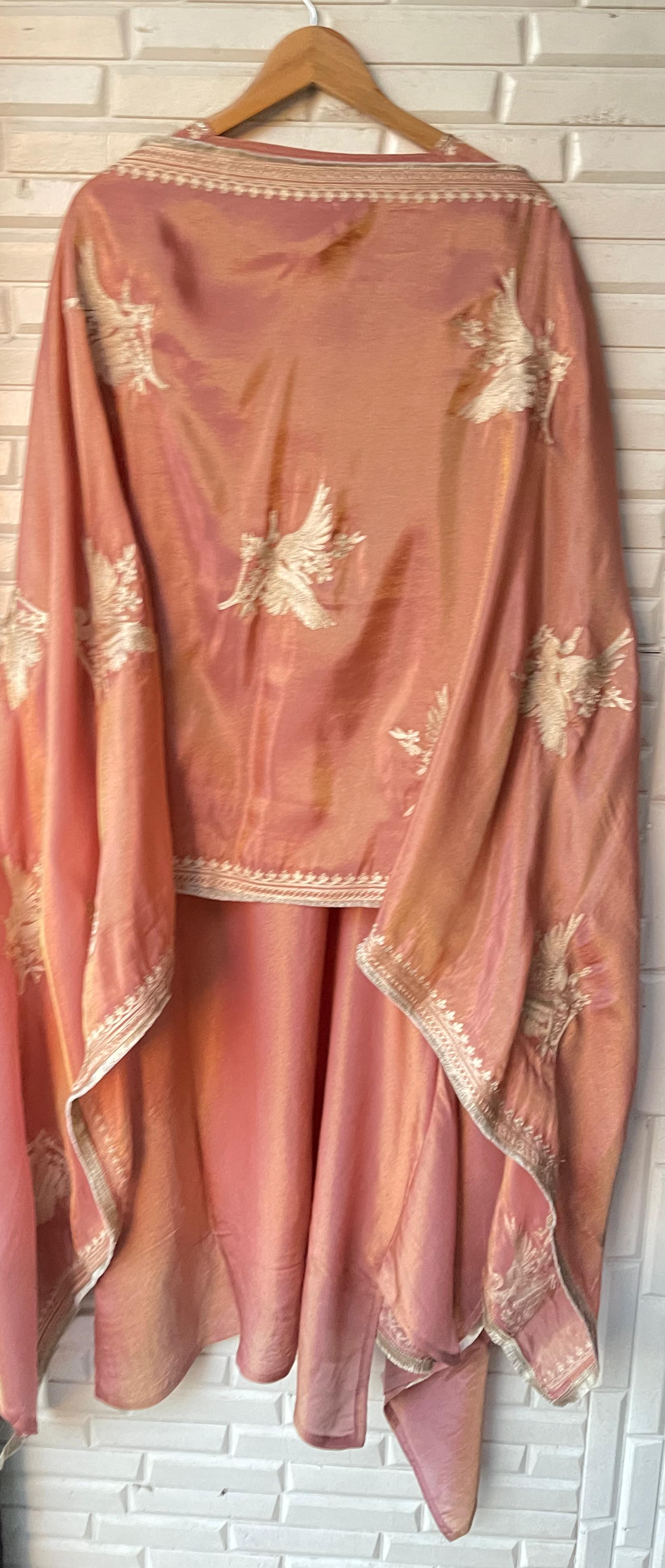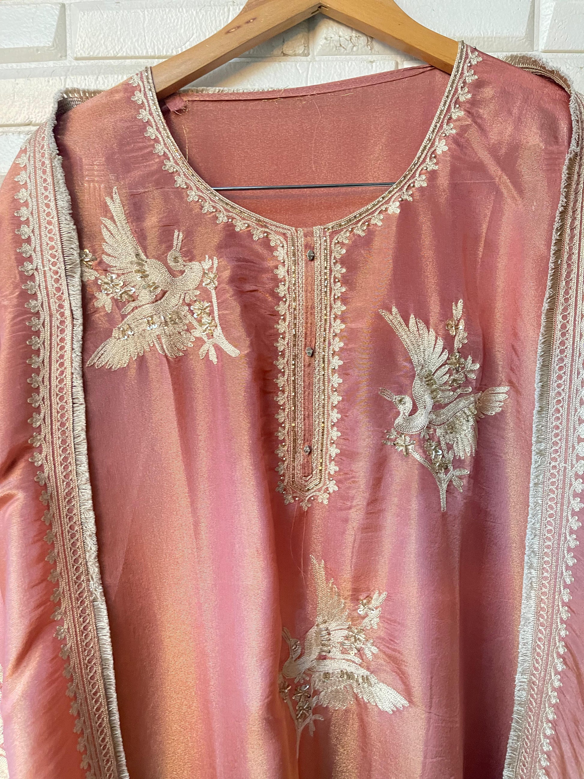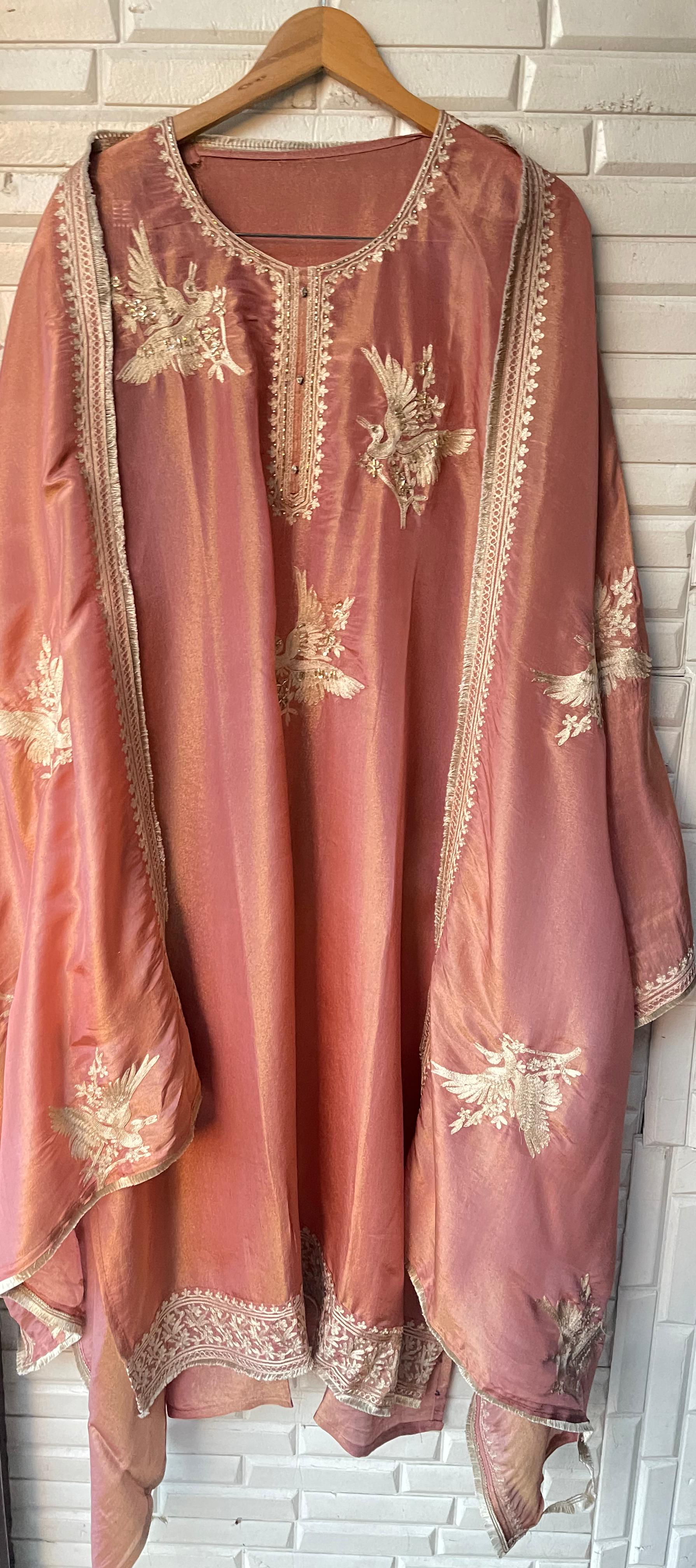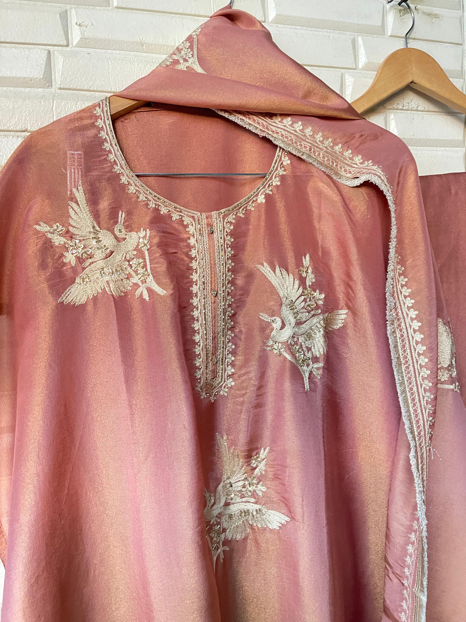 😊 shimmer silk fabric unstitched shirt with pearl dabka sequence zari embroidery