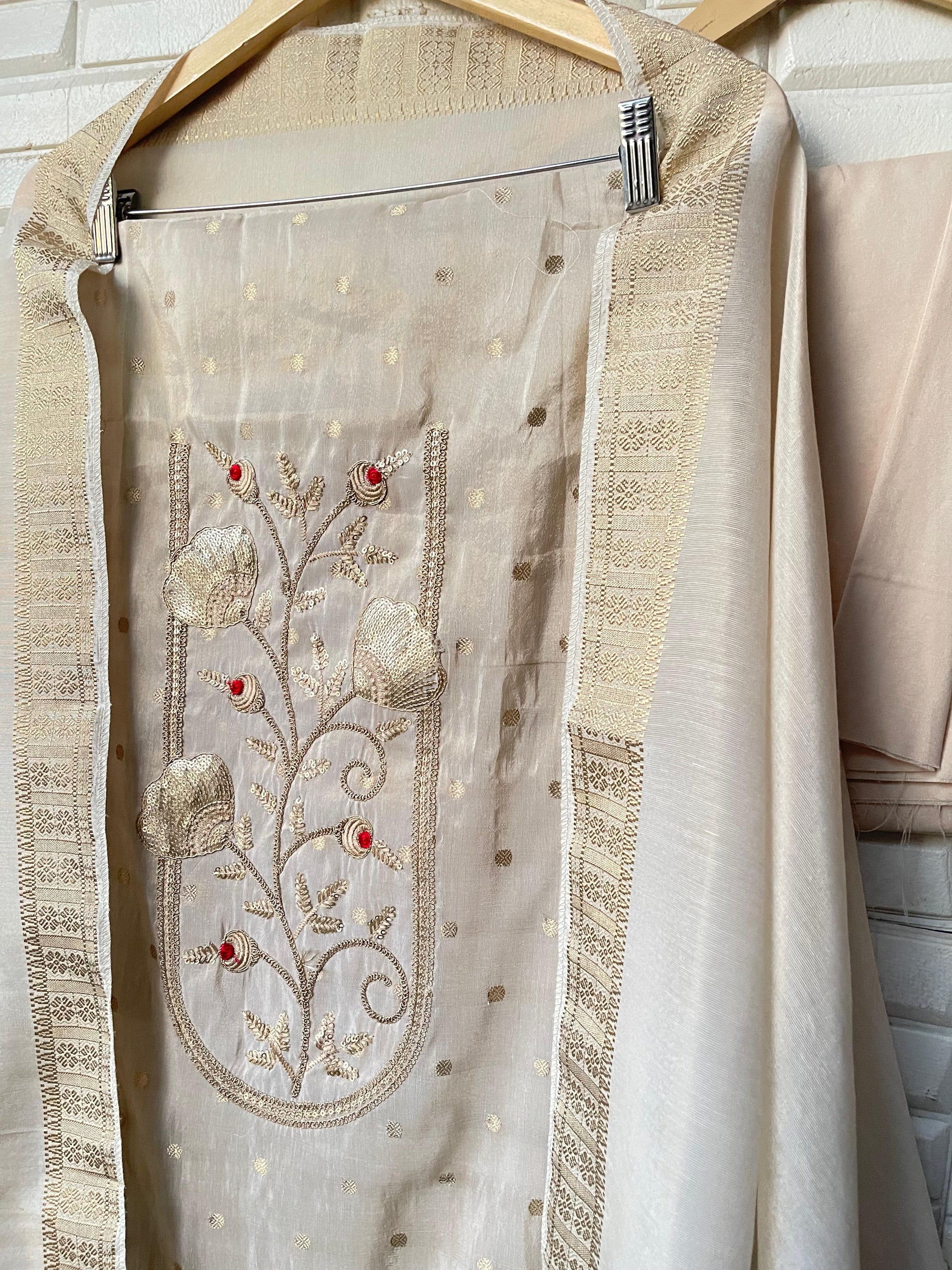 😊 banarasi shimmer silk fabric dupatta with the same embroidery as shirt