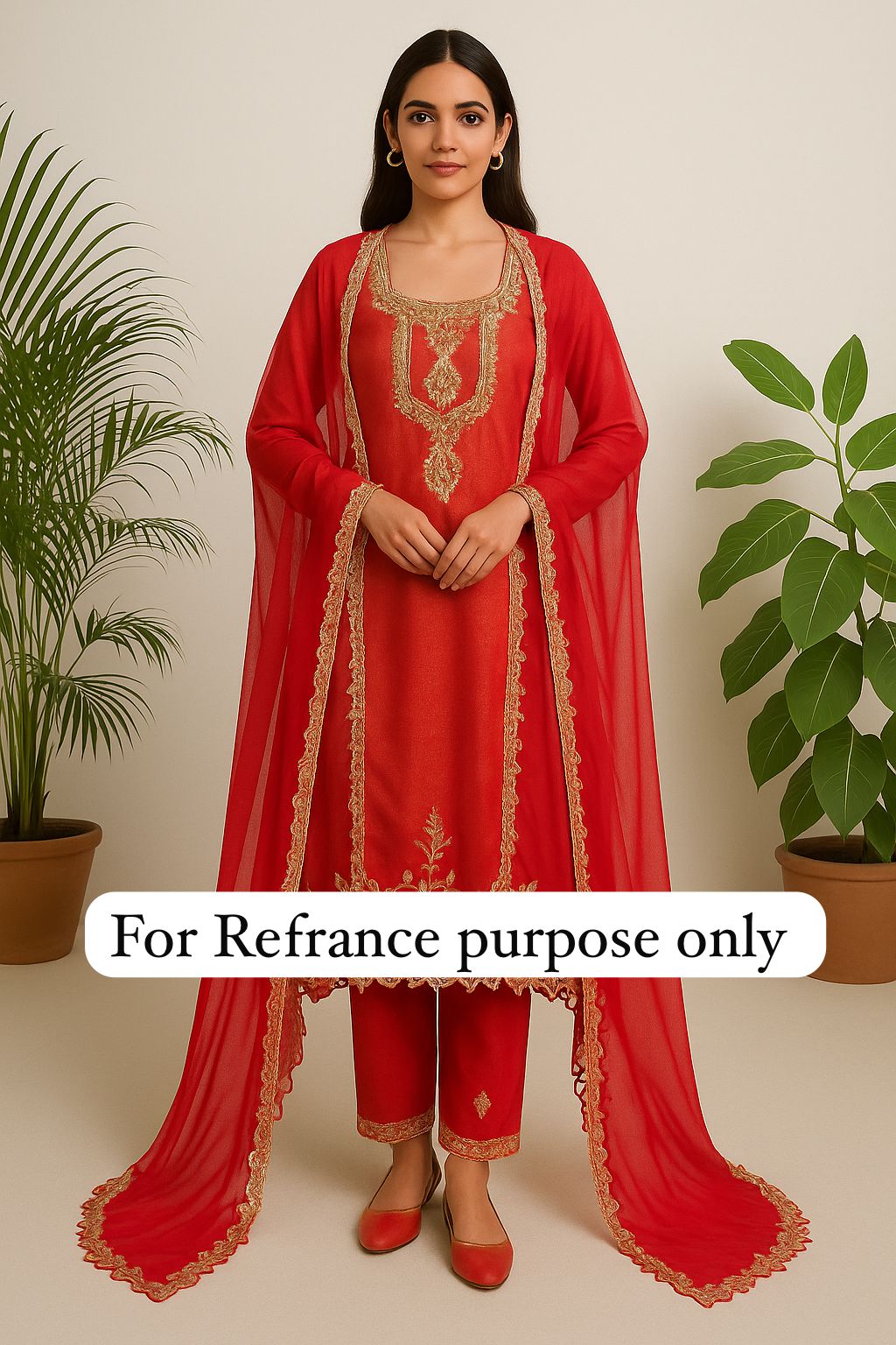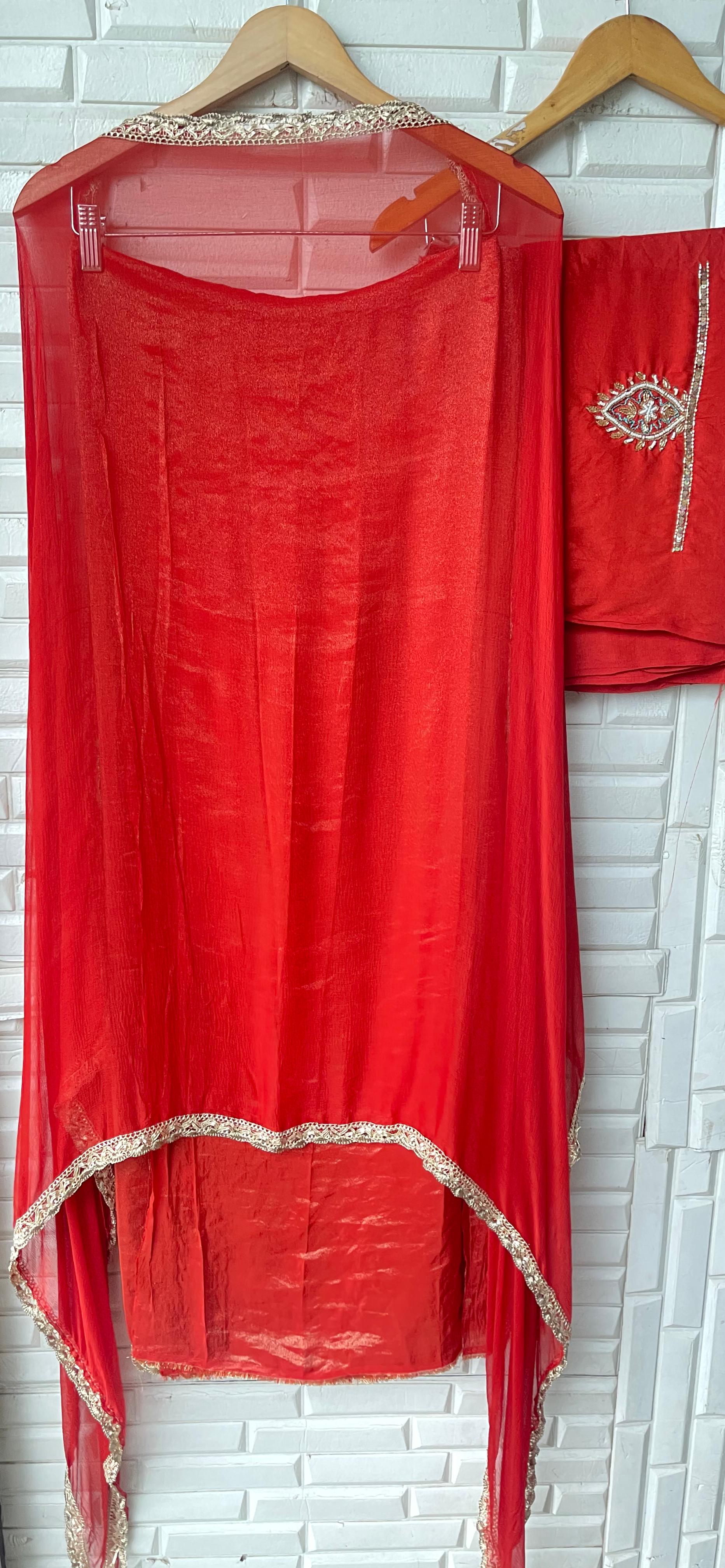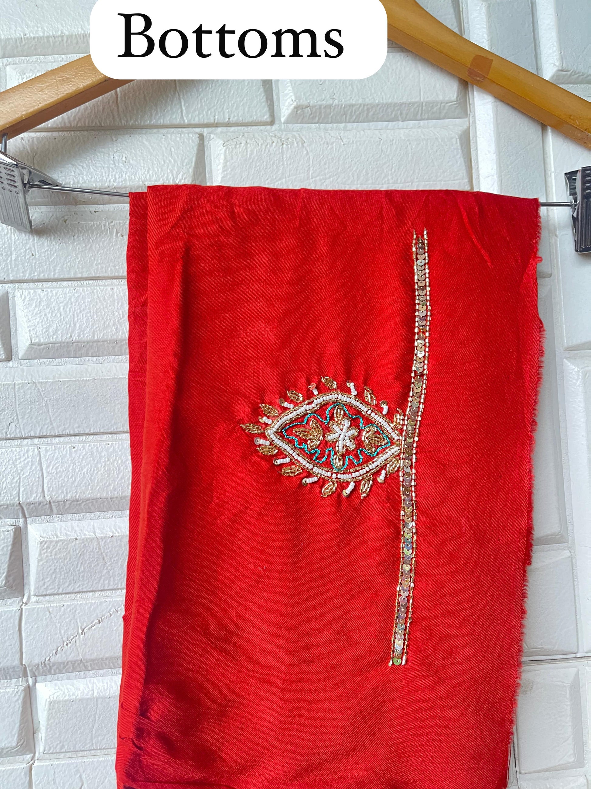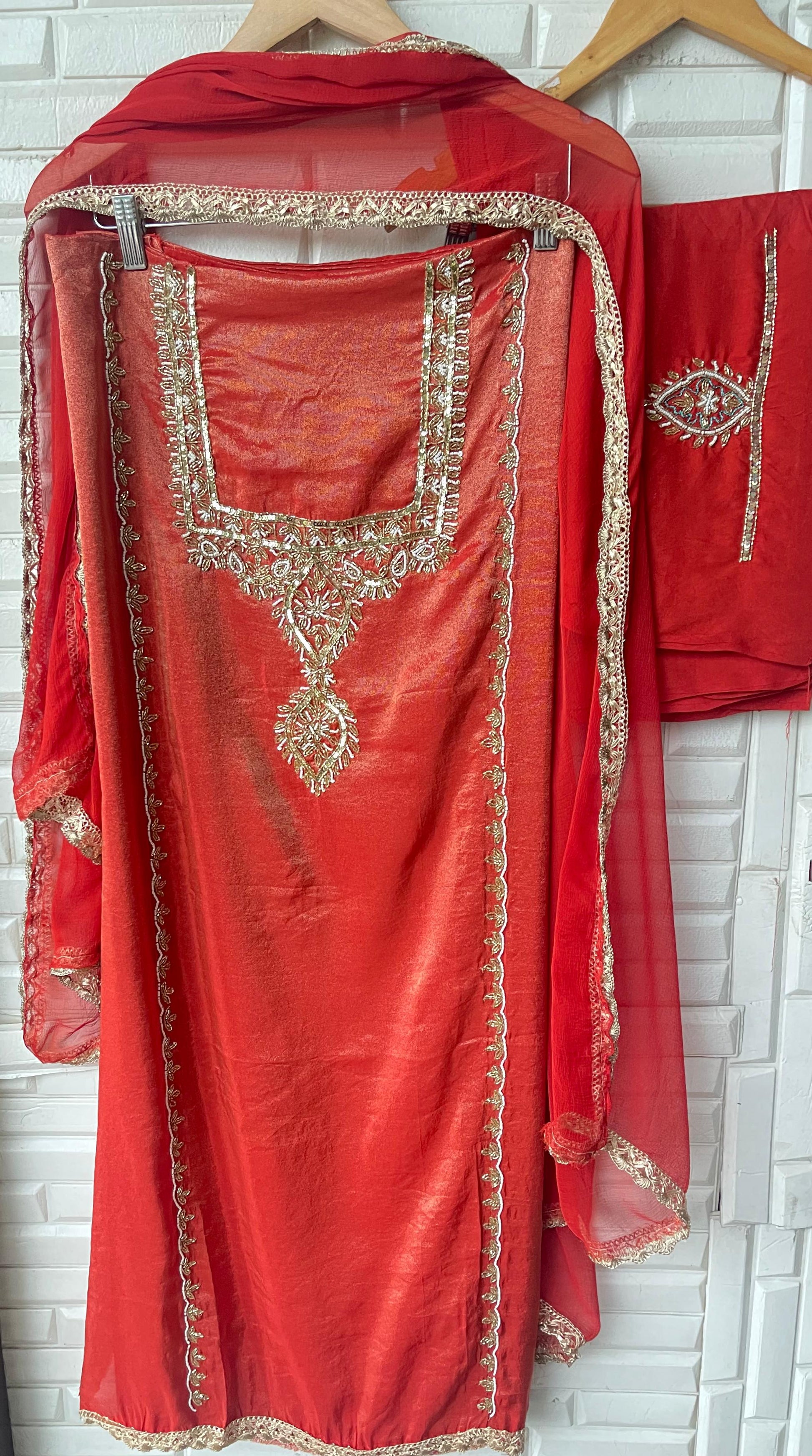 😊 soft n flowy shimmer silk fabric unstitched shirt with zari sequence kutdanna pearl hand embroidery and kingri lace