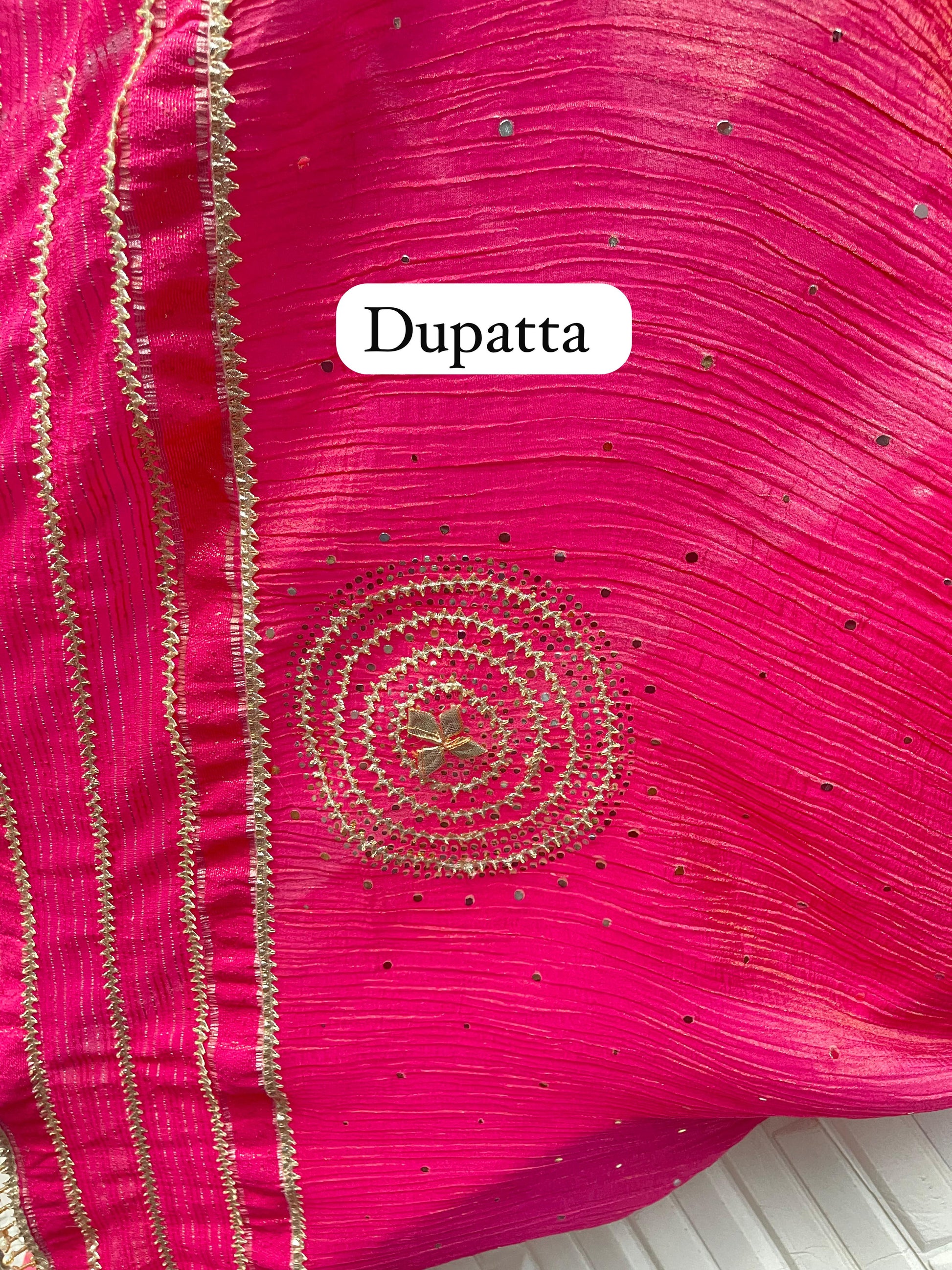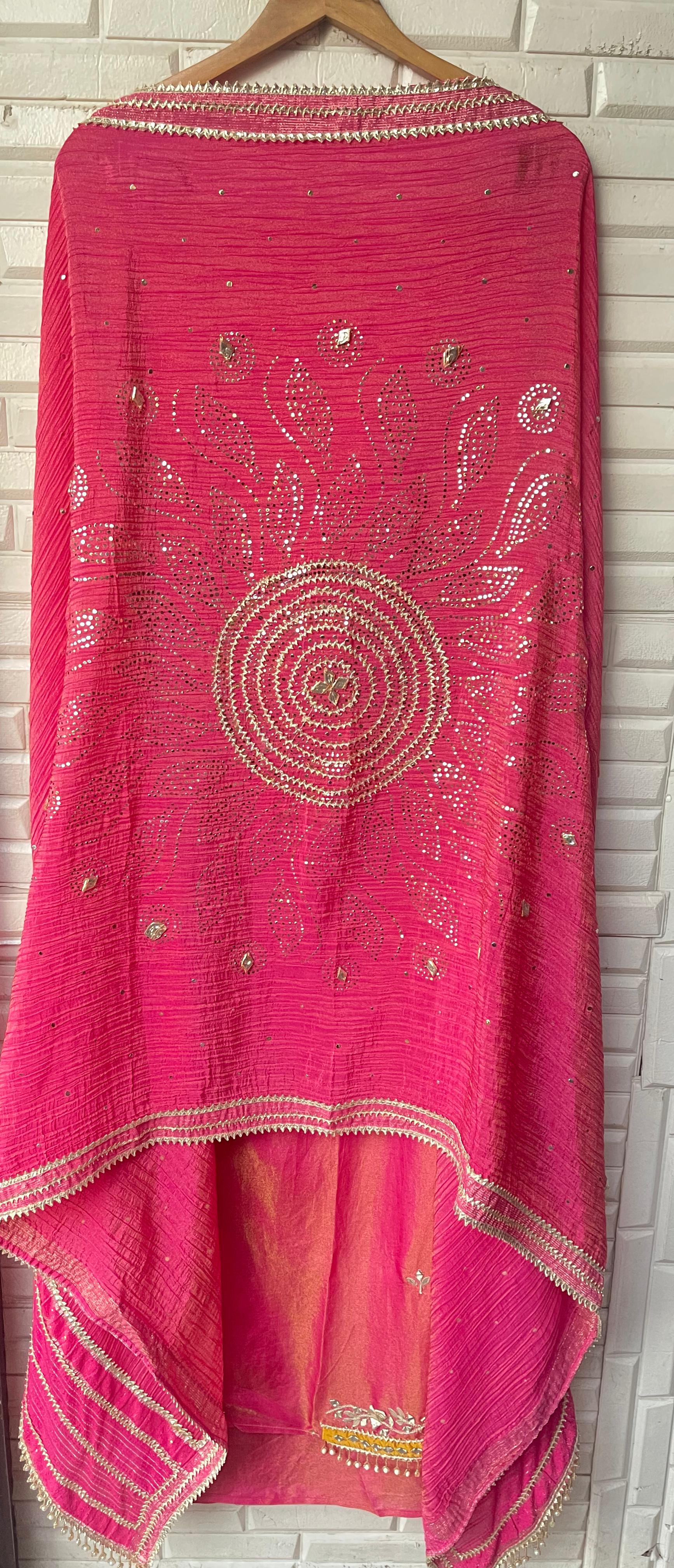 π crushed shimmer silk fabric dupatta with border lace mukaish work gotta embroidery