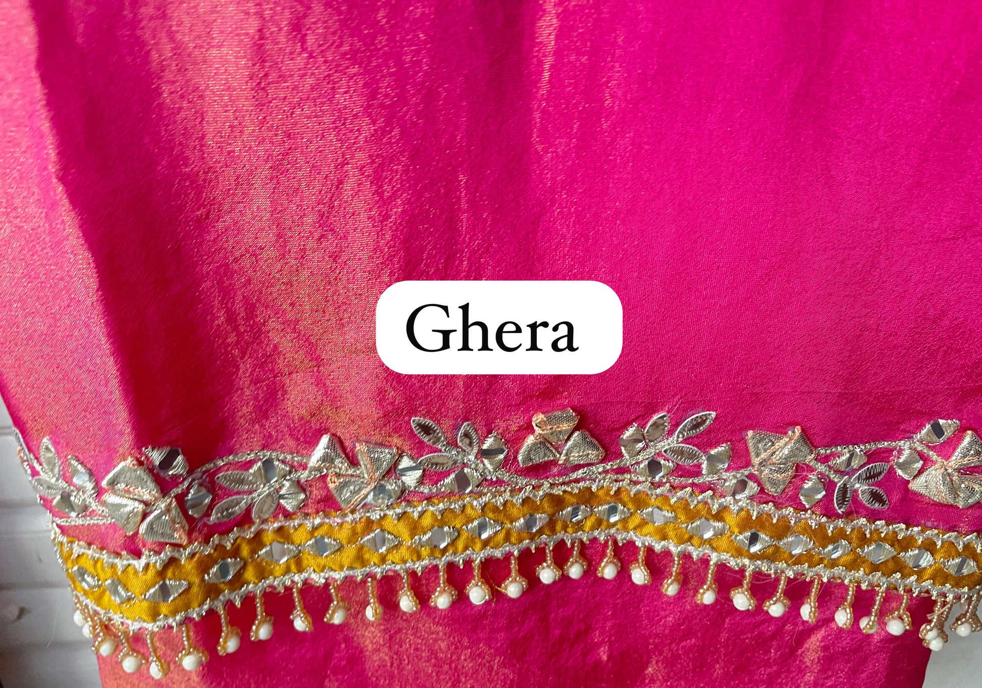 π shimmer silk fabric unstitched shirt with gotta actual mirror work zari embroidery