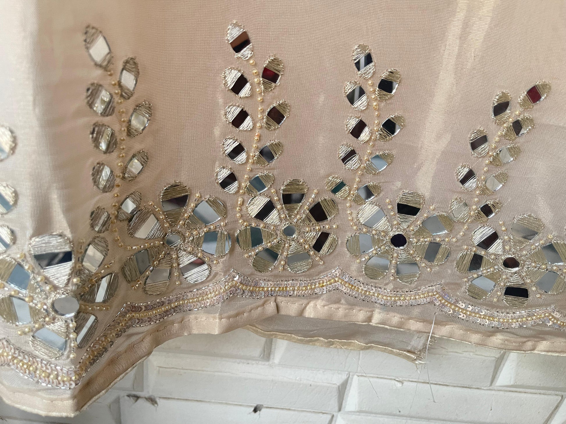 😊 shimmer silk fabric unstitched shirt with actual mirror work sequence pearl zari kutdanna embroidery