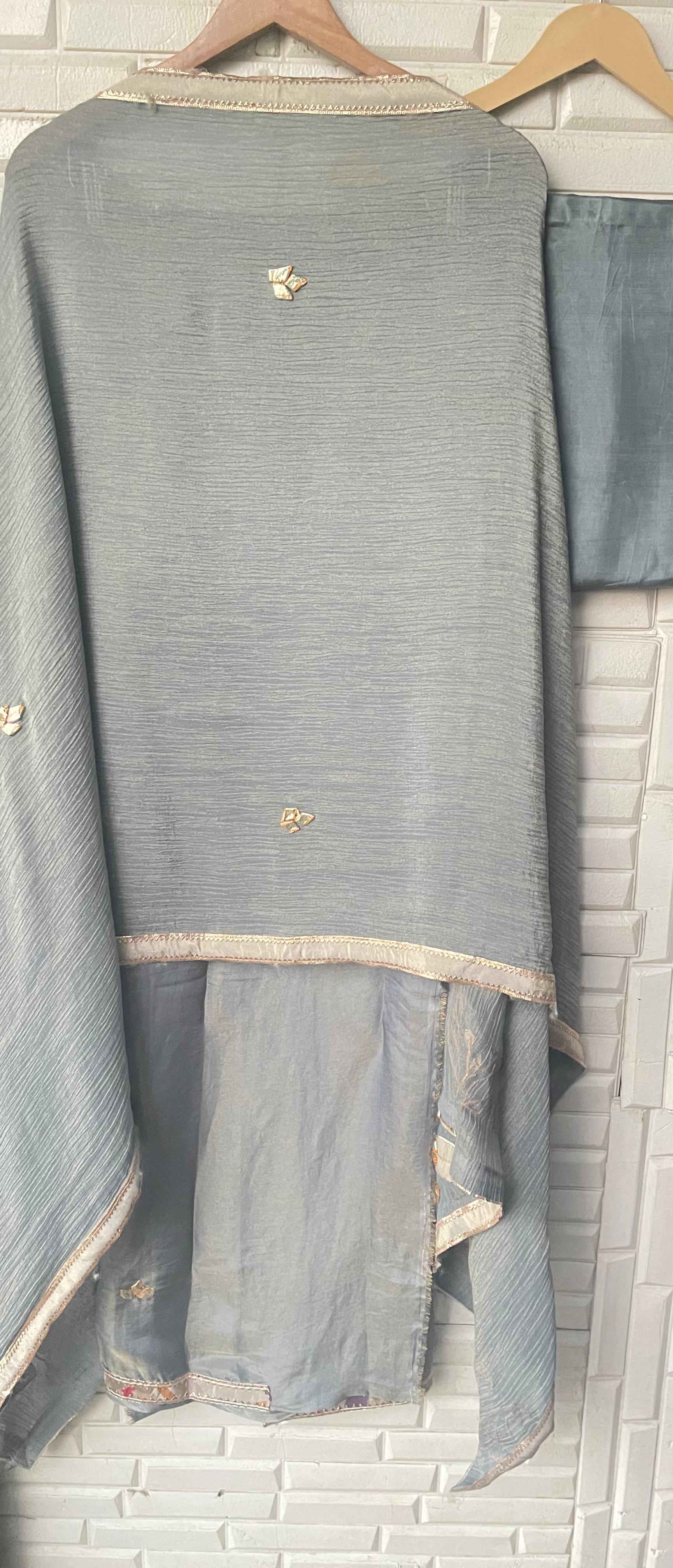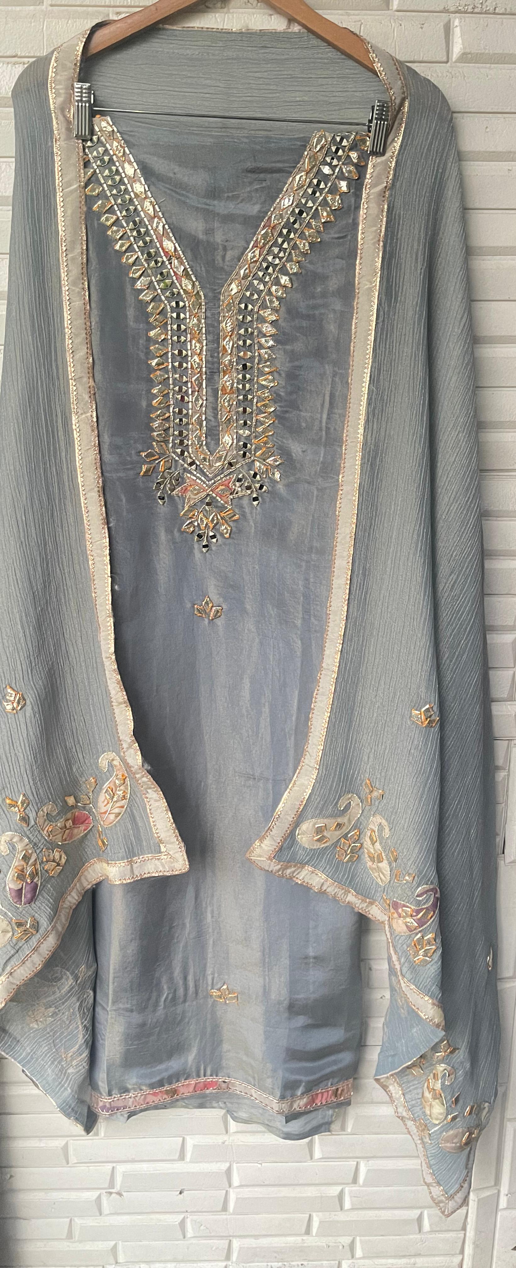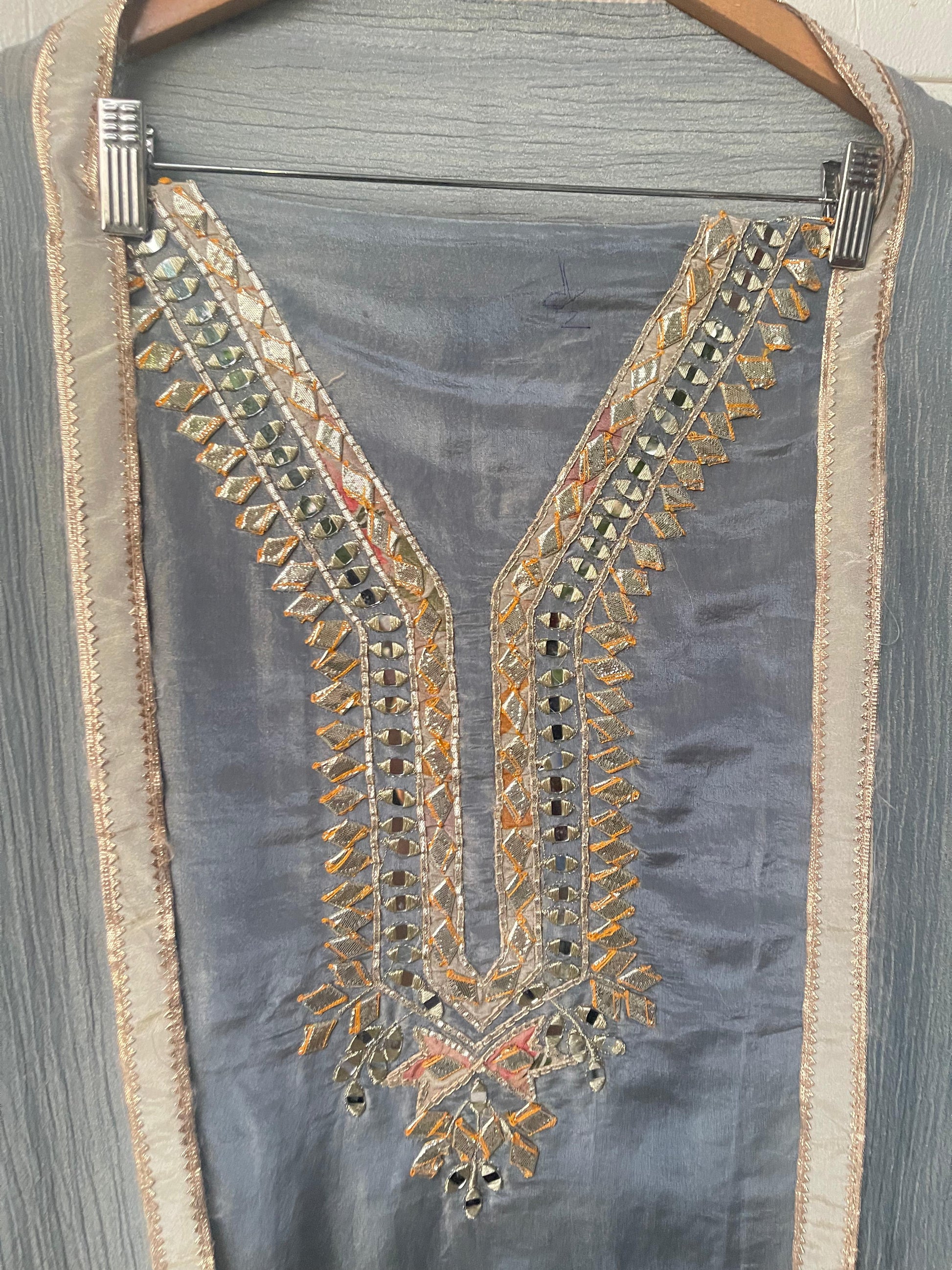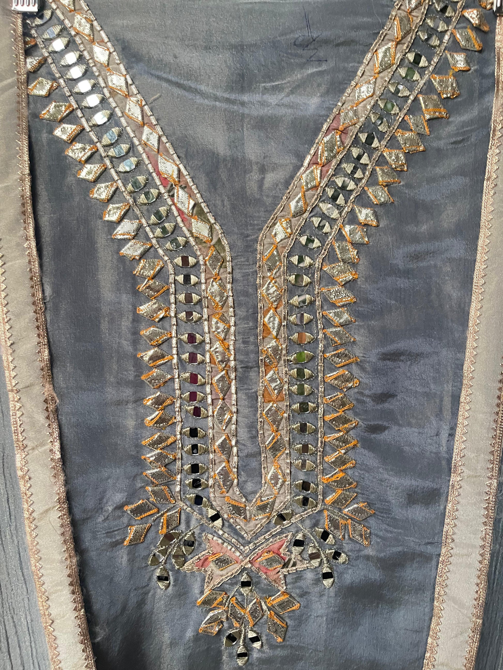 😊 shimmer silk fabric unstitched shirt with gotta patti actual mirror work zari embroidery