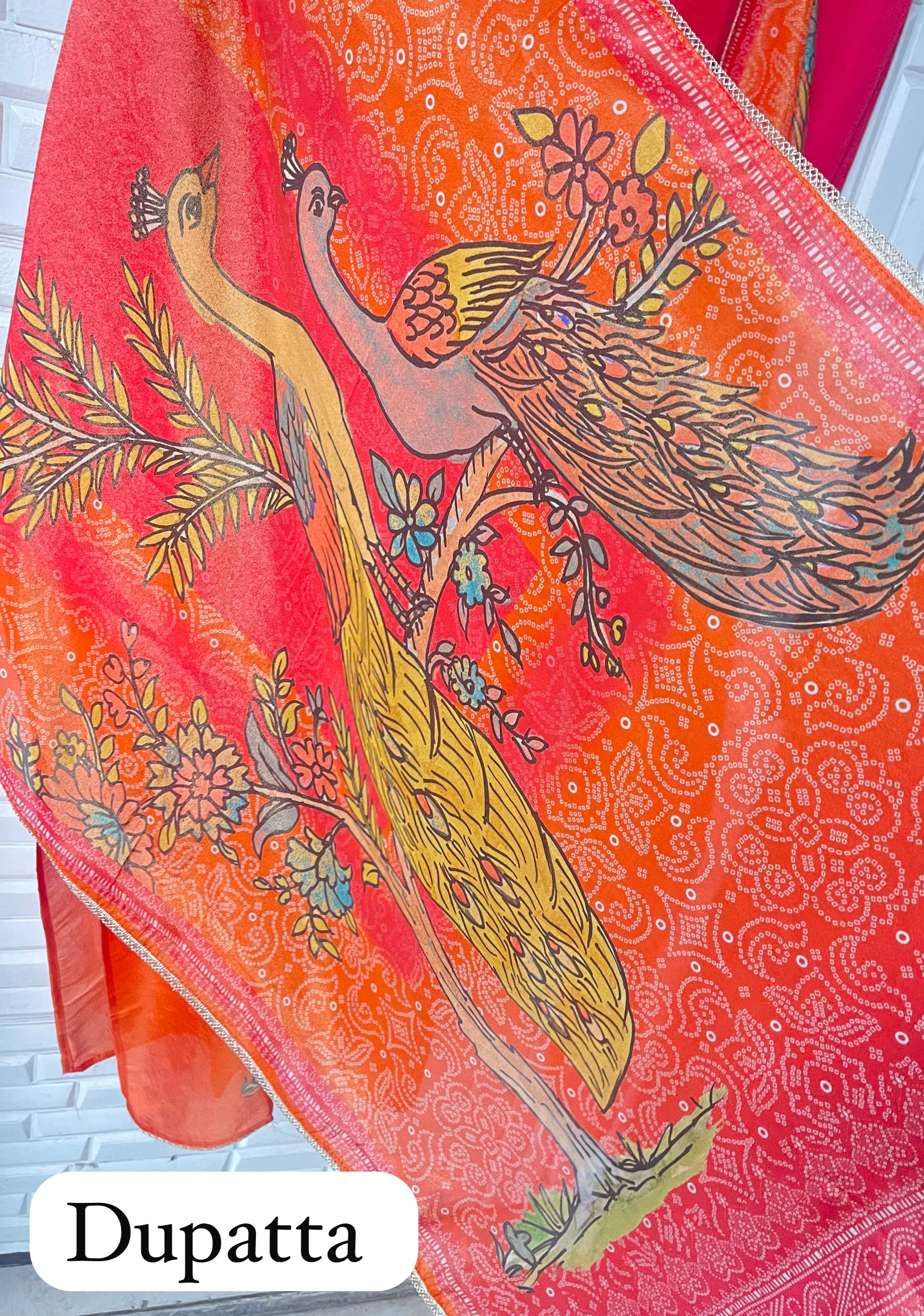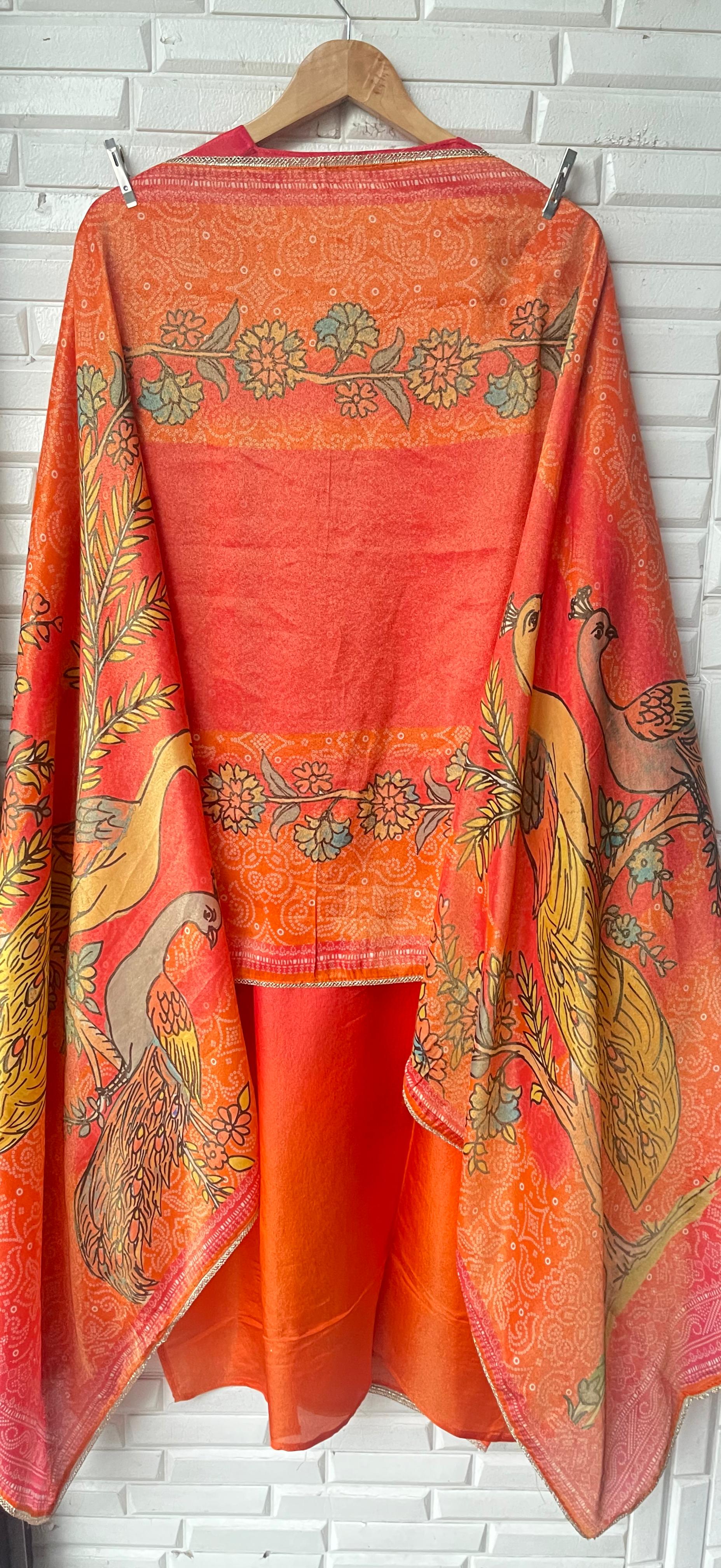 😊 shimmer silk printed fabric unstitched shirt with zari swarowski leather embroidery