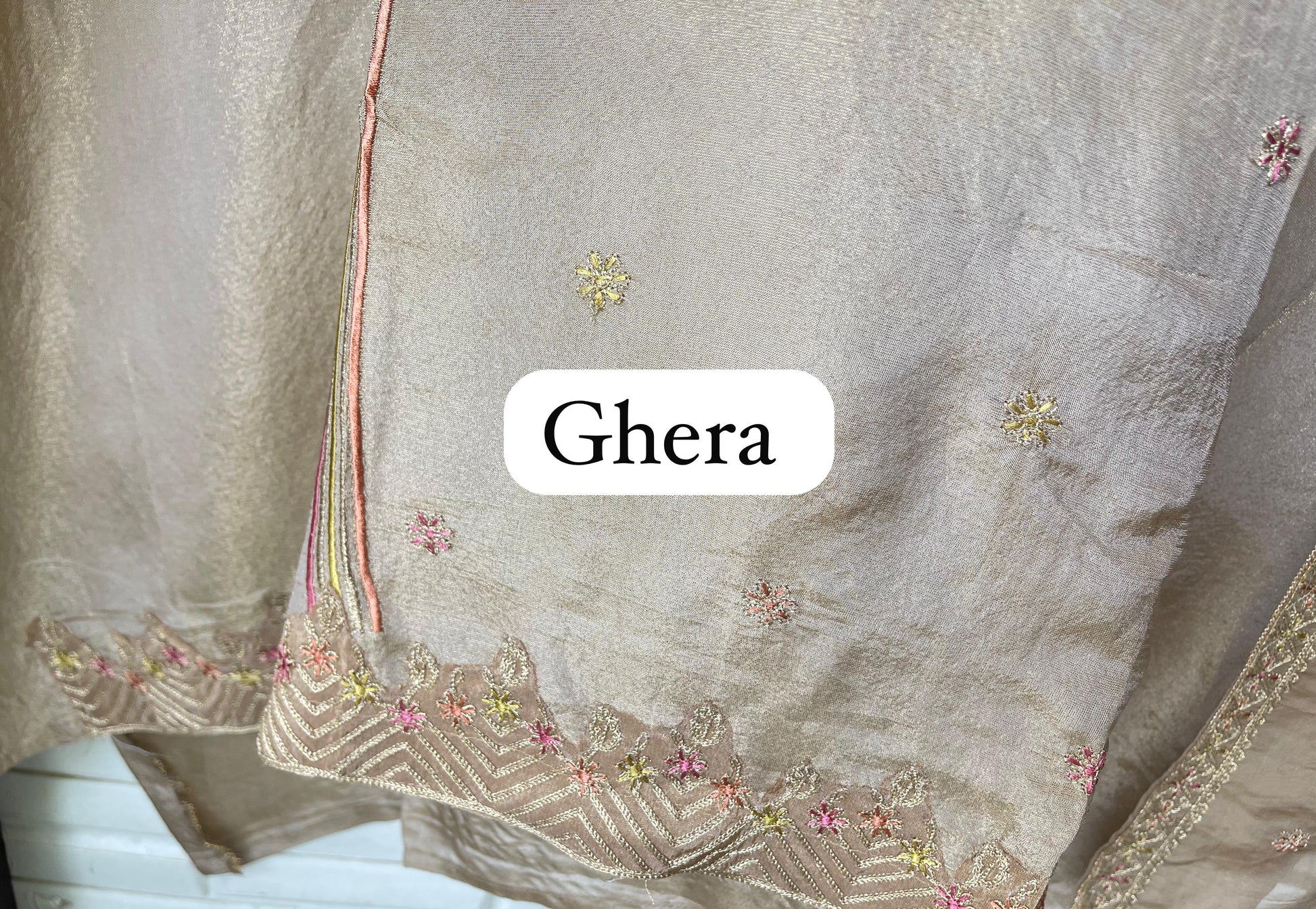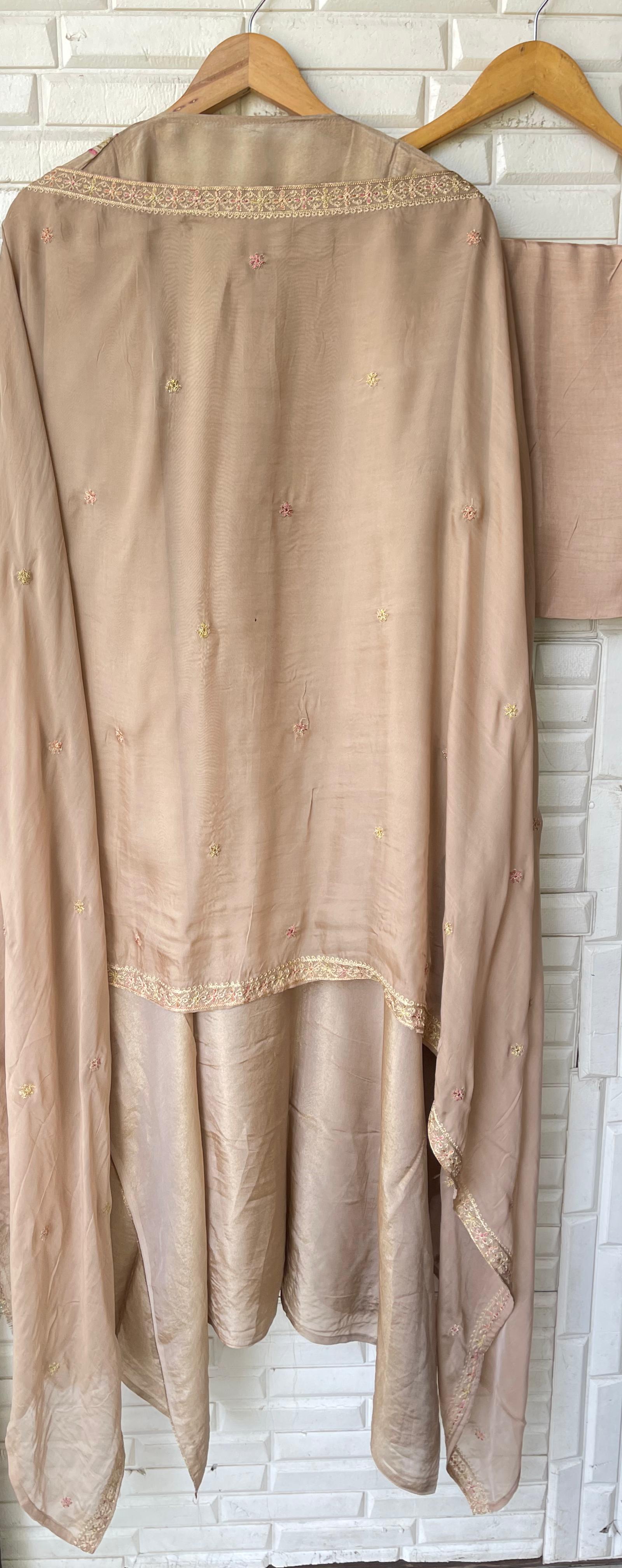 π shimmer silk fabric unstitched shirt with dabka cutdana pearl resham sequence zari embroidery