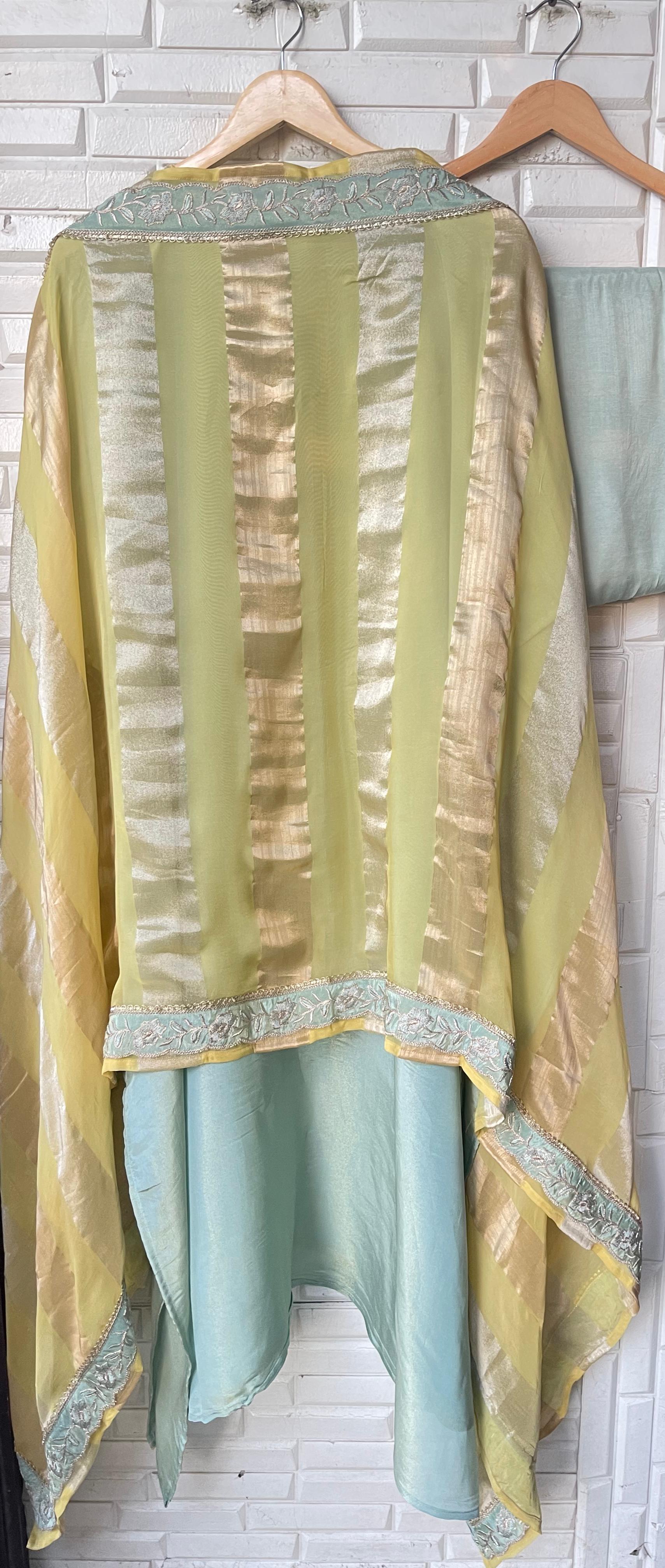 😊 shimmer silk fabric unstitched shirt with actual mirror work resham zari embroidery