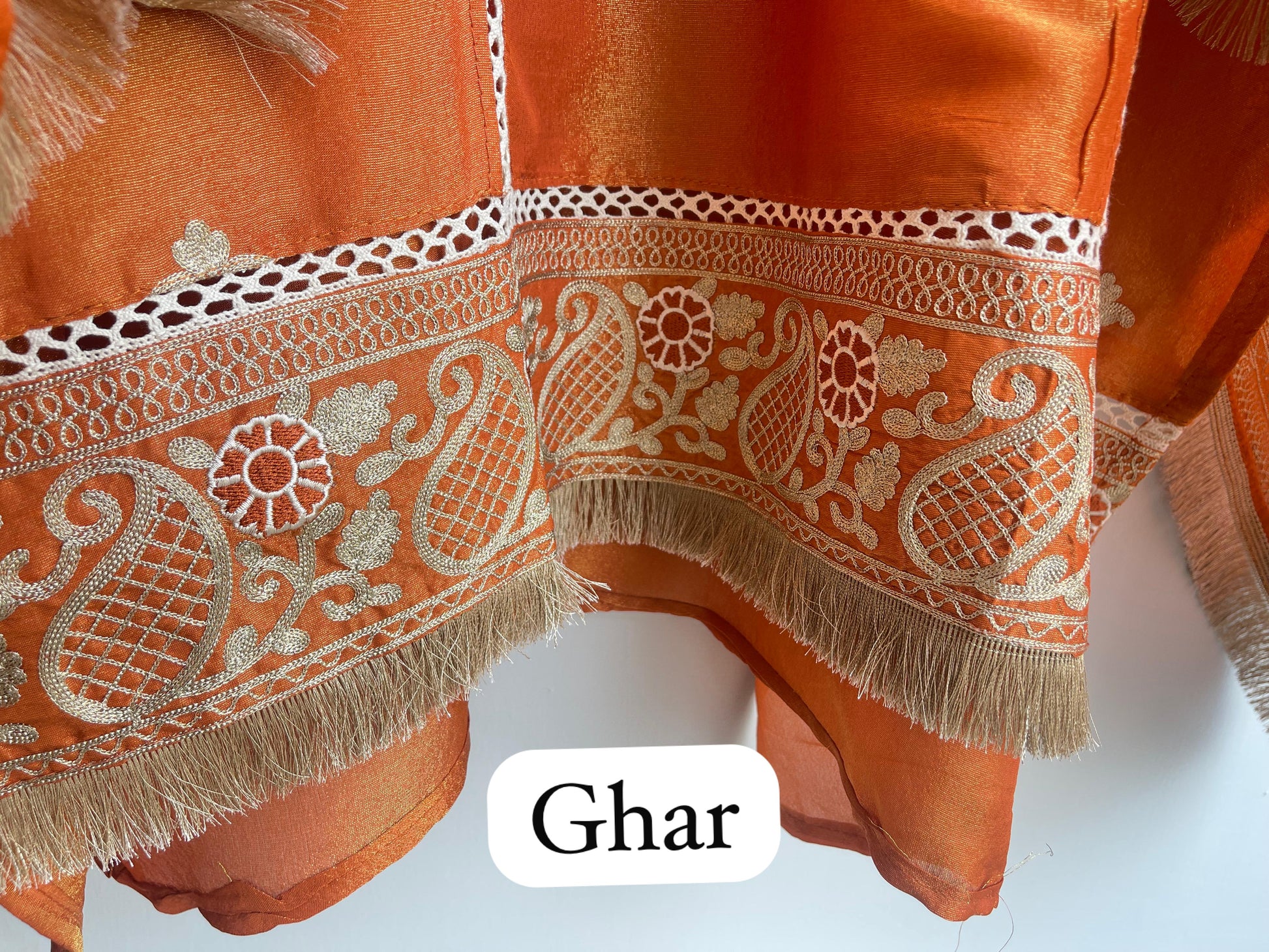 π shimmer silk fabric unstitched shirt with resham zari embroidery and crotia insertions and tassel ghera lace
