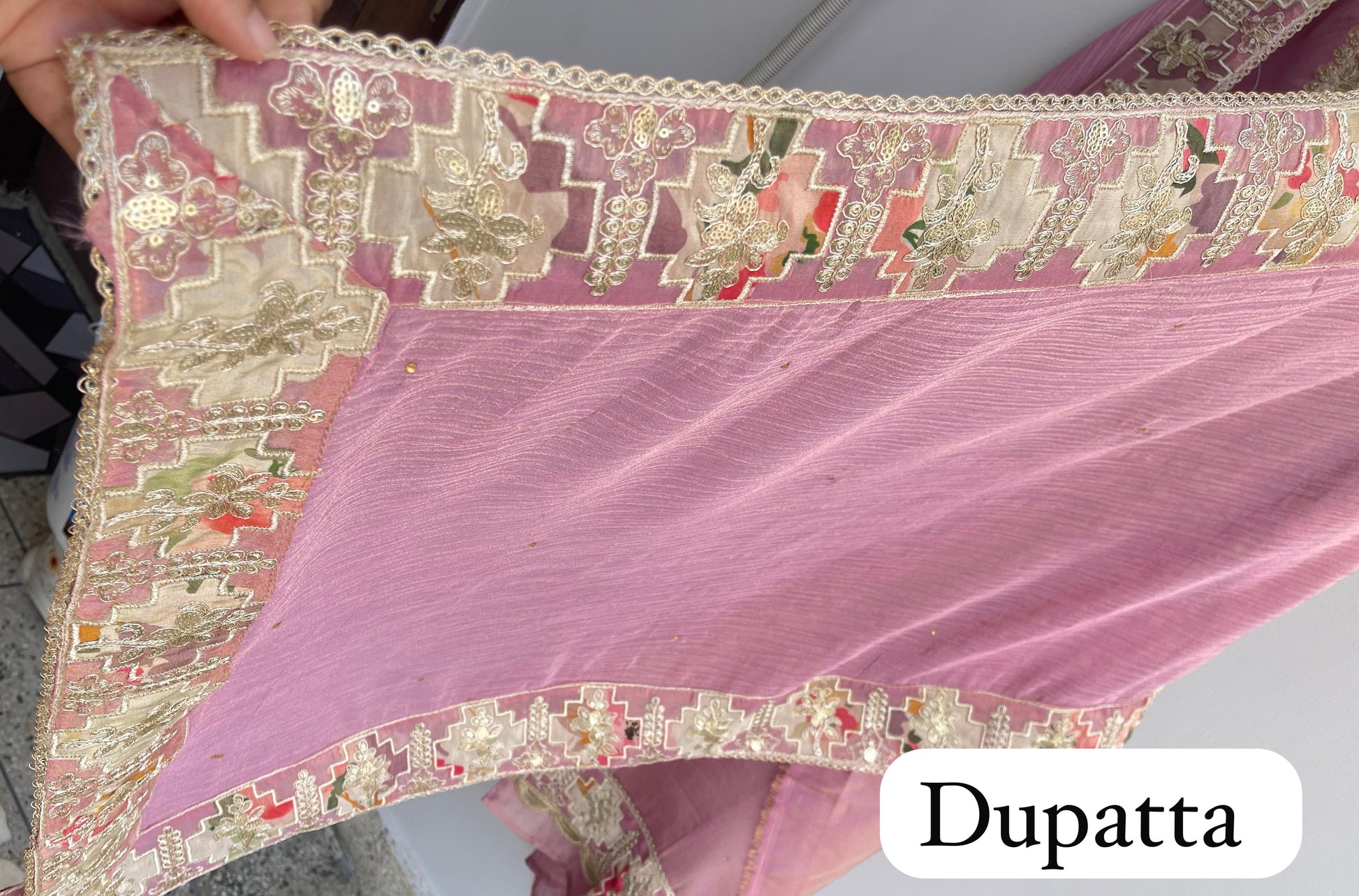 😊 crushed shimmer silk fabric dupatta with resham sequence zari dabka embroidery