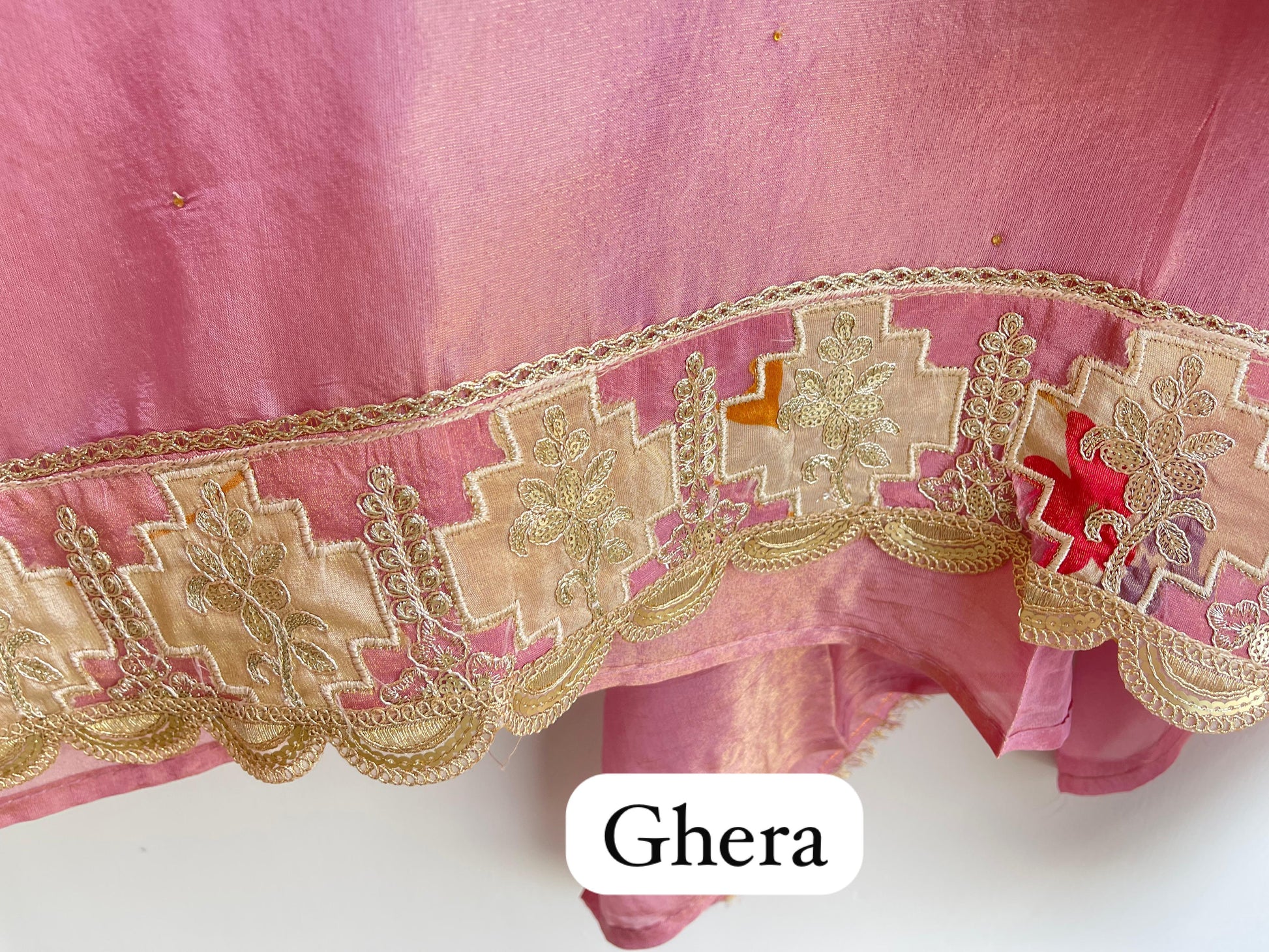 😊 shimmer silk fabric unstitched shirt with neck printed fabric patchwork resham kutdanna sequence zari embroidery and crotia ghera lace with sequence highlighting