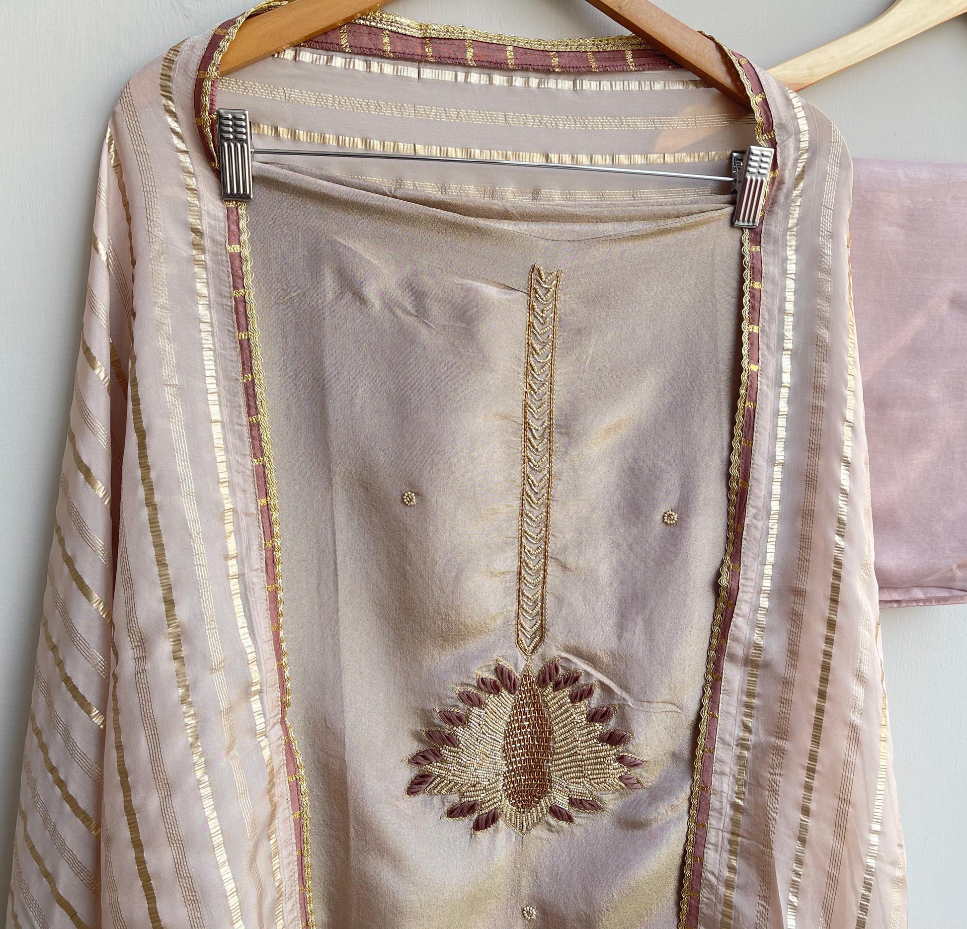 😊 pure shimmer silk fabric unstitched shirt with pearl resham embroidery
