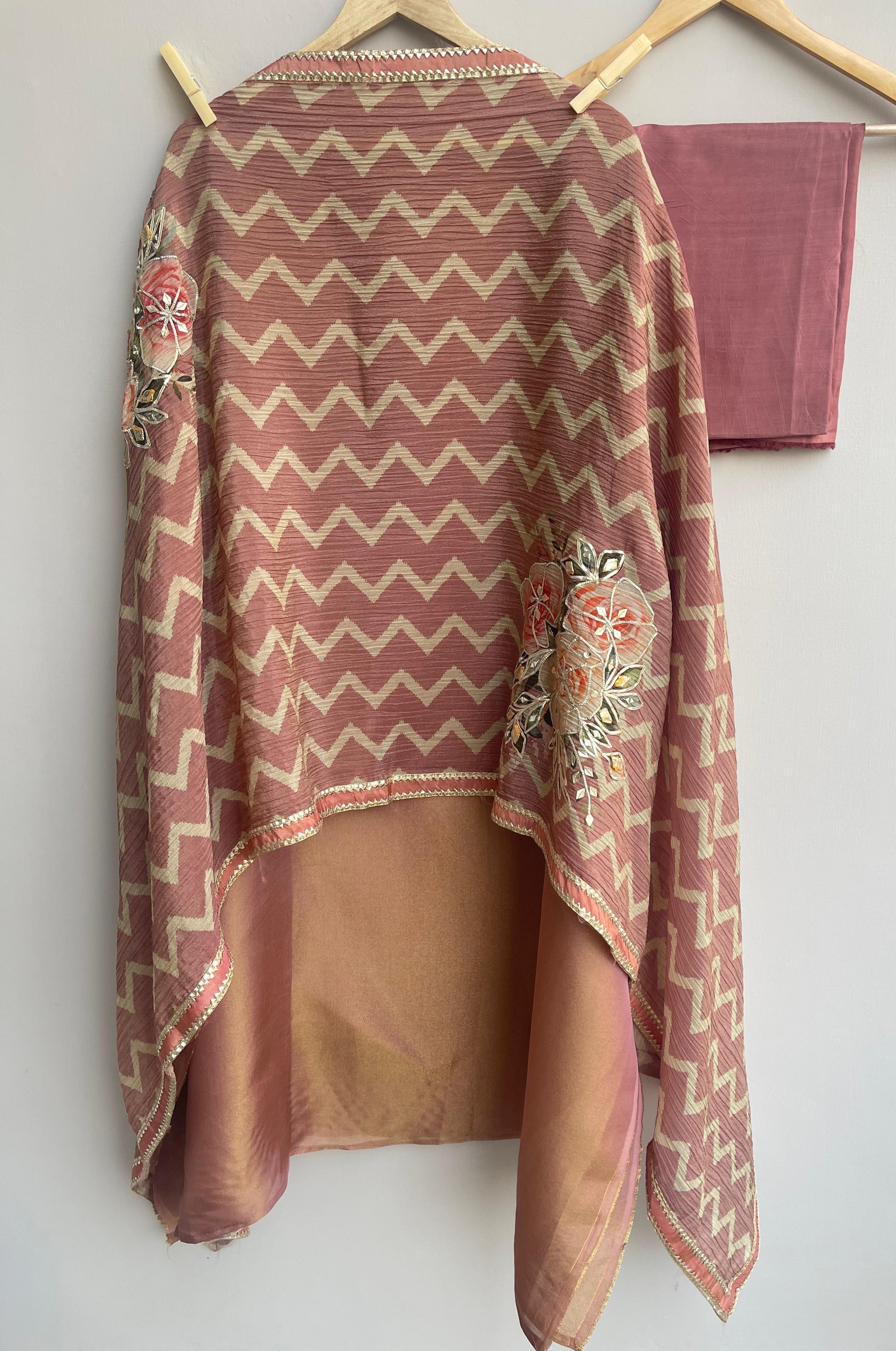 π pure shimmer silk fabric unstitched shirt with gotta patti mirror leather patch work zari embroidery