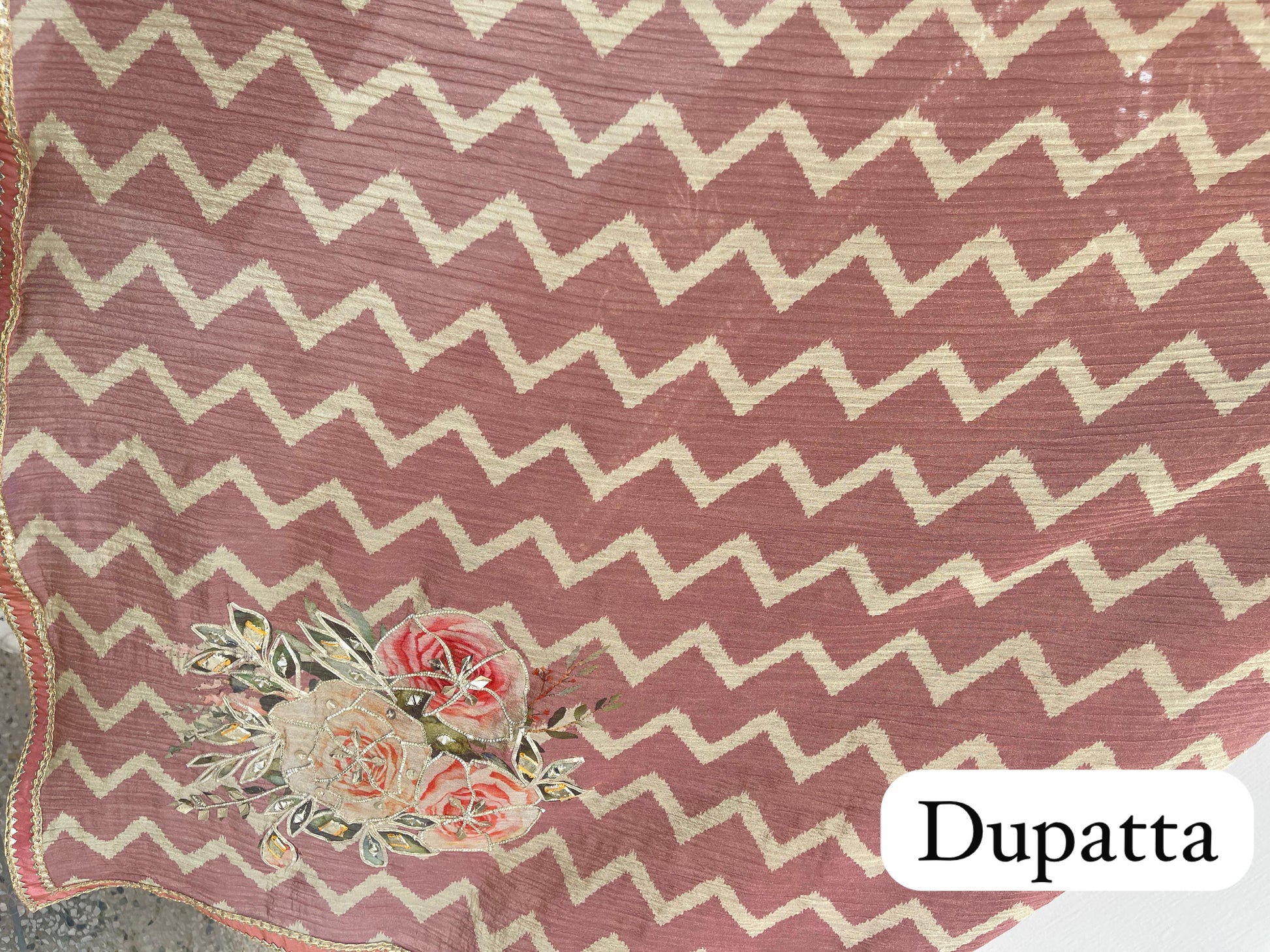 π crushed shimmer silk printed fabric dupatta with gotta lace leather patch work