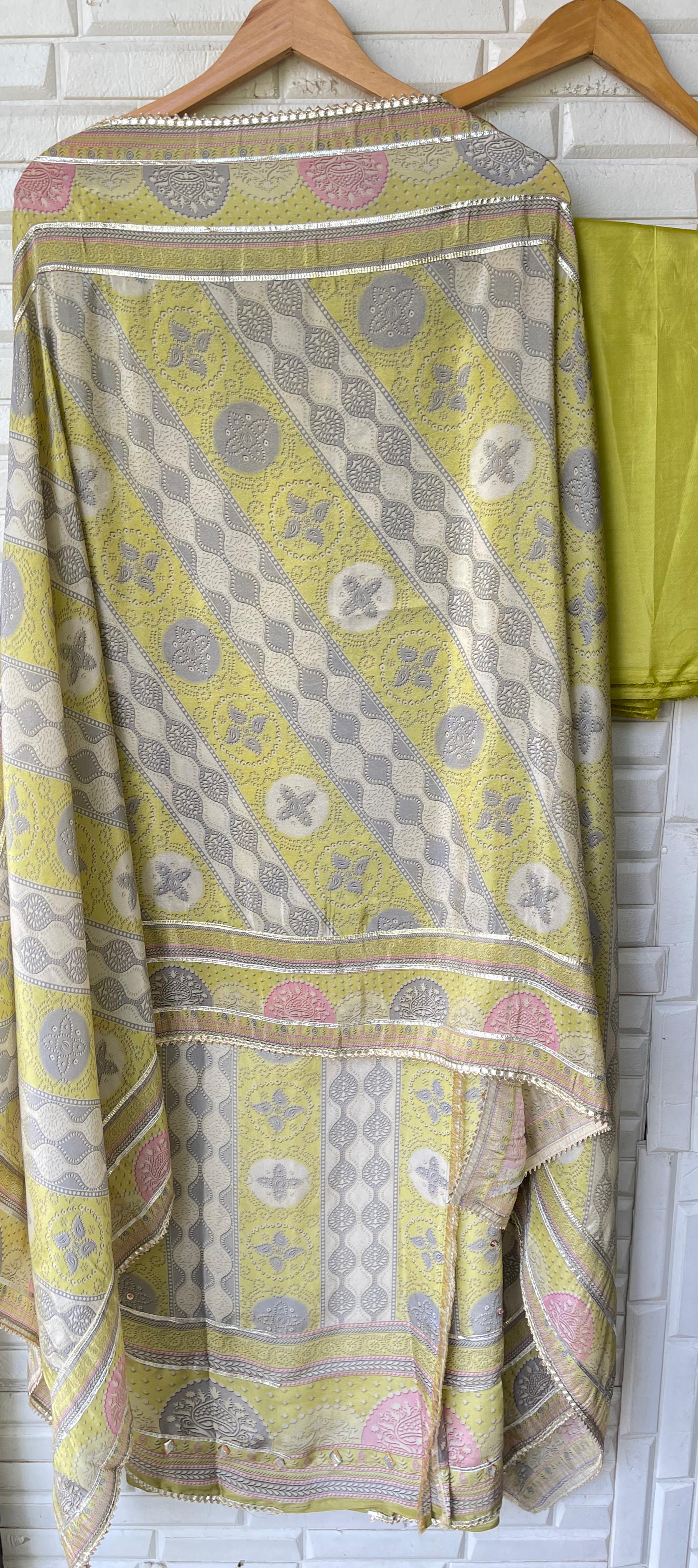 😊 shimmer tassar silk printed fabric dupatta with gotta lace work