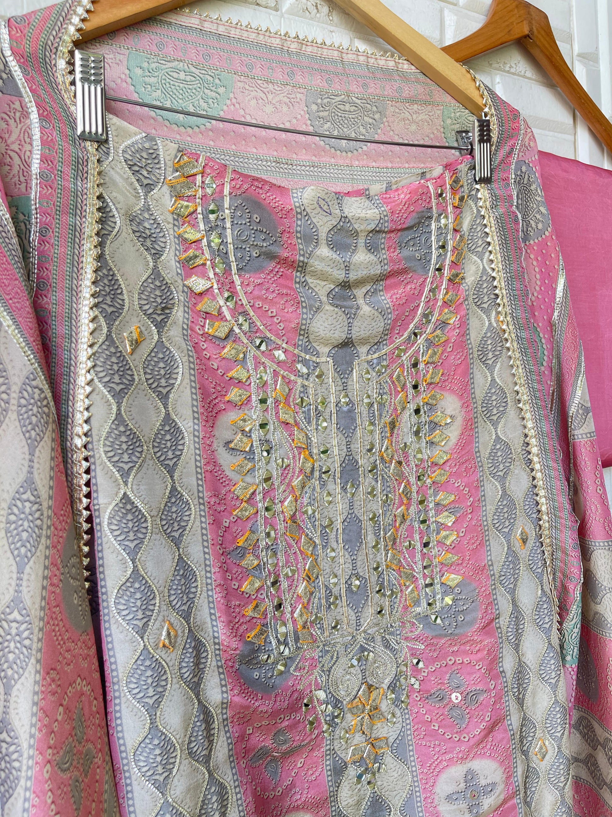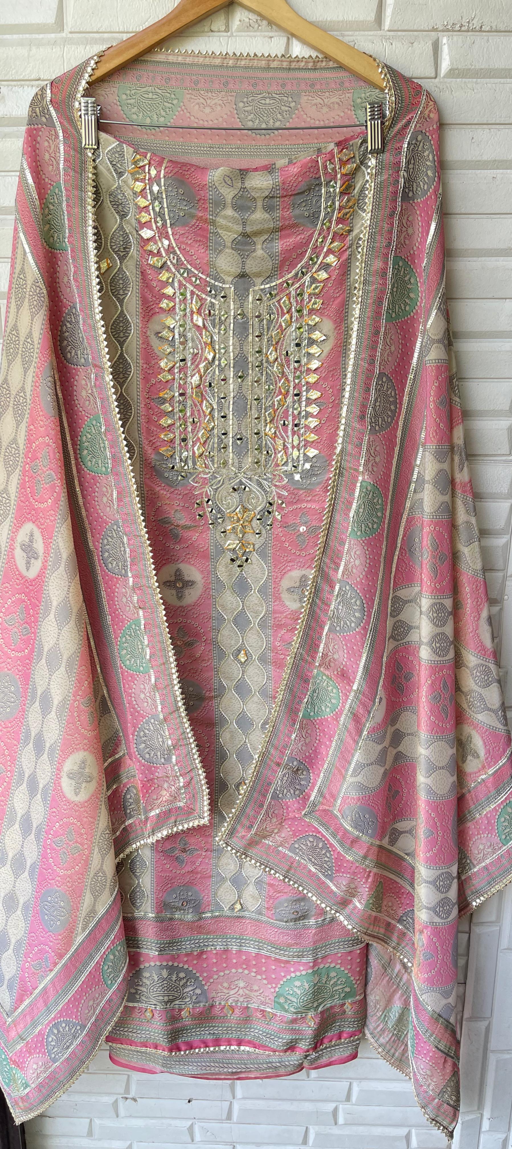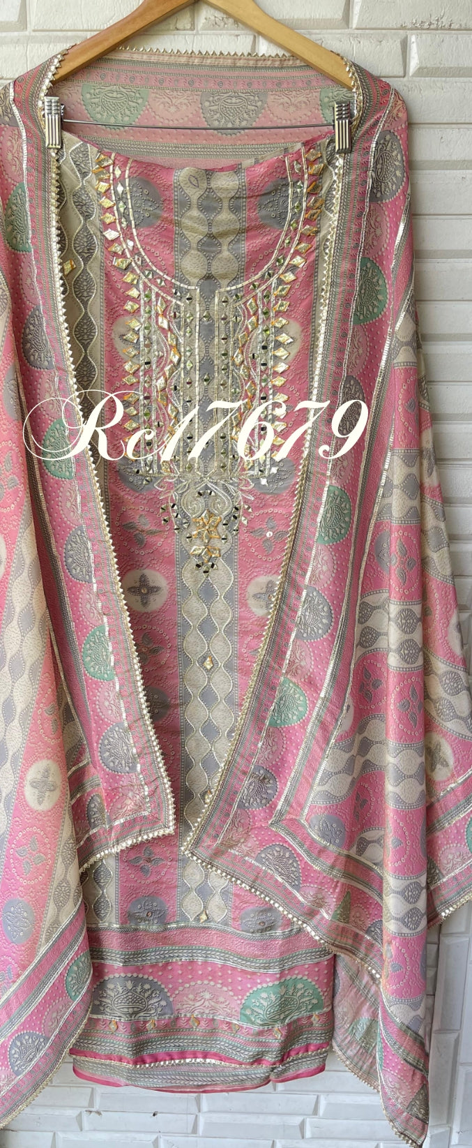 ๐ shimmer tassar silk printed fabric unstitched shirt with gotta patti actual mirror work resham embroidery