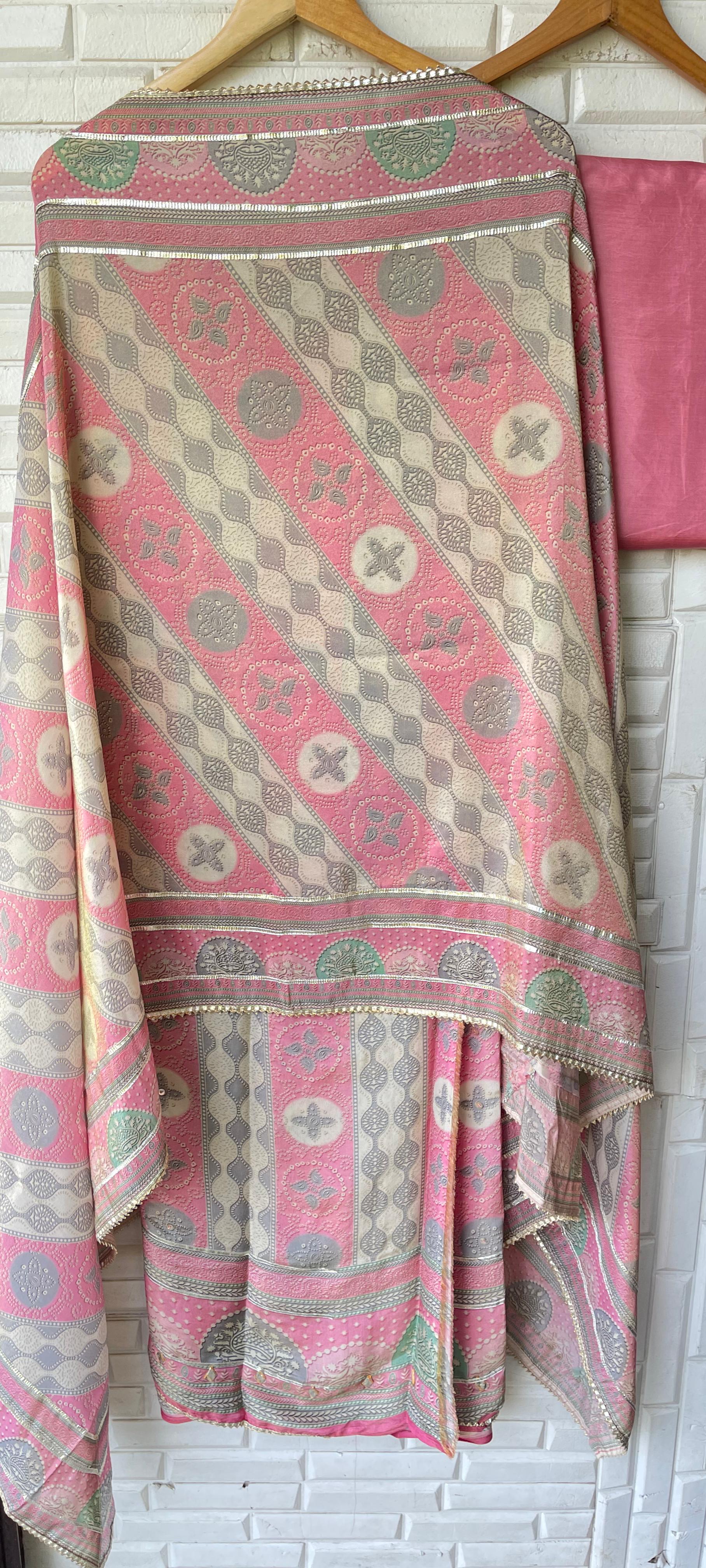 ๐ shimmer tassar silk printed fabric dupatta with gotta lace work