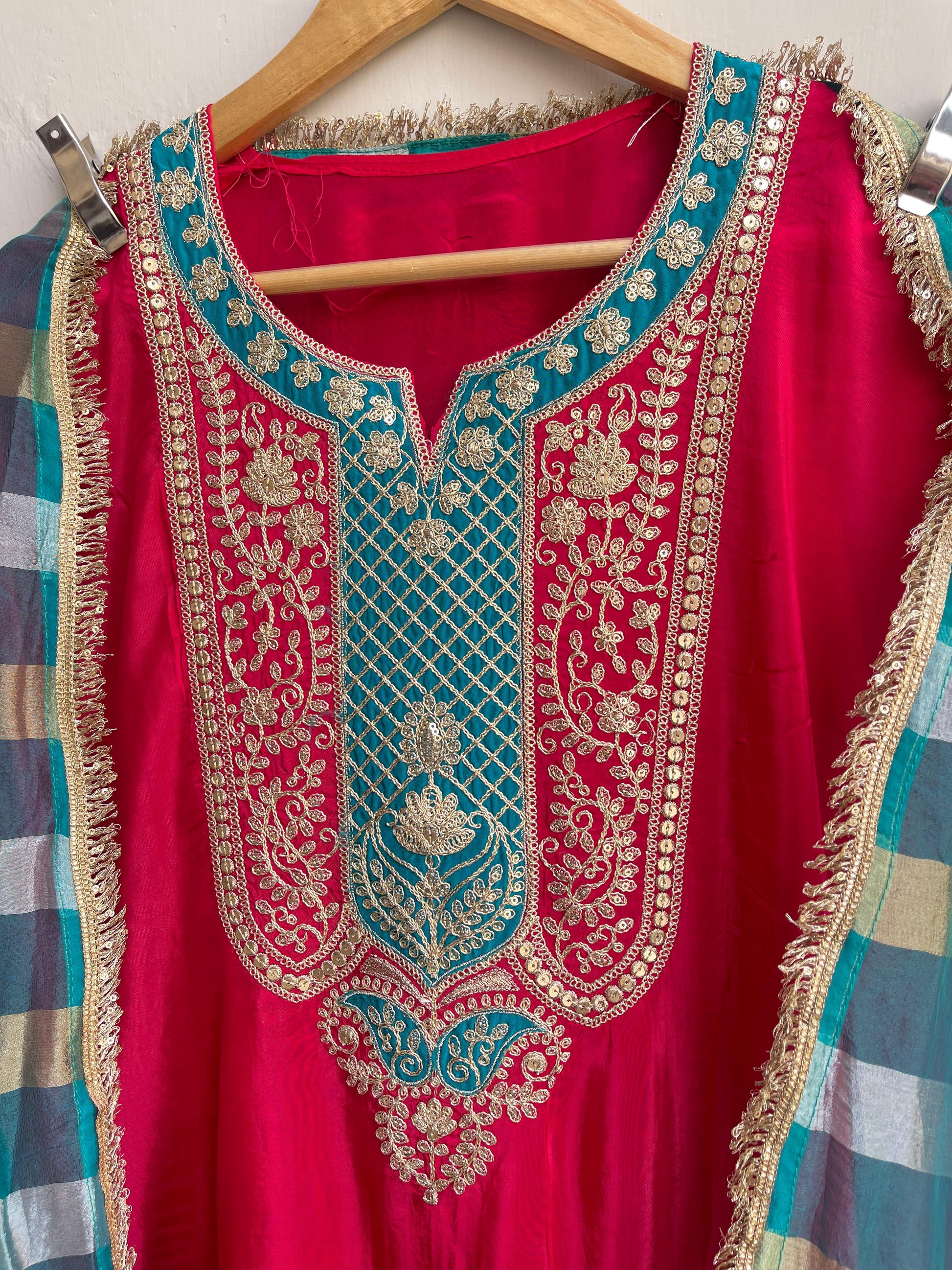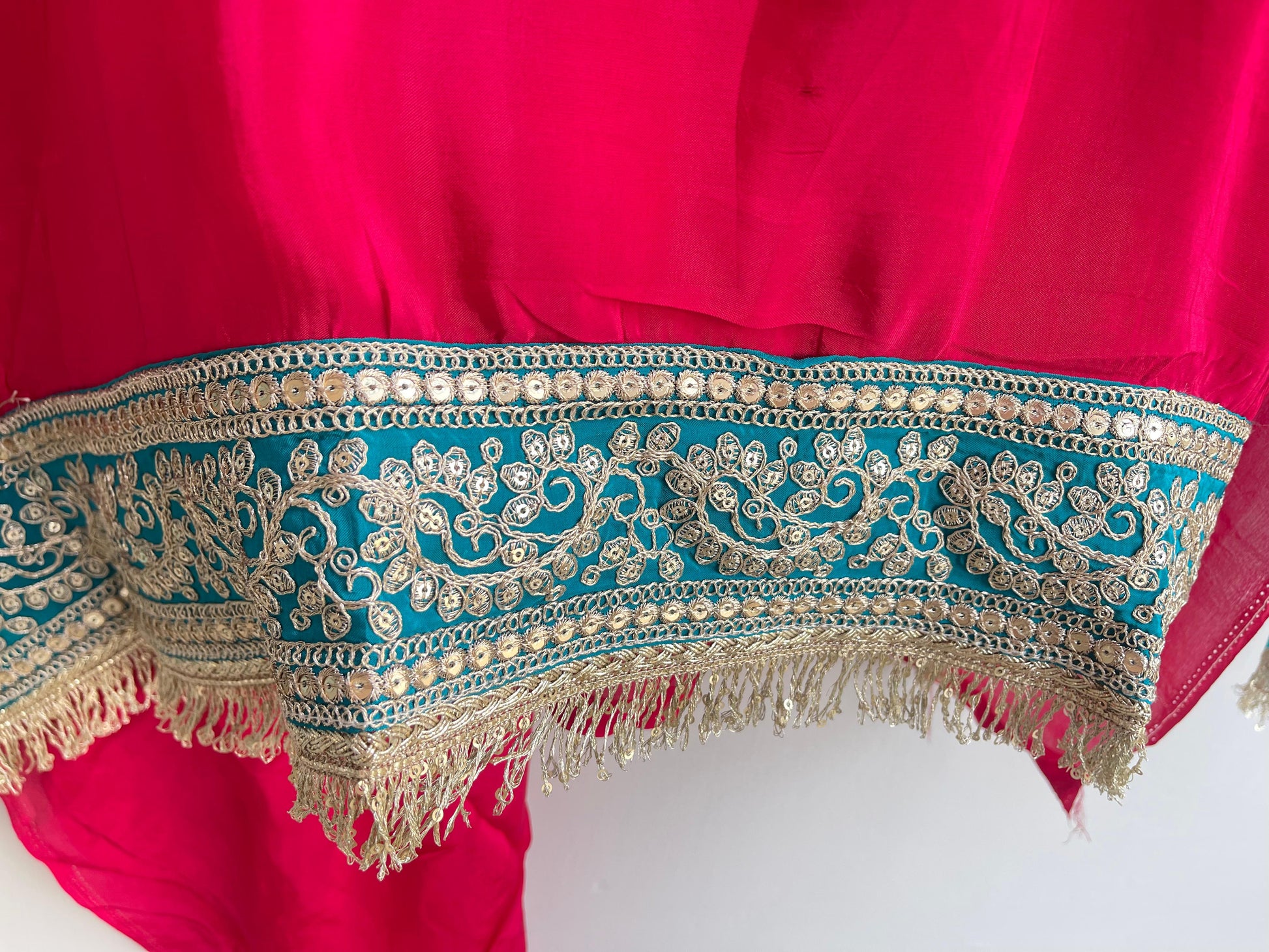 😊 silk fabric unstitched shirt with zari sequence embroidery and tassel ghera lace with sequence highlighting