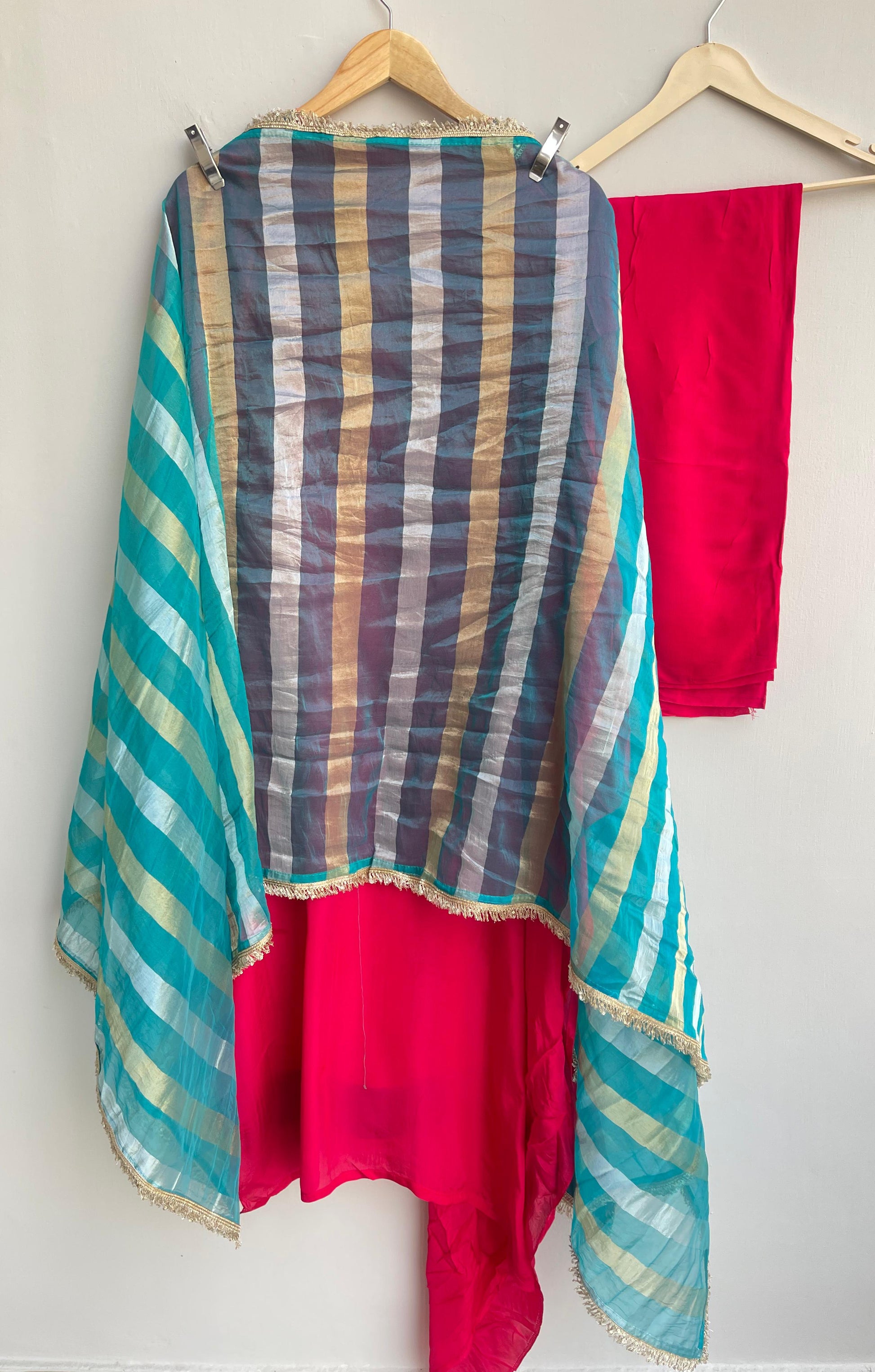 😊 banarasi shimmer organza printed fabric dupatta with tassel border sequence lace
